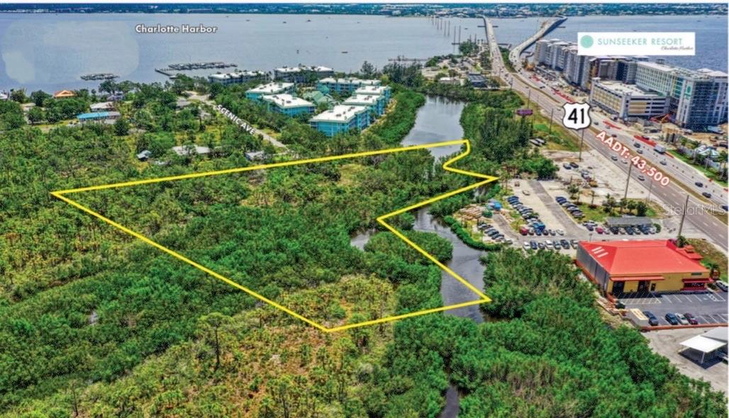4.6 ACRES located in desirable Charlotte Harbor. TWO parcels - parcel 402236202001 has a current use of vacant residential and is zoned CR 3.5 -coastal residential. Parcel 402236201005 has a current use of vacant commercial and is zoned CHRW- Charlotte Harbor Riverwalk. Great location in the heart of Port Charlotte: one block to the new Sunseeker Resort, less than one mile to historic downtown Punta Gorda and 15 minutes to Punta Gorda Airport. 2.31 acres is usable and 2.29 acres is wetland. There is creek and saltwater canal with access to Charlotte Harbor. The northwest corner of the property has a conservation easement which provides privacy. Ask your agent for the attached survey and other information including an environmental assessment.