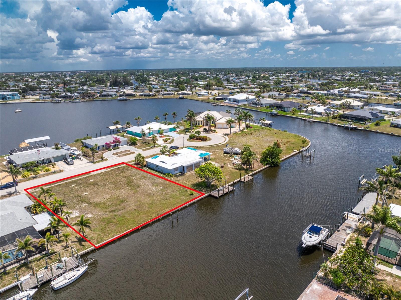 Spectacular Sailboat water lot just 600 yards from the open water of historic Charlotte Harbor. 100 yards on the 120 foot wide Stebbins Waterway then turn to starboard for 500 yards on the 140 foot wide Beeney Waterway and you’re in Charlotte Harbor. No bridges and plenty of depth. This 100’ X 125’ lot already has the seawall in place and utilities to the property line. Charlotte Harbor is a world class fishing and boating destination. Explore the Barrier Islands of Cayo Costa, Sanibel and Captiva, or the enclaves of Useppa Island and Cabbage Key or head out through Boca Grande Pass into the Gulf of Mexico. This is one of only 2 vacant lots on the street and is located near the end of the Cul -de- sac. Build your dream home just minutes from the new Sunseeker Resort, historic downtown Punta Gorda and there’s plenty of shopping and dining just minutes away. Fly direct into Punta Gorda Airport with Allegiant Airline or into Southwest Florida International Airport with the major airlines. You know what they say about waterfront property, “they’re not making any more of it”. Don’t miss your opportunity.