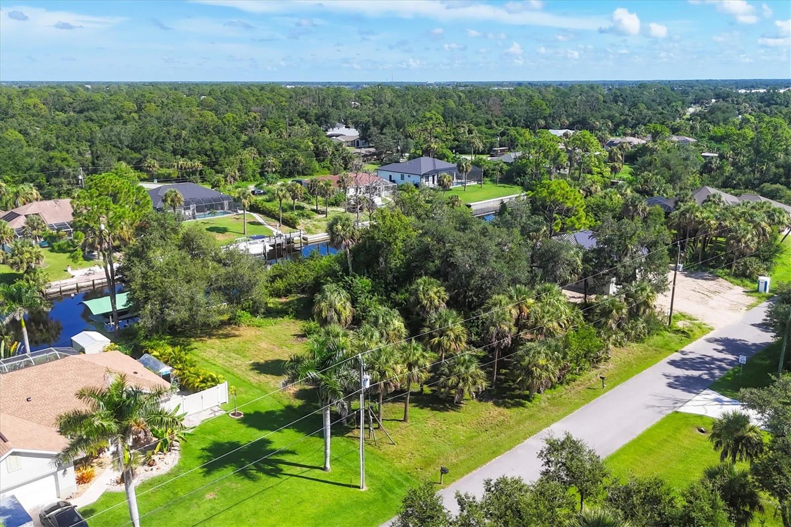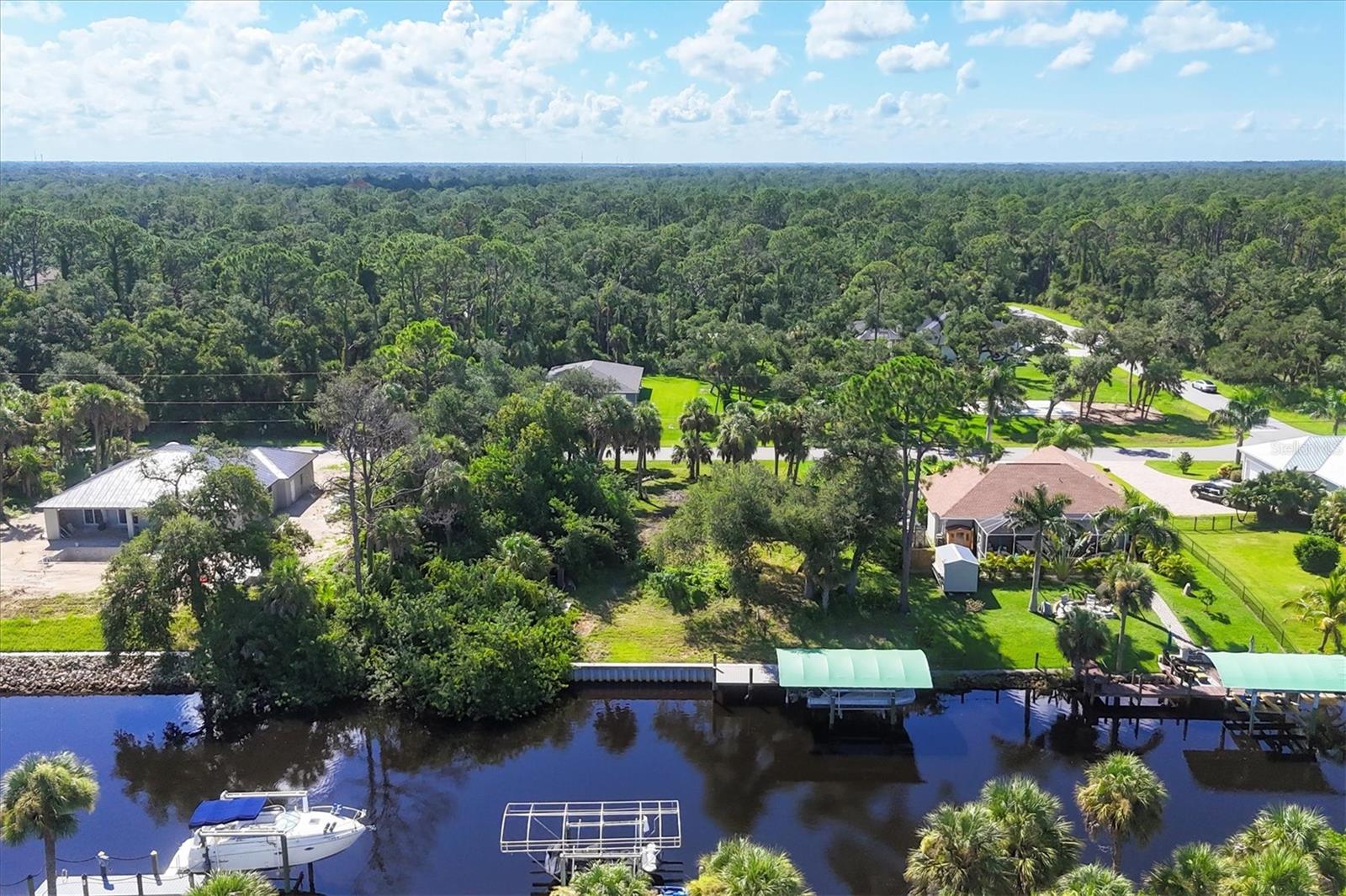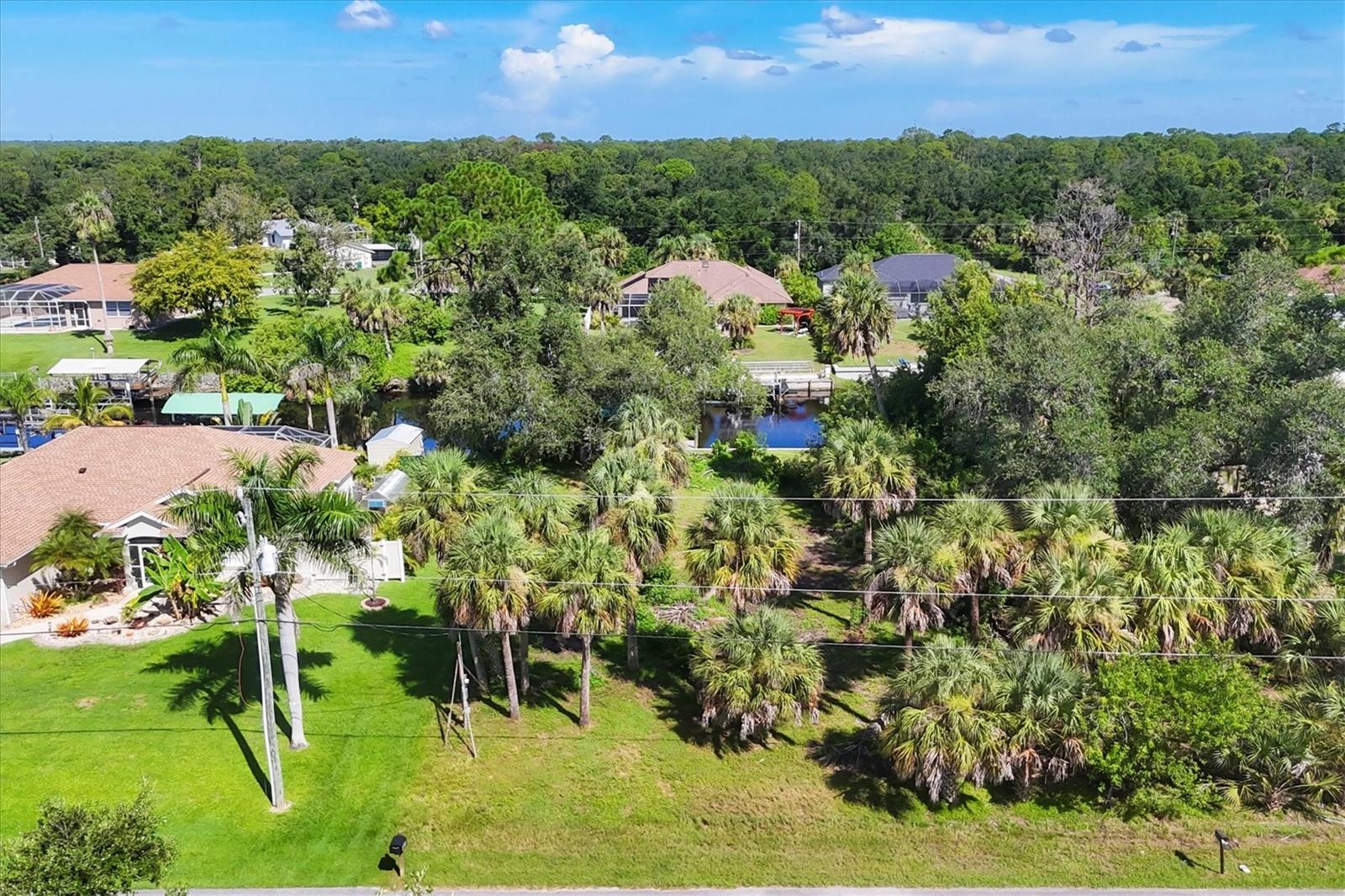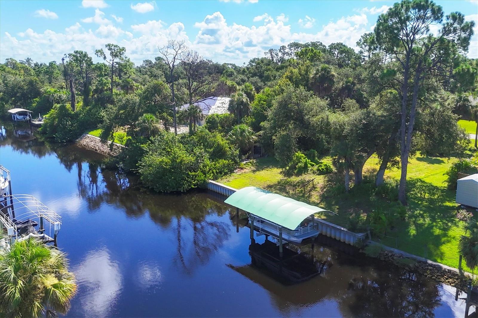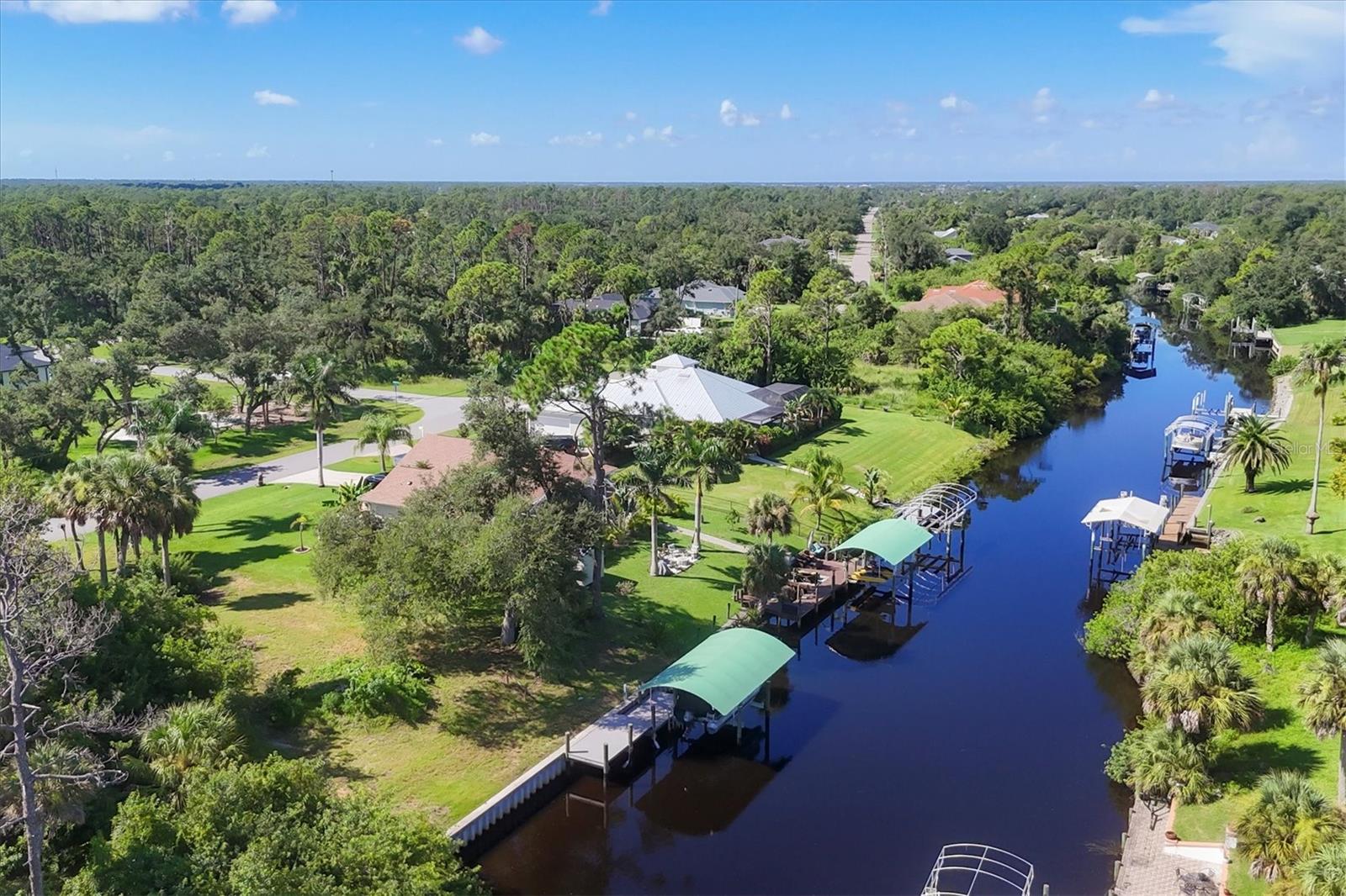 Boater’s Paradise with GULF ACCESS is only waiting for your imagination for the perfect Florida dream home. The Gulf, Charlotte Harbor and Myakka River are all within a short boat ride along the Apollo Waterway. This lot has been cleared, leaving beautiful oaks and palms and spectacular sunsets to decorate your new home, all without being located in a flood zone! Concrete seawall (80’), composite dock, and boat lift installed in 2021; lift canopy added in 2024. A temporary power pole has been installed for the boat lift and RV-hookup while building your custom slice of paradise. An additional 160 SqFt have been released from the canal easement to provide a seamless transition for a pool to connect to the boat dock. Spend your days fishing, boating or sipping your favorite beverage on the dock, watching the incredible sunsets. This property offers the perfect blend of tranquility and serenity, while being so convenient to excellent beaches, restaurants, shops, golf courses and endless outdoor adventures, in between North Port and Port Charlotte.