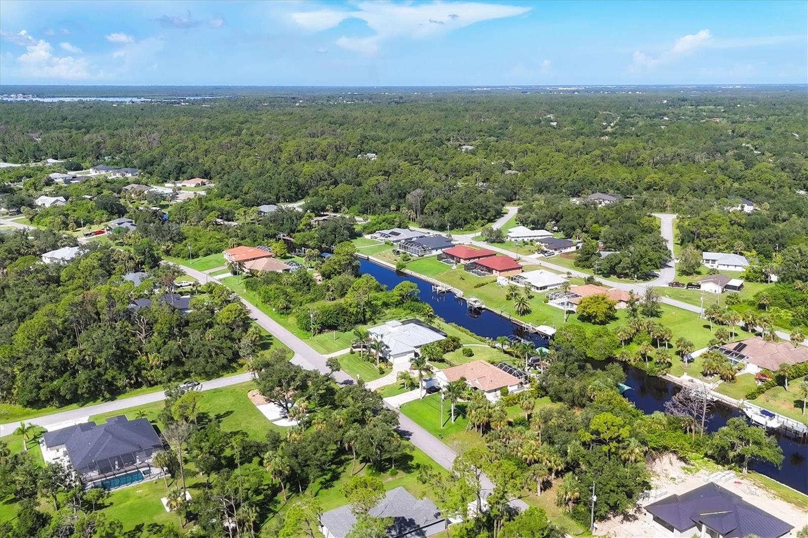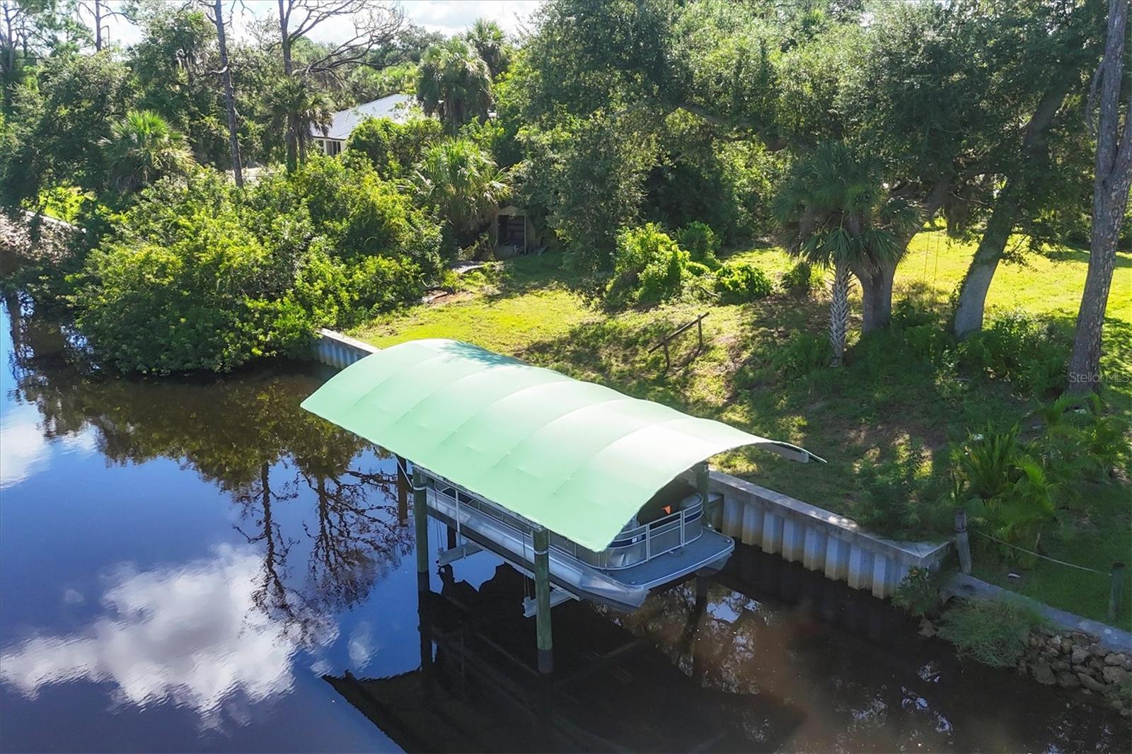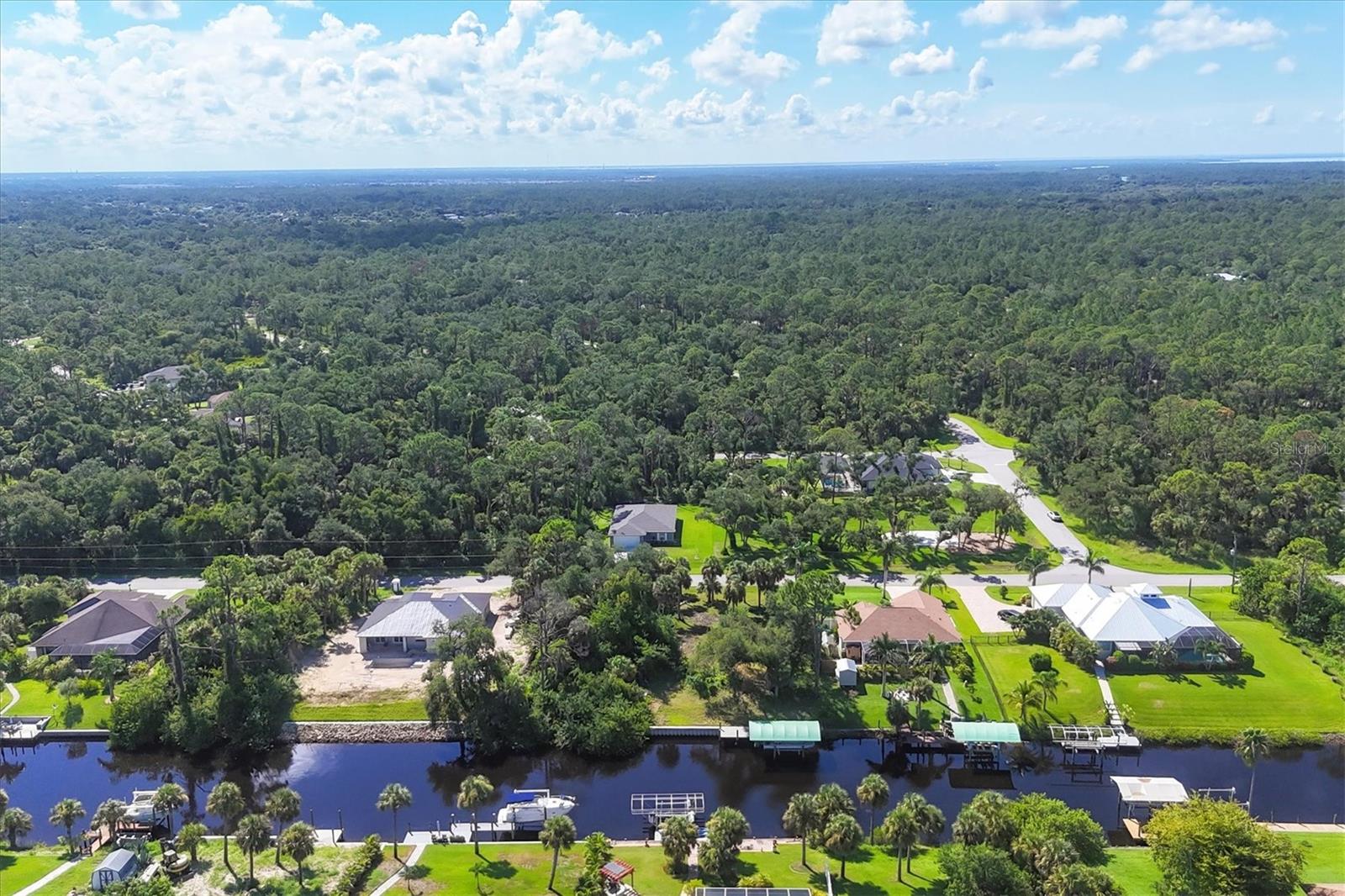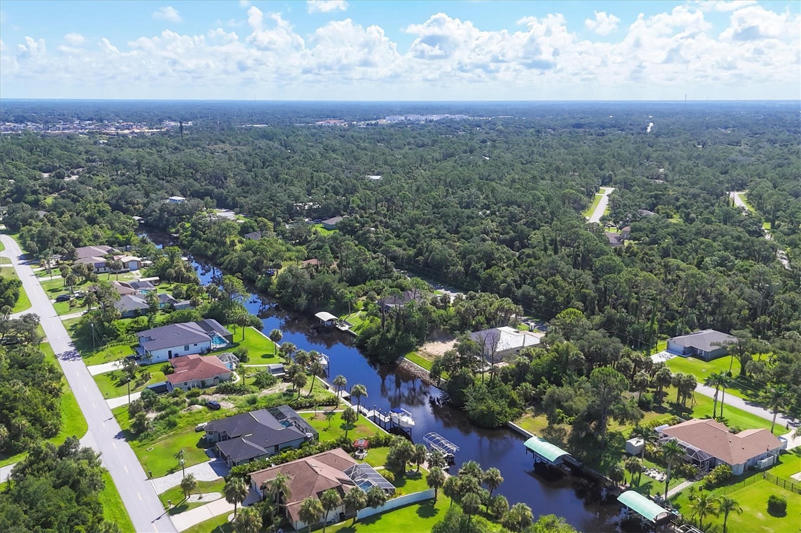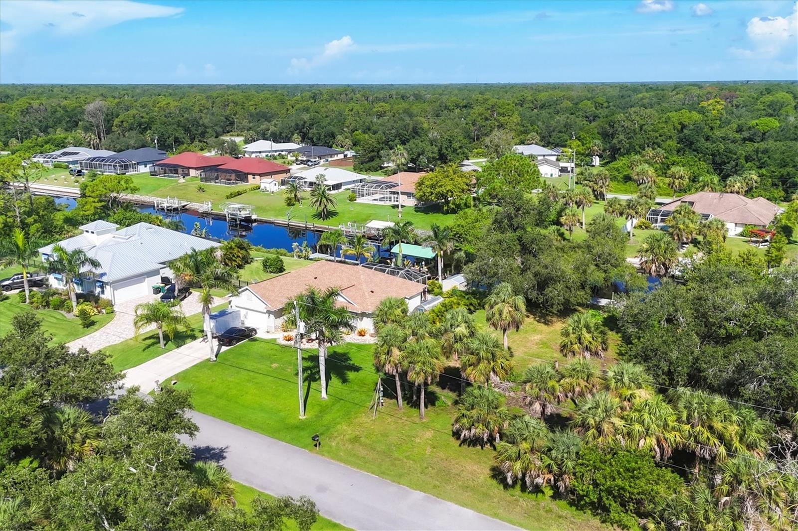 Boater’s Paradise with GULF ACCESS is only waiting for your imagination for the perfect Florida dream home. The Gulf, Charlotte Harbor and Myakka River are all within a short boat ride along the Apollo Waterway. This lot has been cleared, leaving beautiful oaks and palms and spectacular sunsets to decorate your new home, all without being located in a flood zone! Concrete seawall (80’), composite dock, and boat lift installed in 2021; lift canopy added in 2024. A temporary power pole has been installed for the boat lift and RV-hookup while building your custom slice of paradise. An additional 160 SqFt have been released from the canal easement to provide a seamless transition for a pool to connect to the boat dock. Spend your days fishing, boating or sipping your favorite beverage on the dock, watching the incredible sunsets. This property offers the perfect blend of tranquility and serenity, while being so convenient to excellent beaches, restaurants, shops, golf courses and endless outdoor adventures, in between North Port and Port Charlotte.