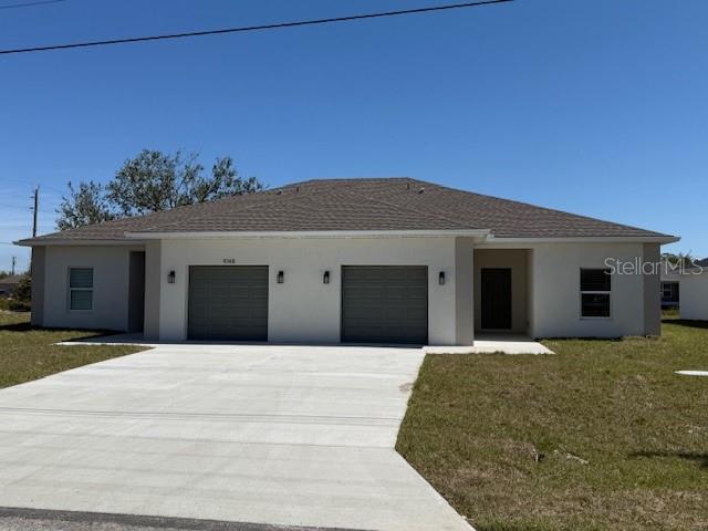 Brand New Construction Villa presents an exceptional opportunity for investors or those seeking affordable living options. Eachside boasts 3 bedrooms and 2 bathrooms, and a on3 car garage ensuring a comfortable and inviting living environment for tenants or potential homeowners. The generous floor plan emcompasses 1237 square feet within each unit, complemented by a covered patio under the truss, allowing ample space to cater to diverse lifestyles. Indulge in the luxury of high-quality upgrades that adorn the duplex, including sleek stainless-steel appliances,42" upper cabinets, and elegant granite countertops in the kitchen area. The flooring is adorned with resilient and beautiful Luxury Vinyl Plank (LVP),offering both contemporary aesthetics and easy upkeep. Your safety and peace of mind are assured, as Hurricane Impact Windows negate the need for remote shutter installation, providing optimal protection during severe weather events. Whether you're eyeing a profitable investment venture or searching for your personal haven, this duplex merits serious consideration. Developer has several other Villas for sale in the areas as well as duplex’s inLehigh Acres, Cape Coral, and Punta Gorda as well.