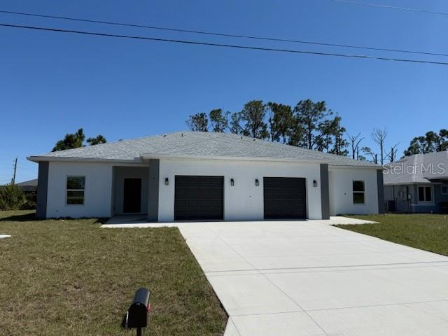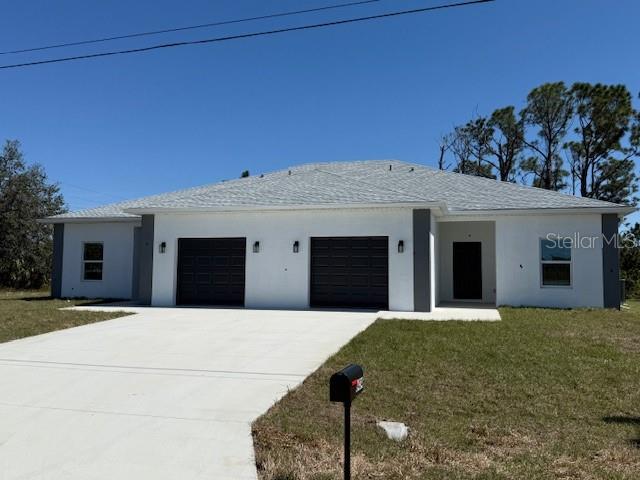 Brand New Construction Villa presents an exceptional opportunity for investors or those seeking affordable living options. Eachside boasts 3 bedrooms and 2 bathrooms, and a two car garage ensuring a comfortable and inviting living environment for tenants or potential homeowners. The generous floor plan encompasses 1237 square feet within each unit, complemented by a covered patio under the truss, allowing ample space to cater to diverse lifestyles. Indulge in the luxury of high-quality upgrades that adorn the duplex, including sleek stainless-steel appliances,42" upper cabinets, and elegant quartz countertops in the kitchen area. The flooring is adorned with resilient and beautiful Luxury Vinyl Plank (LVP),offering both contemporary aesthetics and easy upkeep. Your safety and peace of mind are assured, as Hurricane Impact Windows negate the need for remote shutter installation, providing optimal protection during severe weather events. Whether you're eyeing a profitable investment venture or searching for your personal haven, this duplex merits serious consideration. Developer has several other Villas for sale in the areas as well as duplex’s in Lehigh Acres, Cape Coral, and Punta Gorda as well.