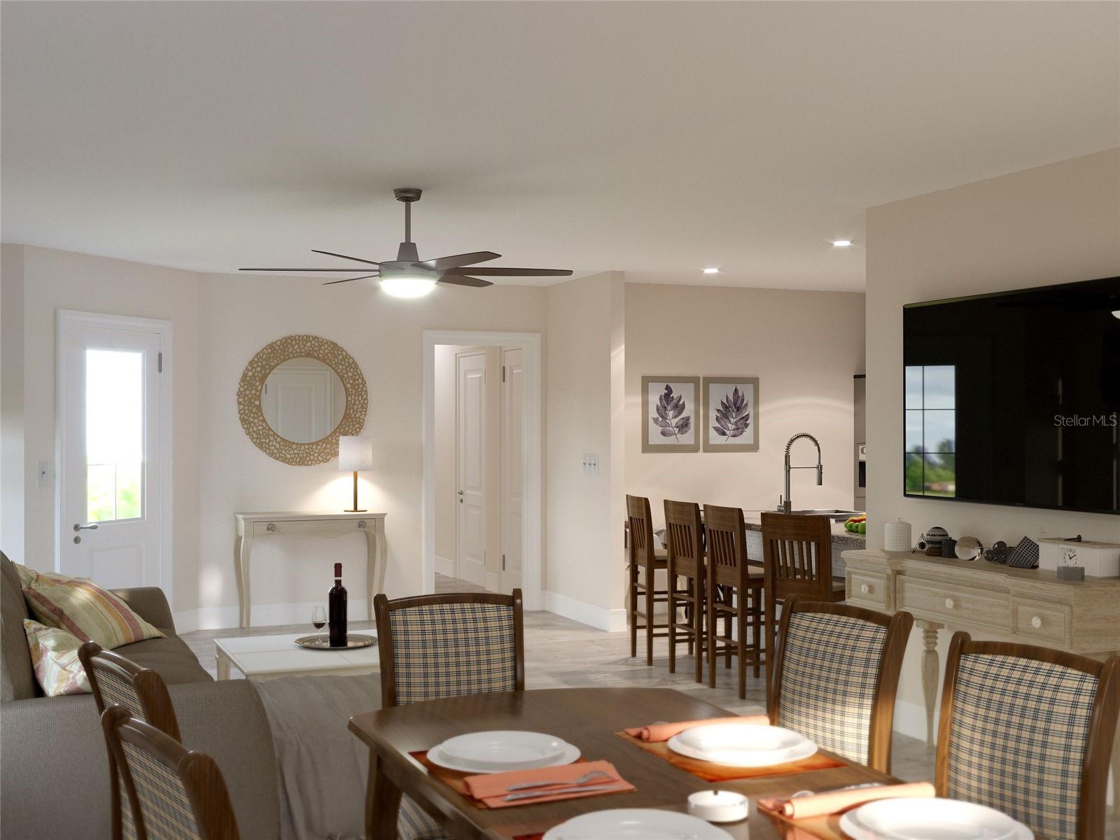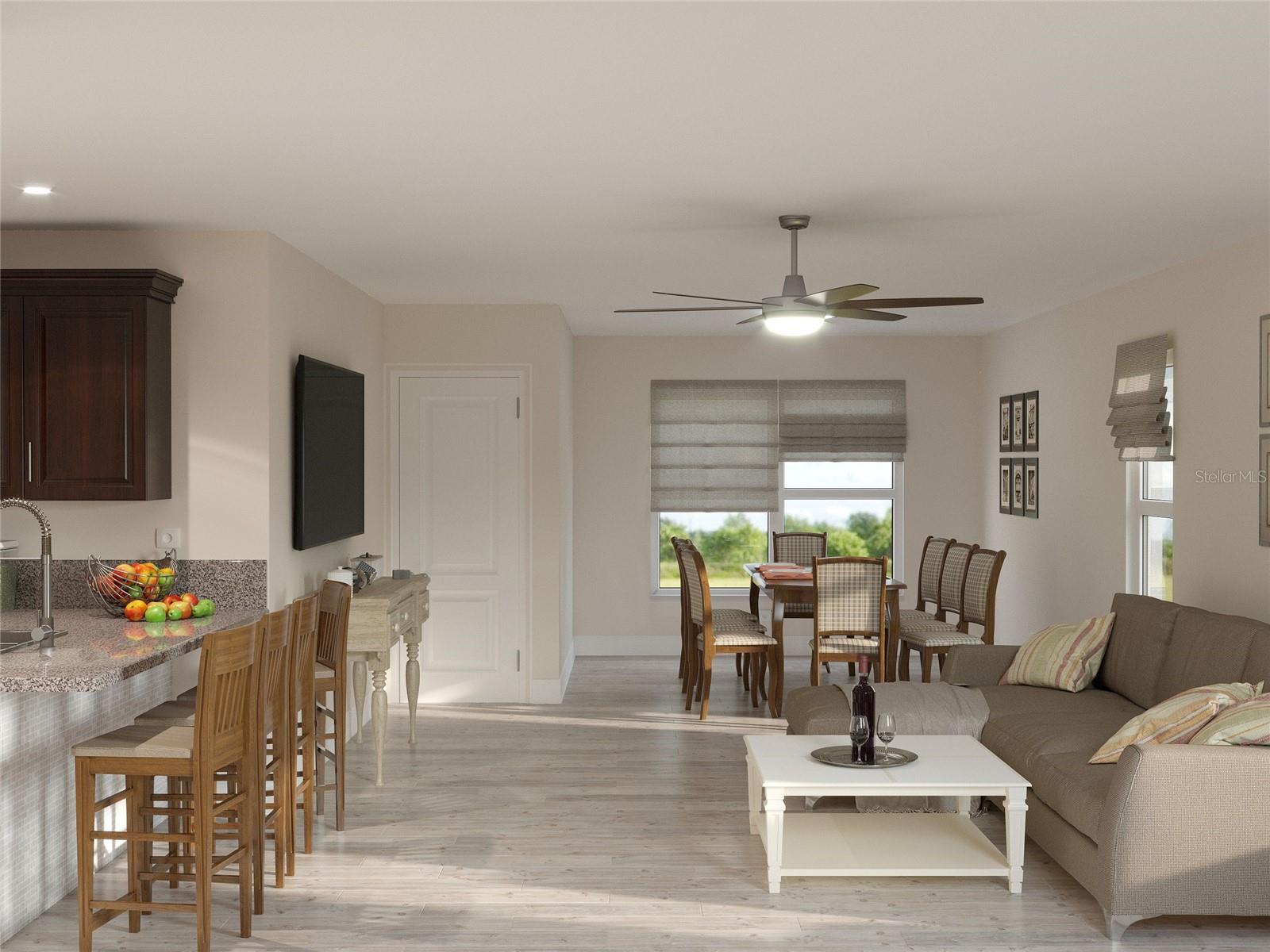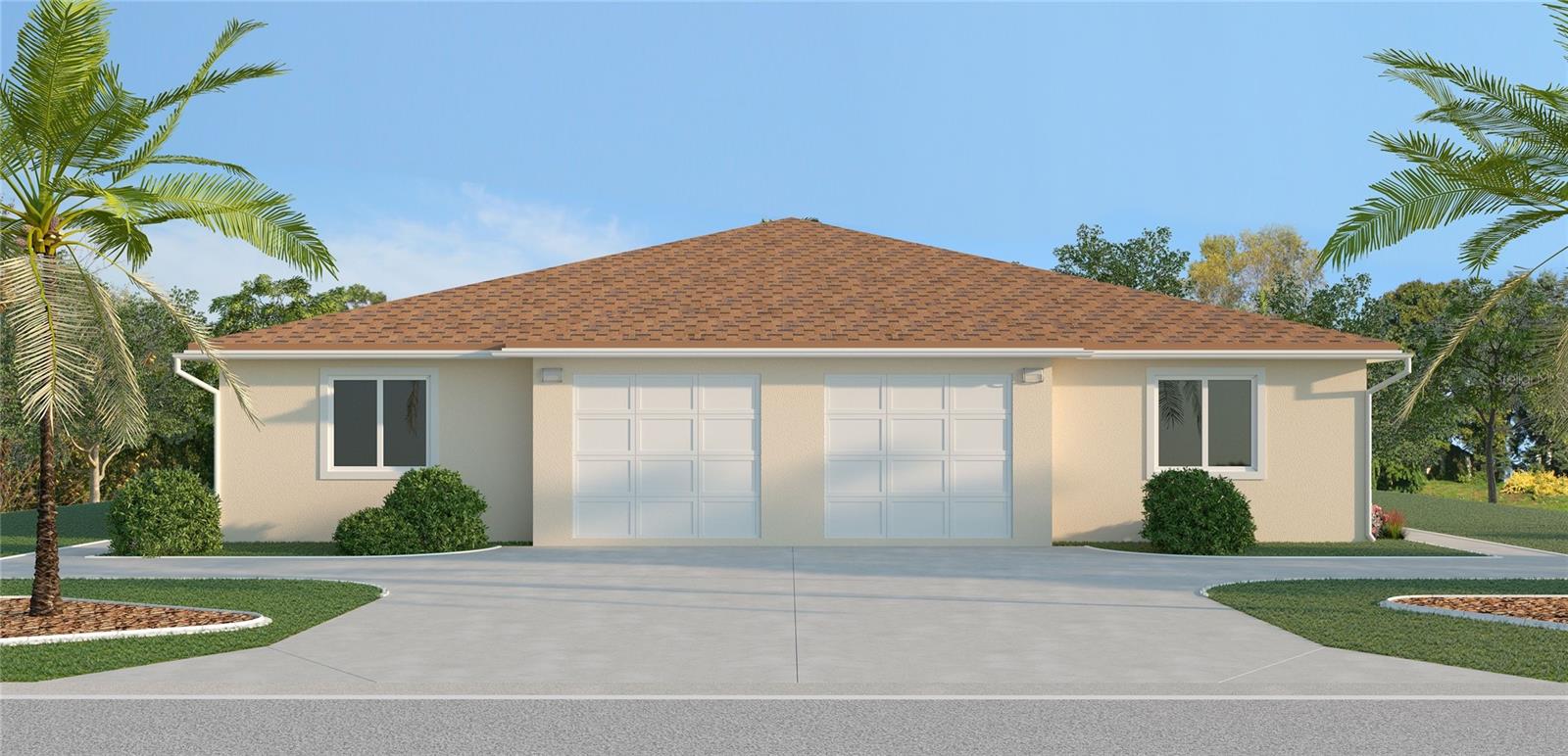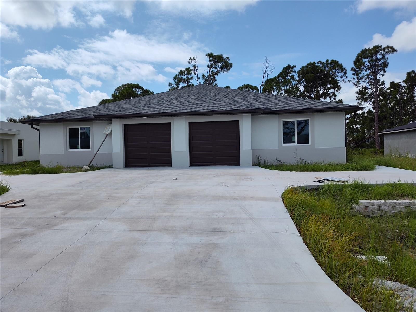 One or more photo(s) has been virtually staged. Under Construction. This is a highly rentable area just south of McCall Road. Concenient to commute to Venice, North Port , Punta gord or Fort Myers. Most photos are the artist's conception of the completed work. This builder has completed 10 other duplexes in the area. All addresses available to bonified purchasers to compare their work with this project. County final inspections have been made and a Certificate of Occupancy now available. The living room area is sufficiently large enough to accomodate a dining area and leave the separate dining room for use as a home office or childrean's paly room.