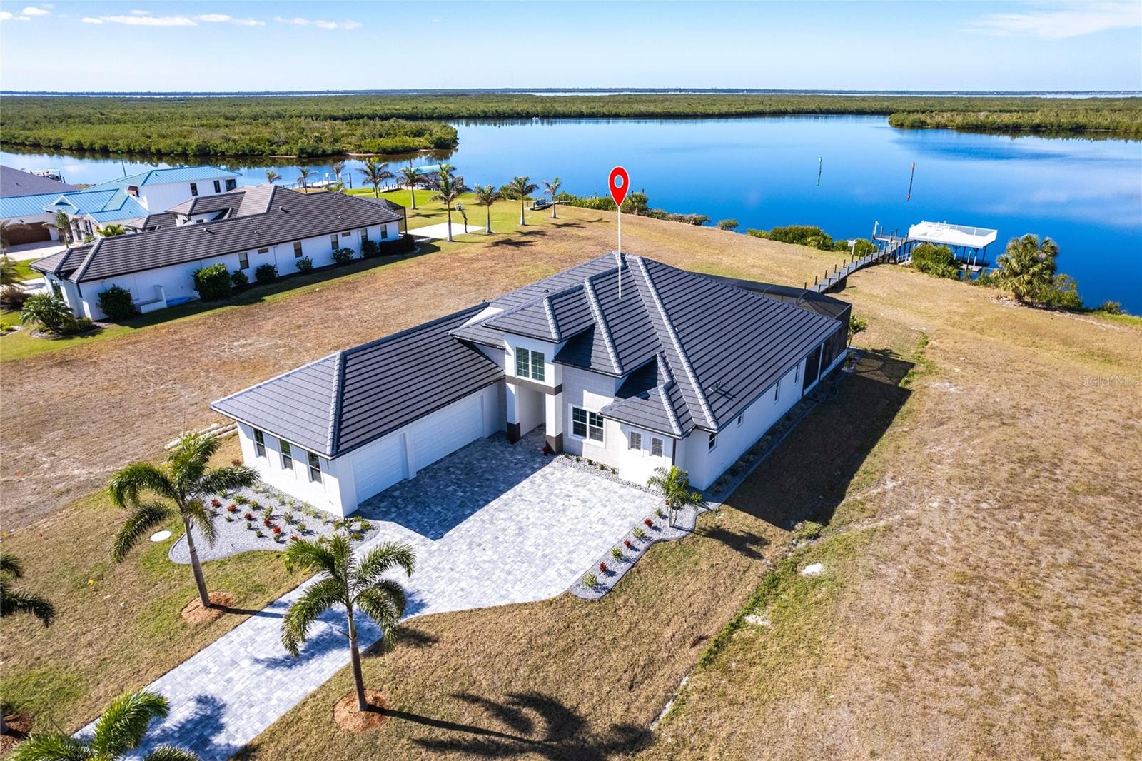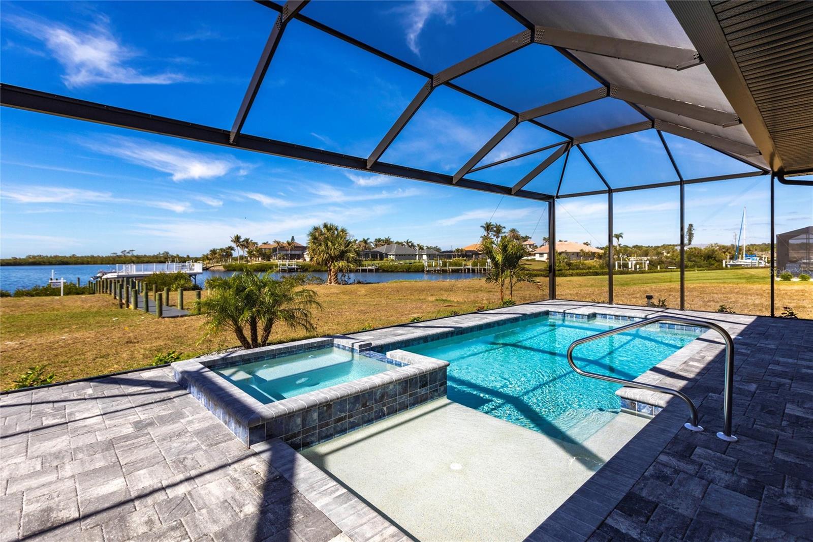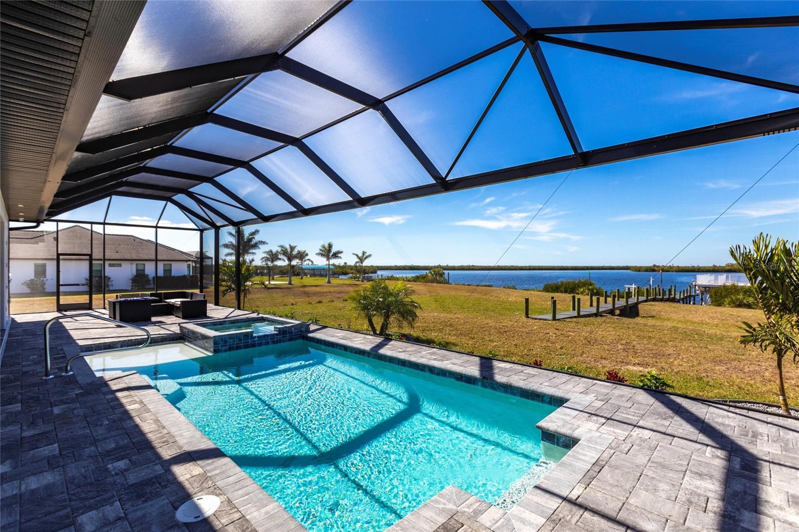 Welcome to 5061 Collingswood Blvd. Brand NEW 2025 Construction Sailboat Access home features the epitome of coastal living, with expansive waterfront views that welcome you to paradise. Immerse yourself in the luxury of this custom pool & spa home boasting 4 ensuite bedrooms with 2794 sq ft of interior space and 4606 total sq ft of coastal charm. The waterfront features a 2-story boat dock with deck, jet ski space, & 10,000 boat lift + additional 300 sq ft dock, and is sure to impress. Nestled on one of the larger lots in South Bayview Estates, this home features .62 acres, including 100 feet of waterfront, just off the Manchester Waterway canal with scenic views of the lagoons and mangrove conservation area. Home offers an exclusive escape for boat enthusiasts, featuring unrivaled amenities for your aquatic adventures. The exterior captivates with eye-catching curb appeal, featuring a tropical landscaping package, paver driveway, & an oversized 3 Car garage (22’ x 32’). The elegant Bahama shutters, multiple tile roof lines, and transom windows impart a unique character, elevating the charm and style of this waterfront haven. All doors and windows in this home are Impact Resistant. Step into luxury as you enter through the elegant French Door entryway with soaring 20 ft ceilings. This home is a masterpiece of custom features and extraordinary upgrades, truly setting it apart in a league of its own. The main living area is heightened by a breathtaking 15-foot coffered ceiling, seamlessly extending across the 20’ x 20’ great room. As you move into the dining area and den/office (could be 5th bedroom as it includes a closet), the ambiance continues with 13’ coffered ceilings, creating an inviting space for luxurious living and functionality. A well-appointed kitchen becomes a culinary haven with Island seating, wood cabinetry, stone countertops, crown molding, oversized pantry and an upgraded lighting & appliance package. The zero-corner sliding glass door seamlessly blends an indoor and outdoor oasis for relaxation by your pool & spa. The covered lanai is perfect for entertaining and enjoying the breeze, while featuring a top-of-the-line summer kitchen. which caters to the connoisseur's taste. The owner's suite unveils a private sanctuary (14’ x 18’) with 13’ coffered ceilings, lanai access and tranquil waterfront views. The luxurious bathroom is a true retreat with dual walk-in closets & vanities, wood cabinetry with stone countertops, a freestanding soaking tub, and an exquisite Roman shower, elevating daily rituals to a spa like experience. The guestrooms are located on the opposite side of the home for added privacy, offering spacious closets and large windows. Each guest room features an ensuite bath with tile shower. Half bath & interior laundry room with sink is seamlessly integrated, adding to the functional allure of this home. Only a short drive to Charlotte Sports Park, Beaches, Shopping, Airports, I75 / US 41, Sunseeker Resort, Parks, Schools, Hospitals, and more. This residence is more than a home, it's a gateway to a lifestyle where your waterfront dreams become a daily reality! Call today for more information. Home has NO Hurricane Damage and is Move in Ready!