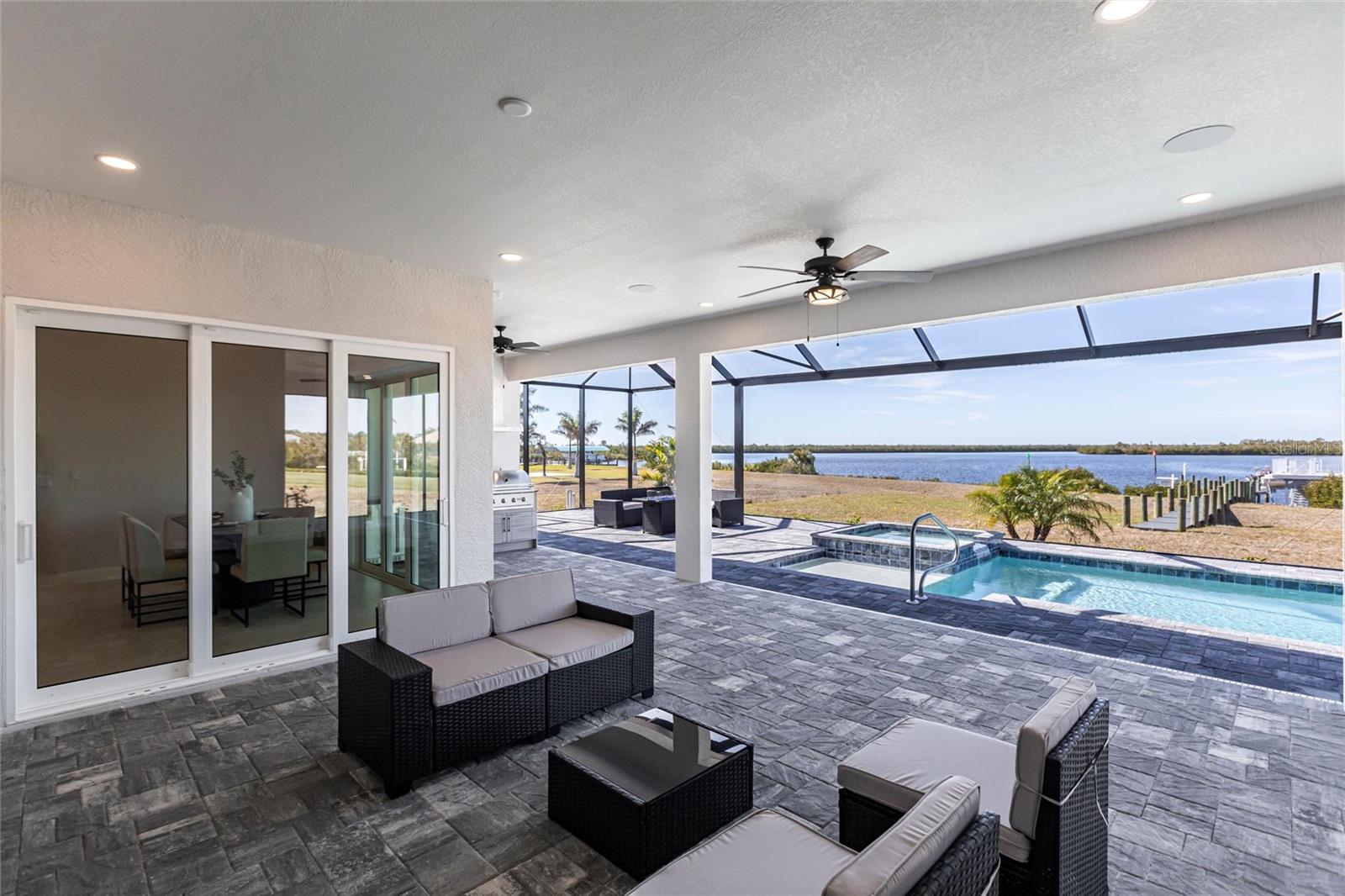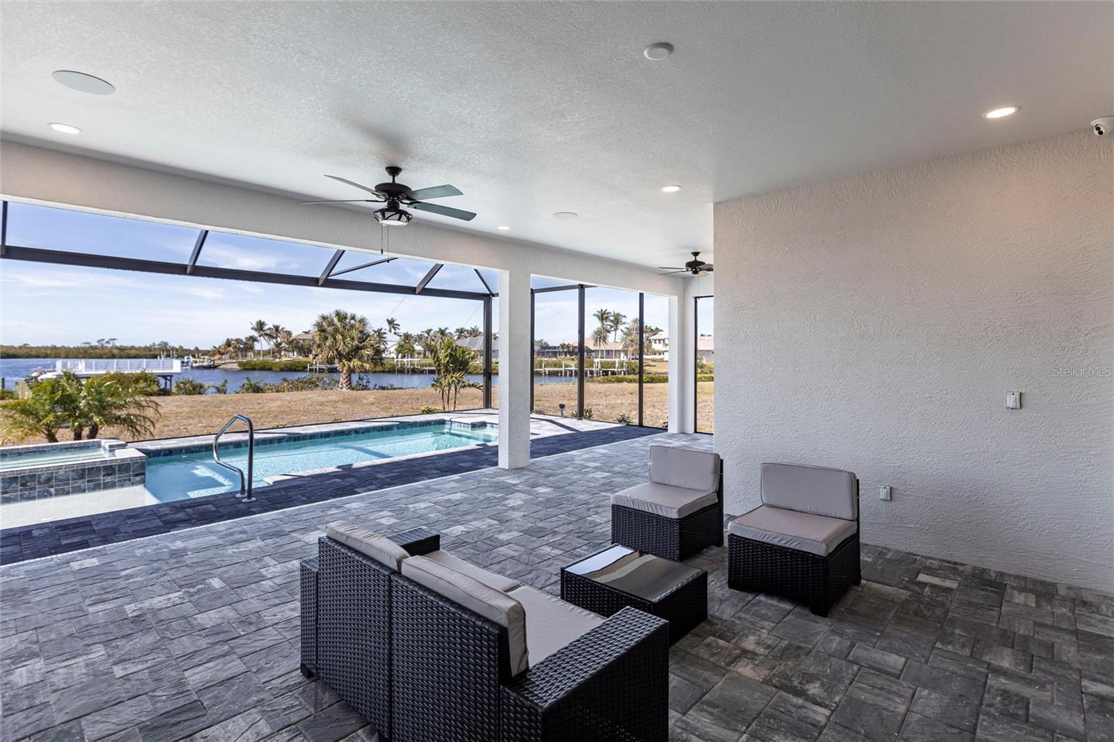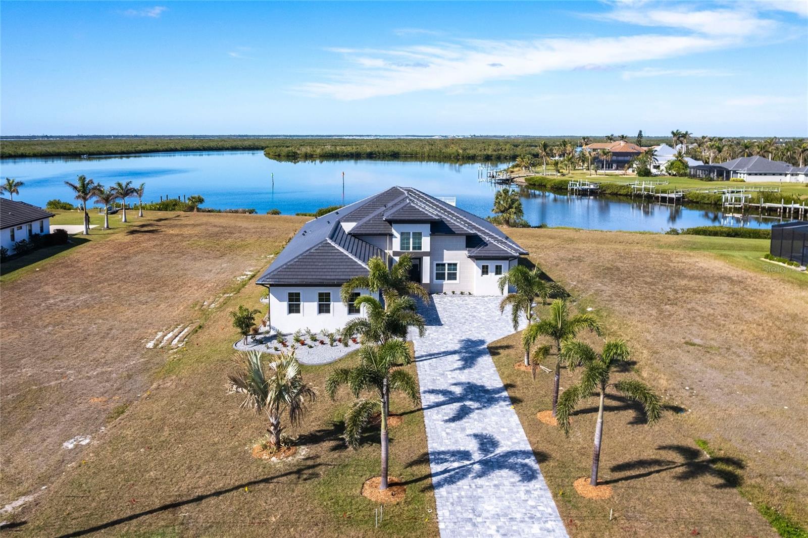 Welcome to 5061 Collingswood Blvd. Brand NEW 2025 Construction Sailboat Access home features the epitome of coastal living, with expansive waterfront views that welcome you to paradise. Immerse yourself in the luxury of this custom pool & spa home boasting 4 ensuite bedrooms with 2794 sq ft of interior space and 4606 total sq ft of coastal charm. The waterfront features a 2-story boat dock with deck, jet ski space, & 10,000 boat lift + additional 300 sq ft dock, and is sure to impress. Nestled on one of the larger lots in South Bayview Estates, this home features .62 acres, including 100 feet of waterfront, just off the Manchester Waterway canal with scenic views of the lagoons and mangrove conservation area. Home offers an exclusive escape for boat enthusiasts, featuring unrivaled amenities for your aquatic adventures. The exterior captivates with eye-catching curb appeal, featuring a tropical landscaping package, paver driveway, & an oversized 3 Car garage (22’ x 32’). The elegant Bahama shutters, multiple tile roof lines, and transom windows impart a unique character, elevating the charm and style of this waterfront haven. All doors and windows in this home are Impact Resistant. Step into luxury as you enter through the elegant French Door entryway with soaring 20 ft ceilings. This home is a masterpiece of custom features and extraordinary upgrades, truly setting it apart in a league of its own. The main living area is heightened by a breathtaking 15-foot coffered ceiling, seamlessly extending across the 20’ x 20’ great room. As you move into the dining area and den/office (could be 5th bedroom as it includes a closet), the ambiance continues with 13’ coffered ceilings, creating an inviting space for luxurious living and functionality. A well-appointed kitchen becomes a culinary haven with Island seating, wood cabinetry, stone countertops, crown molding, oversized pantry and an upgraded lighting & appliance package. The zero-corner sliding glass door seamlessly blends an indoor and outdoor oasis for relaxation by your pool & spa. The covered lanai is perfect for entertaining and enjoying the breeze, while featuring a top-of-the-line summer kitchen. which caters to the connoisseur's taste. The owner's suite unveils a private sanctuary (14’ x 18’) with 13’ coffered ceilings, lanai access and tranquil waterfront views. The luxurious bathroom is a true retreat with dual walk-in closets & vanities, wood cabinetry with stone countertops, a freestanding soaking tub, and an exquisite Roman shower, elevating daily rituals to a spa like experience. The guestrooms are located on the opposite side of the home for added privacy, offering spacious closets and large windows. Each guest room features an ensuite bath with tile shower. Half bath & interior laundry room with sink is seamlessly integrated, adding to the functional allure of this home. Only a short drive to Charlotte Sports Park, Beaches, Shopping, Airports, I75 / US 41, Sunseeker Resort, Parks, Schools, Hospitals, and more. This residence is more than a home, it's a gateway to a lifestyle where your waterfront dreams become a daily reality! Call today for more information. Home has NO Hurricane Damage and is Move in Ready!