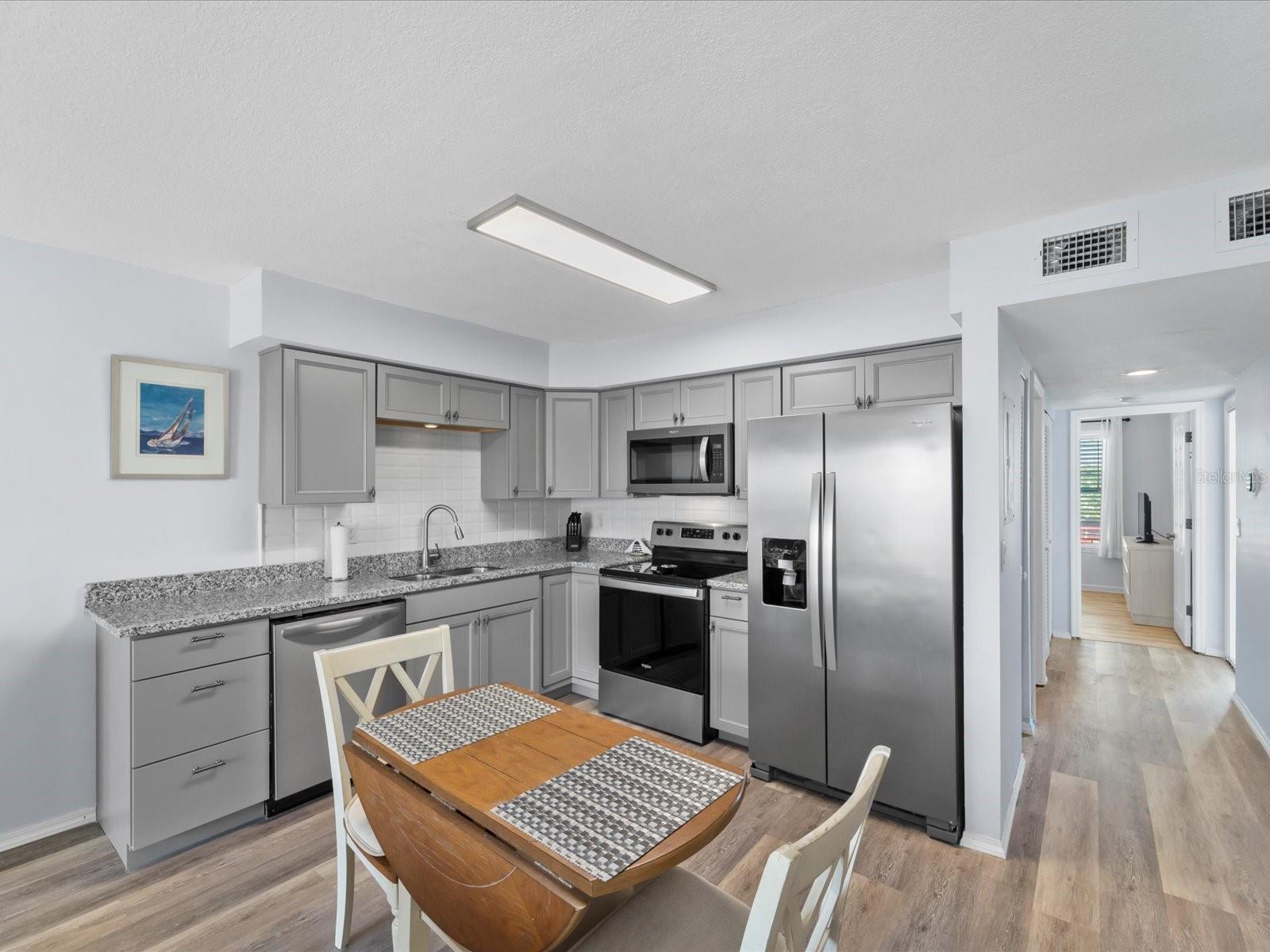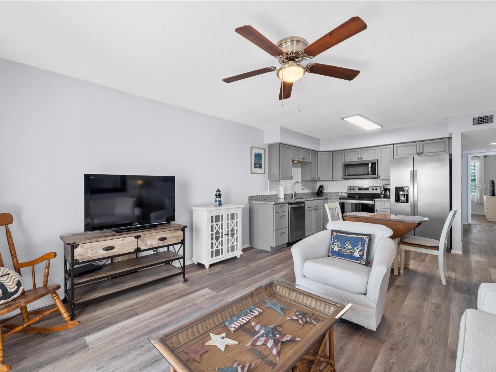 Sitting directly on the banks of the Myakka River with sunset views daily! Boater's and water lovers paradise. Harbour Village welcomes you to this tucked away community from the hustle bustle, traffic, and high density developments. Find yourself by the full Olympic sized heated pool, getting a workout on one of the two tennis courts, and in the Clubhouse there is a work-out room, table tennis, and a pool table. To the rear of the condos there is a canal and dock. Open, first come - first served docking. Electric, water, and fish cleaning stations are all at your disposal! Around 3 miles from the home of the Tampa Bay Rays spring training center at Charlotte Park! Short drive to the gulf coast beaches. Marina and boat launch around a half mile away. Nestled right in between North Port, Englewood, and Port Charlotte. The exterior of the condos have recently been adorned with all new metal roofs, new vinyl siding, fresh paint, pergolas to enjoy the grilling areas, and more. Now onto the condo unit itself - Seller is offering this beauty fully turn-key! New luxury vinyl plank throughout, completely remodeled kitchen with open concept through the living area and right out on to the balcony/screened porch area. Solid wood cabinets with a corner lazy Susan, new appliances, granite counter tops. The full bathroom is all new with a new tub/shower and vanity. Fresh paint throughout pulls it all together for a tranquil place to call home or use as an income producing asset.