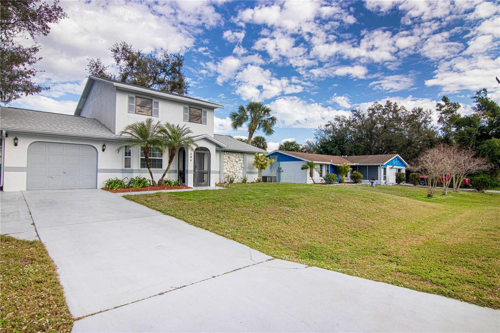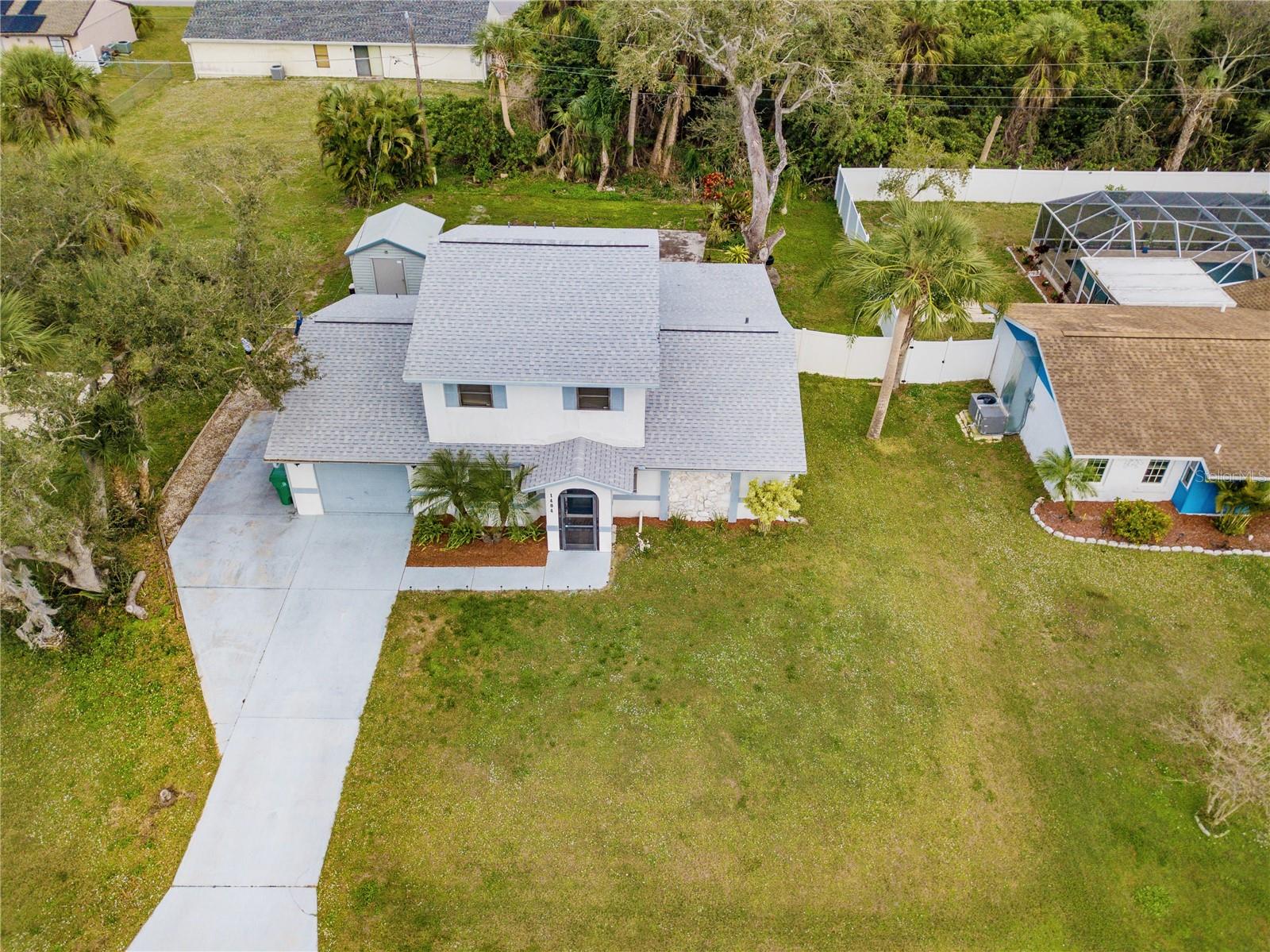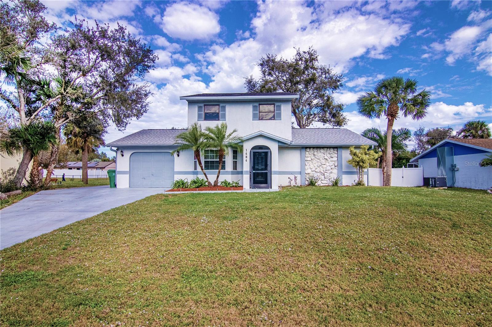 Welcome to your ideal home in sunny Port Charlotte, Florida! This stunning residence seamlessly combines comfort and style, providing the perfect retreat for you and your loved ones. Spanning two floors, this spacious home features bedrooms both upstairs and downstairs, offering ample living space. The converted, air-conditioned garage is a versatile area, ideal for a man cave or an extra bedroom tailored to your preferences. Step inside to discover a large, well-lit living room and a generously sized dining room, creating an inviting atmosphere for entertaining guests or enjoying quiet moments. The kitchen is a culinary haven, equipped with modern stainless steel appliances, plenty of counter space, and a spacious pantry for your convenience. Escape to the enclosed patio, adorned with wood and bamboo stylings, creating a serene island vibe. It's the perfect space to unwind, whether you're hosting gatherings or simply enjoying a tranquil moment. Situated on a spacious .23-acre lot, this home offers plenty of room for outdoor activities and recreational toys. The property includes a garden shed, and the expansive yard provides an opportunity to create your own personalized oasis. Conveniently located across the street from Neil Armstrong Elementary, this home is perfect for those seeking proximity to elementary school. Enjoy a short drive to some of the finest beaches in the country and be minutes away from the new Sunseeker Resort and the Peace River. If you're ready to embrace all that Florida has to offer, look no further. This home is a perfect blend of comfort, style, and convenience, making it the ideal choice for those seeking the ultimate Florida lifestyle. Don't miss the opportunity to make this beautiful property your own!
