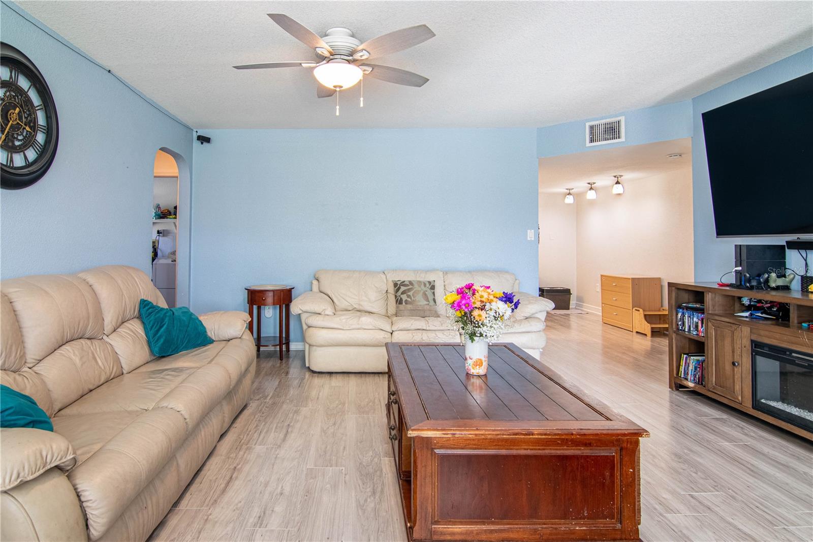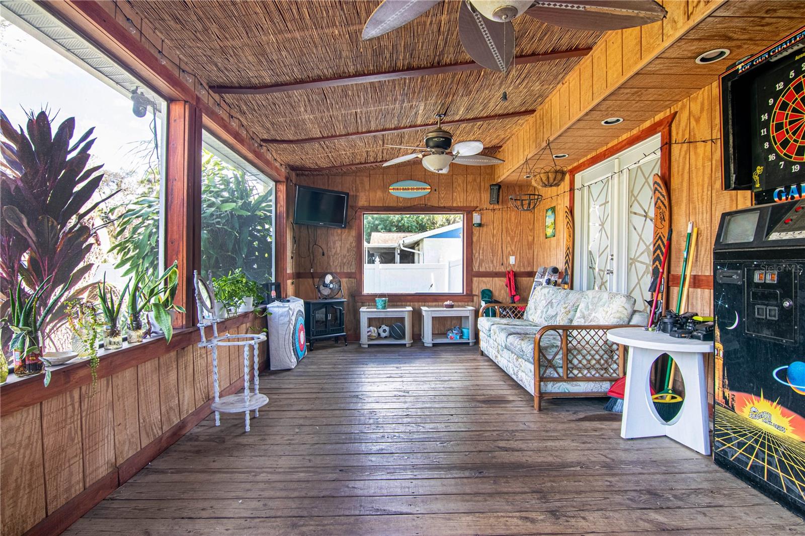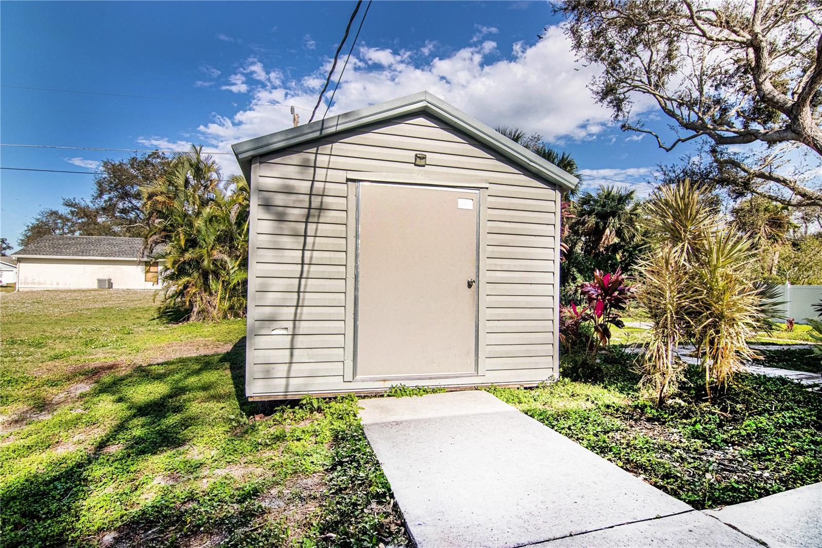 Welcome to your ideal home in sunny Port Charlotte, Florida! This stunning residence seamlessly combines comfort and style, providing the perfect retreat for you and your loved ones. Spanning two floors, this spacious home features bedrooms both upstairs and downstairs, offering ample living space. The converted, air-conditioned garage is a versatile area, ideal for a man cave or an extra bedroom tailored to your preferences. Step inside to discover a large, well-lit living room and a generously sized dining room, creating an inviting atmosphere for entertaining guests or enjoying quiet moments. The kitchen is a culinary haven, equipped with modern stainless steel appliances, plenty of counter space, and a spacious pantry for your convenience. Escape to the enclosed patio, adorned with wood and bamboo stylings, creating a serene island vibe. It's the perfect space to unwind, whether you're hosting gatherings or simply enjoying a tranquil moment. Situated on a spacious .23-acre lot, this home offers plenty of room for outdoor activities and recreational toys. The property includes a garden shed, and the expansive yard provides an opportunity to create your own personalized oasis. Conveniently located across the street from Neil Armstrong Elementary, this home is perfect for those seeking proximity to elementary school. Enjoy a short drive to some of the finest beaches in the country and be minutes away from the new Sunseeker Resort and the Peace River. If you're ready to embrace all that Florida has to offer, look no further. This home is a perfect blend of comfort, style, and convenience, making it the ideal choice for those seeking the ultimate Florida lifestyle. Don't miss the opportunity to make this beautiful property your own!