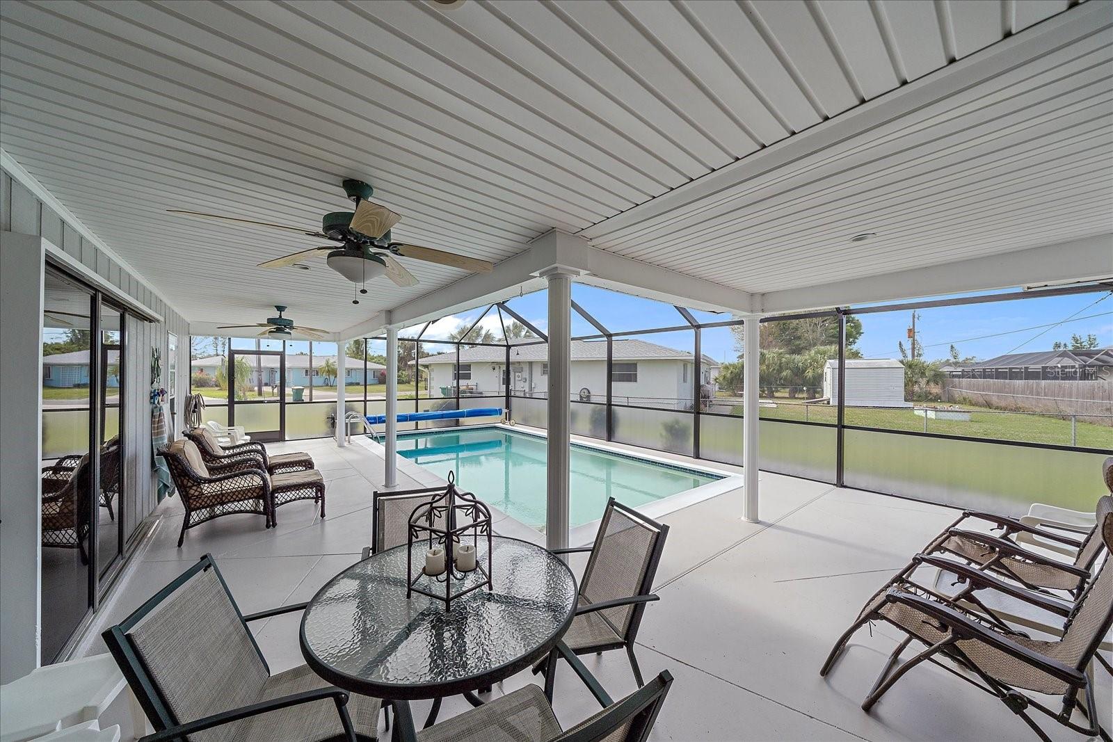 Enjoy low cost of ownership at 2455 Abscott Street, a stunning, upgraded residence located in the heart of Port Charlotte, FL on a generous lot. No HOA, No CDD, No Flood Insurance! This meticulously maintained split floor plan home boasts three spacious bedrooms, two modern bathrooms, and a convenient two-car garage, providing both style and functionality for a comfortable lifestyle. Step inside to discover a thoughtfully updated interior featuring classic finishes and abundance of natural light. The open, concentric floor plan seamlessly connects the living, dining, kitchen, and spacious family room creating a perfect space for entertaining friends and family. The kitchen is truly the heart of this home, equipped with newer appliances and ample cabinet space for all your culinary needs. Whether you're preparing a casual meal or hosting a dinner party, this kitchen is sure to impress. The bedrooms are generously sized, offering a relaxing retreat at the end of the day. The master suite is a haven of luxury, complete with a private ensuite bathroom and plenty of closet space. As you step outside, you'll be greeted by a pet friendly fenced in backyard oasis featuring an inviting inground pool. Perfect for cooling off on warm Florida days. The pool area is surrounded by a BRAND NEW Mansard style lanai, providing both privacy and a serene atmosphere. Beautiful new landscaping rock in the flower beds and a freshly painted pool deck are simply the icing on the cake. Beyond the pool, the two-car garage provides secure parking and additional storage space, ensuring both convenience and functionality. This home has many upgrades such as a NEW roof, hurricane impact windows, heating and cooling system, lanai screen enclosure, pool heater, pool pump and tankless water heater amongst other features. Located in the desirable community of Port Charlotte, this home is just a short drive away from local amenities, schools, recreational areas, 7 minutes from HCA Fawcett Hospital and Shorepoint Health Hospital, 20 minutes to Punta Gorda Airport, and only 9 minutes from the illustrious SunSeeker Resort in Charlotte Harbor. Golfers will also enjoy its close proximity to many courses as well! Whether you're enjoying the nearby beaches, or simply relaxing in your own backyard, 2455 Abscott Street offers the best of Florida living. Don't miss the chance to make this upgraded and well-appointed home your own. This energy efficient and affordably insurable home is a great opportunity. Schedule a viewing today and experience the epitome of comfort and style in Port Charlotte, FL.