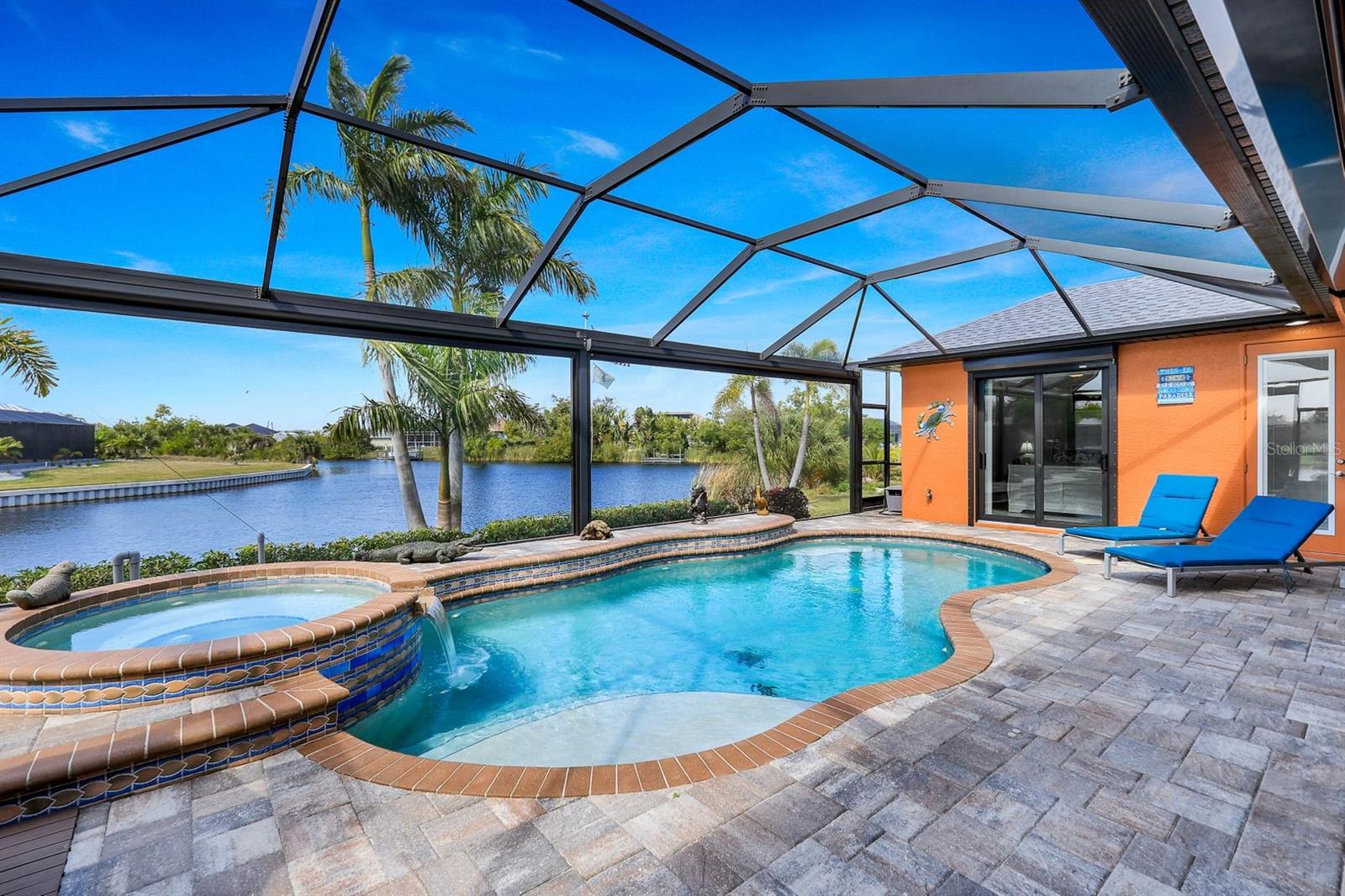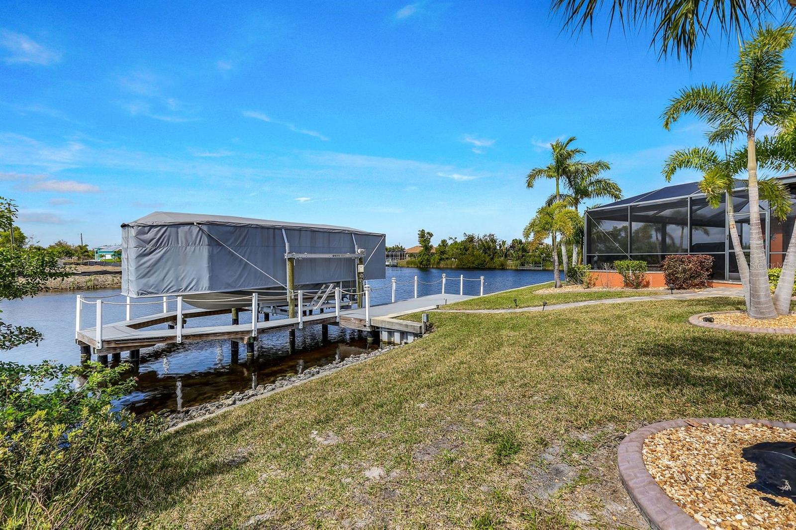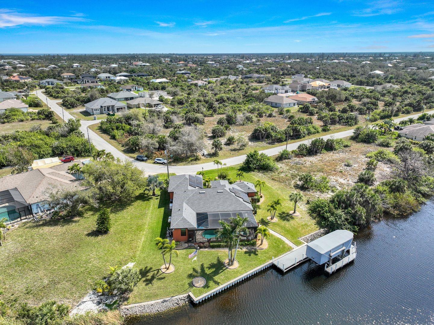 Price Improvement, Sellers Motivated! Rare opportunity alert! Additional lots included! Immerse yourself in Florida living with this exquisite turnkey Gulf-access waterfront SMART home located in Port Charlotte. Enjoy breathtaking sunset views from your heated custom pool/spa, boasting 153 feet of water frontage on a tip lot. This meticulously designed home comes fully equipped with premium features including fully paid electrical solar panels for minimal electricity bills, remote-controlled hurricane shades for added safety and savings, and whole-house automation for ultimate convenience. Entertain with ease in the outdoor kitchen and spacious lanai. The property features a 10,000 lb boat lift, 87 ft wrap-around dock, and two jet skis for endless water adventures. Inside, discover a chef's kitchen with walk-in pantry and high-end appliances, relax in the luxurious master suite with a walk-through shower and dual vanities, 10’ doors, and crown molding. This home is a tech-lover's paradise, with home devices accessible via your phone. Additionally, the comfort of a whole-house 24k generator and insulated garage with A/C. Furnishings, window treatments, and extras are all included, ensuring a seamless move-in experience. With three additional lots included in the sale, totaling over 1 acre, the possibilities are endless. Conveniently located near shopping, golf courses, and Boca Grande beach just 20 minutes away. Don't miss out on this incredible opportunity. Be advised that video and audio surveillance equipment is in use on these premises.