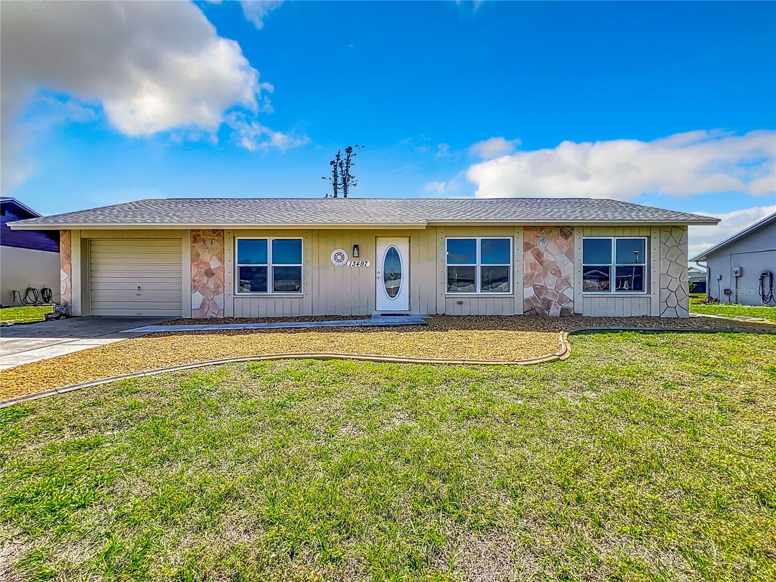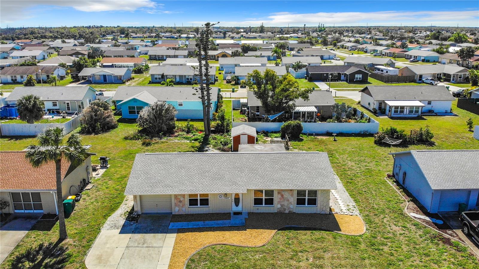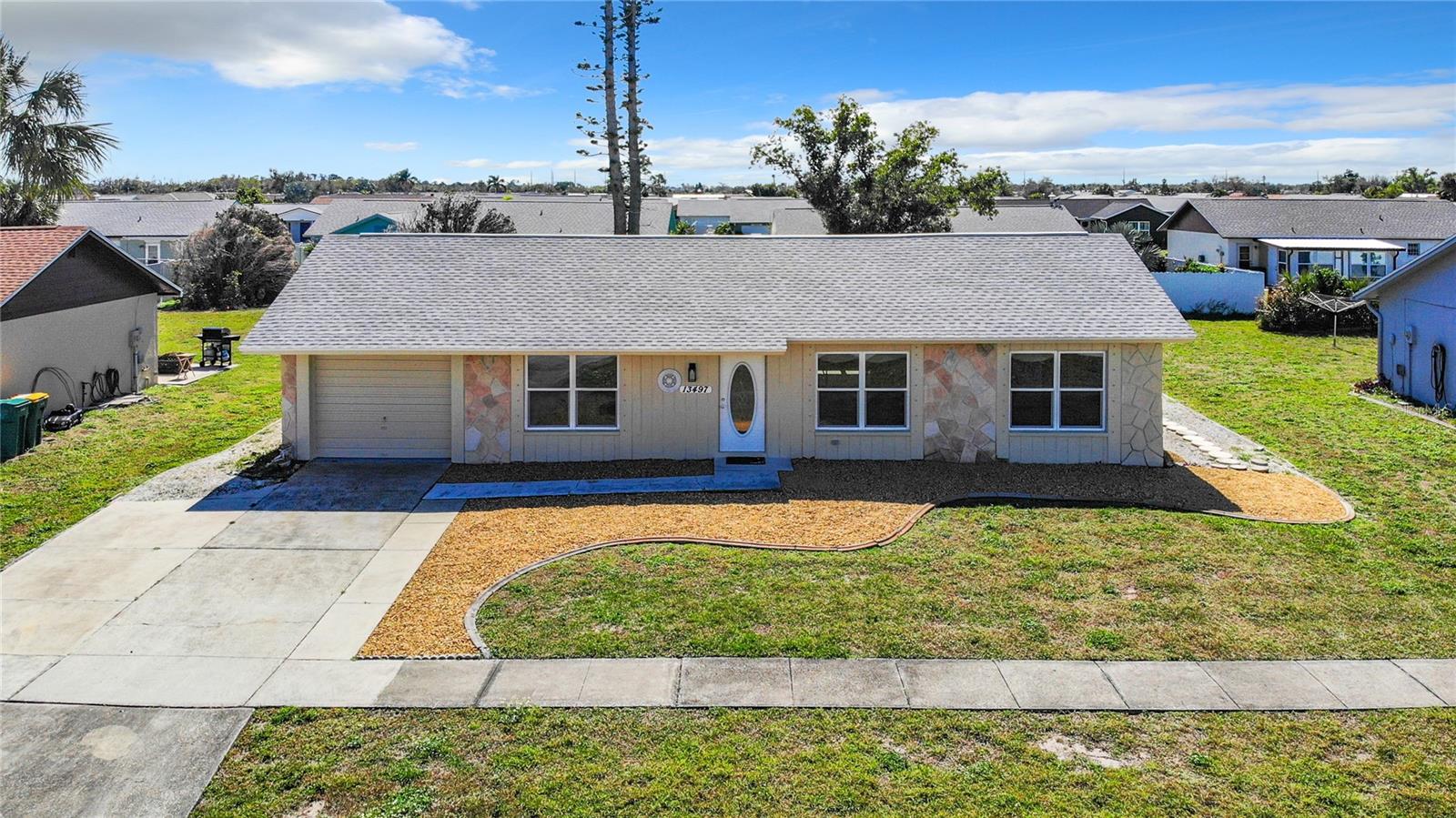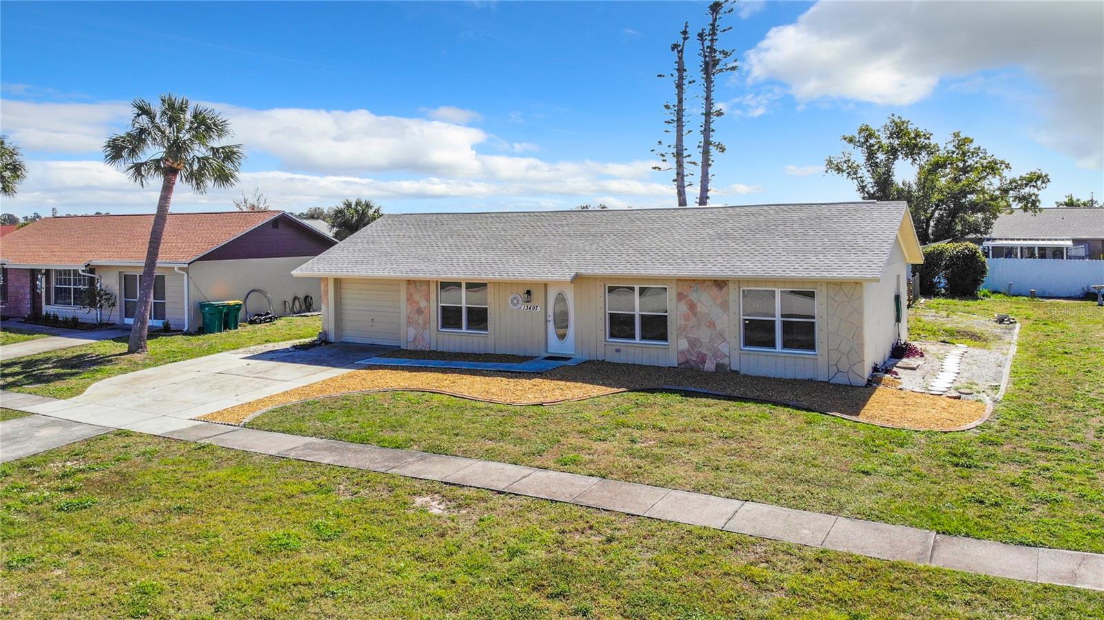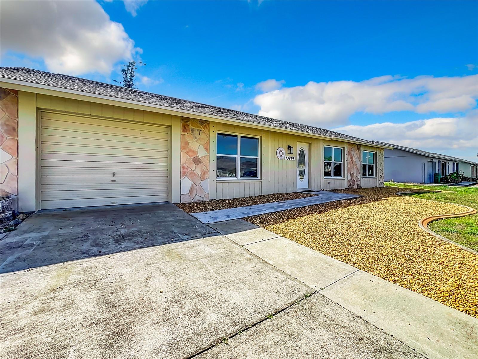 Newly Renovated home that offers 2 large Bedrooms, beautiful master bath with walk-in shower plus another full bath for your guest. large bright living room/Dining room combo with cathedral ceilings. Brand new kitchen with all new appliances, breakfast bar and tile floors. From the kitchen you enter the laundry room and 1 car garage. All new paint on the interior. Large Lanai off the Dining area with tile floors that leads to a big back yard with shed. New Roof in 2023.