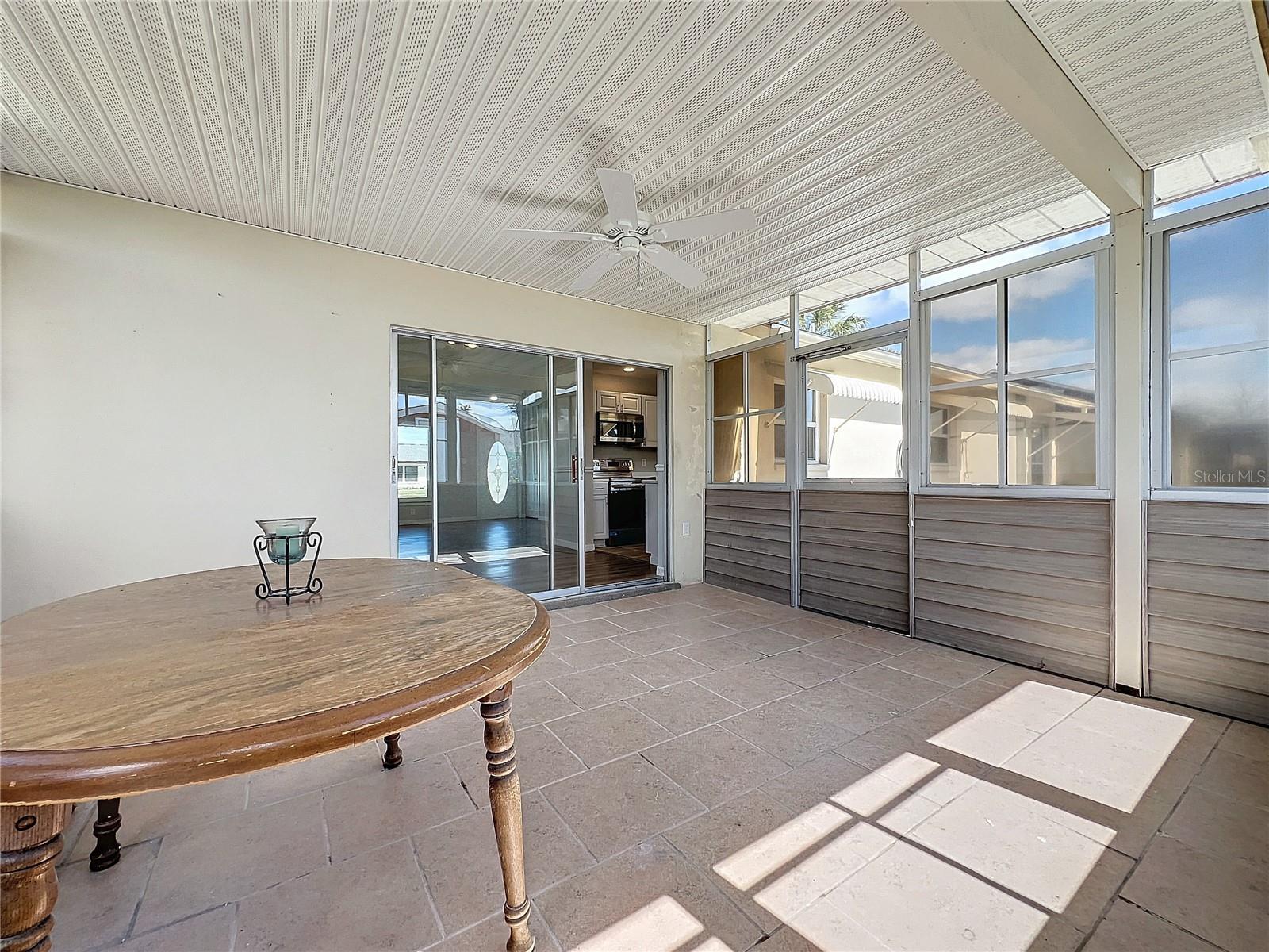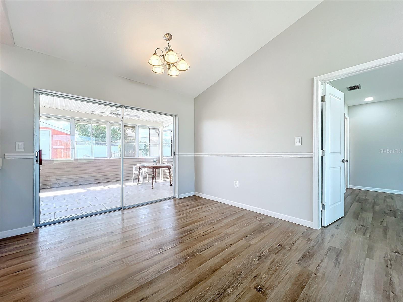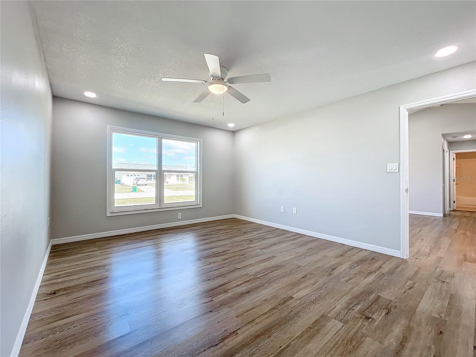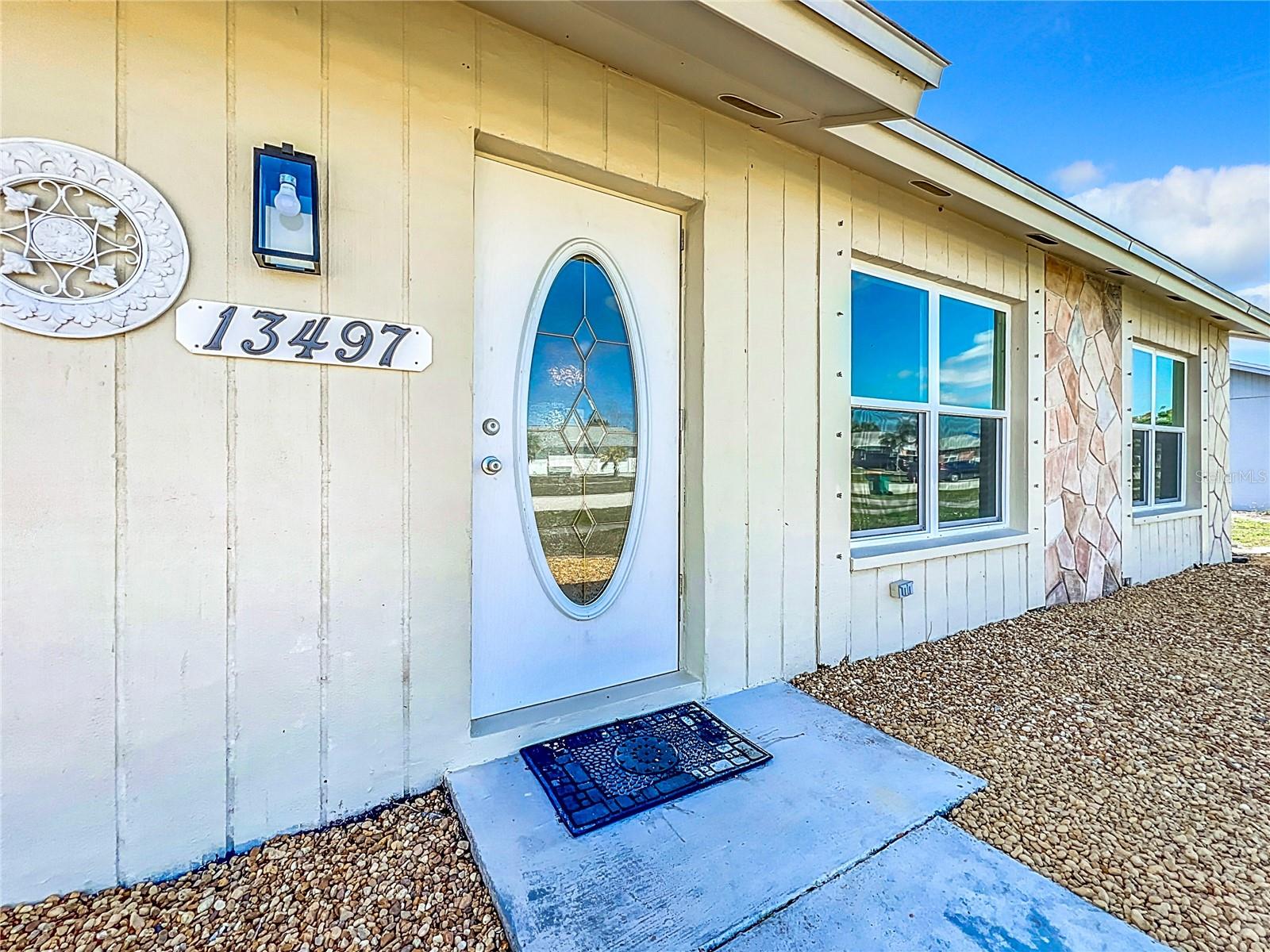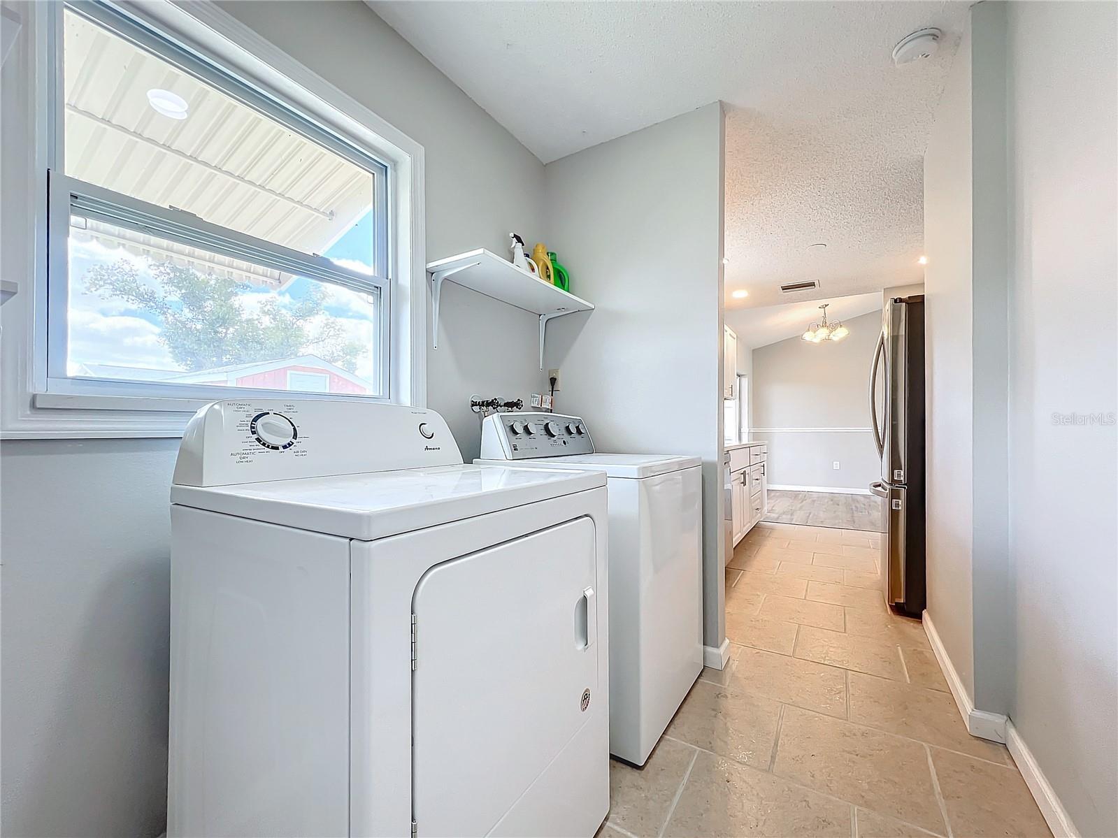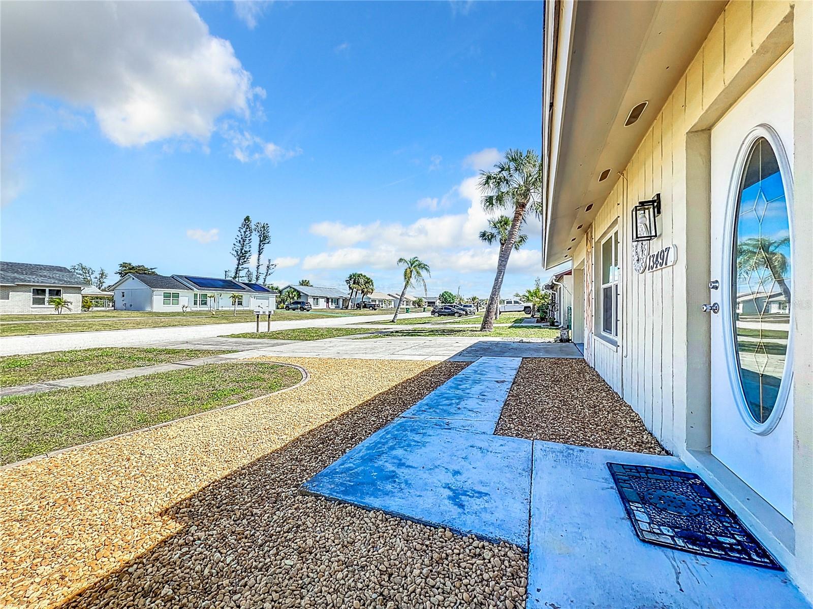 Newly Renovated home that offers 2 large Bedrooms, beautiful master bath with walk-in shower plus another full bath for your guest. large bright living room/Dining room combo with cathedral ceilings. Brand new kitchen with all new appliances, breakfast bar and tile floors. From the kitchen you enter the laundry room and 1 car garage. All new paint on the interior. Large Lanai off the Dining area with tile floors that leads to a big back yard with shed. New Roof in 2023.