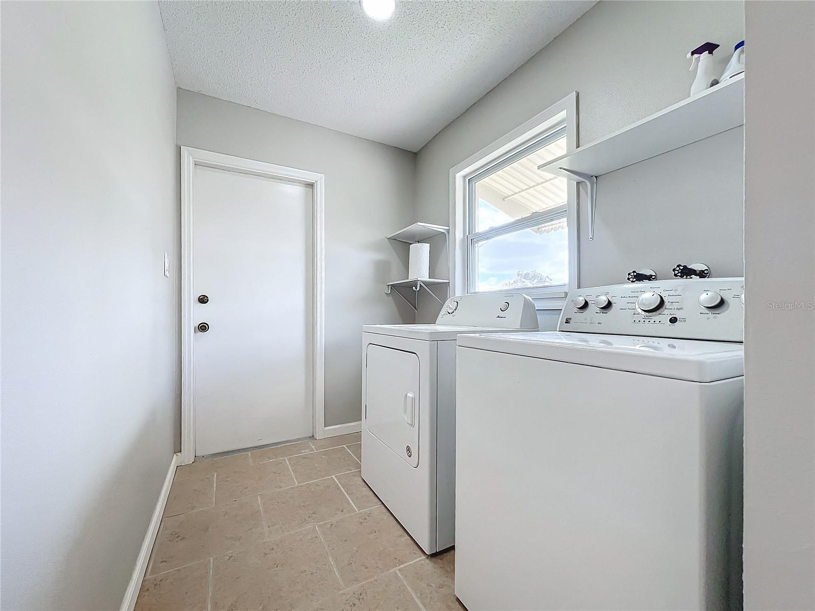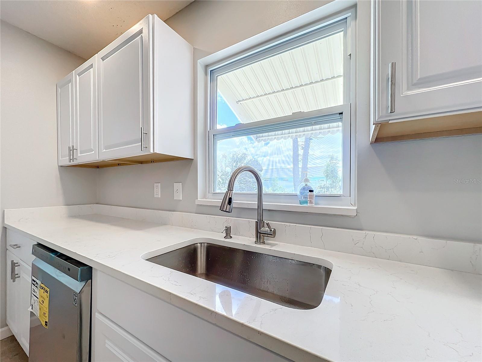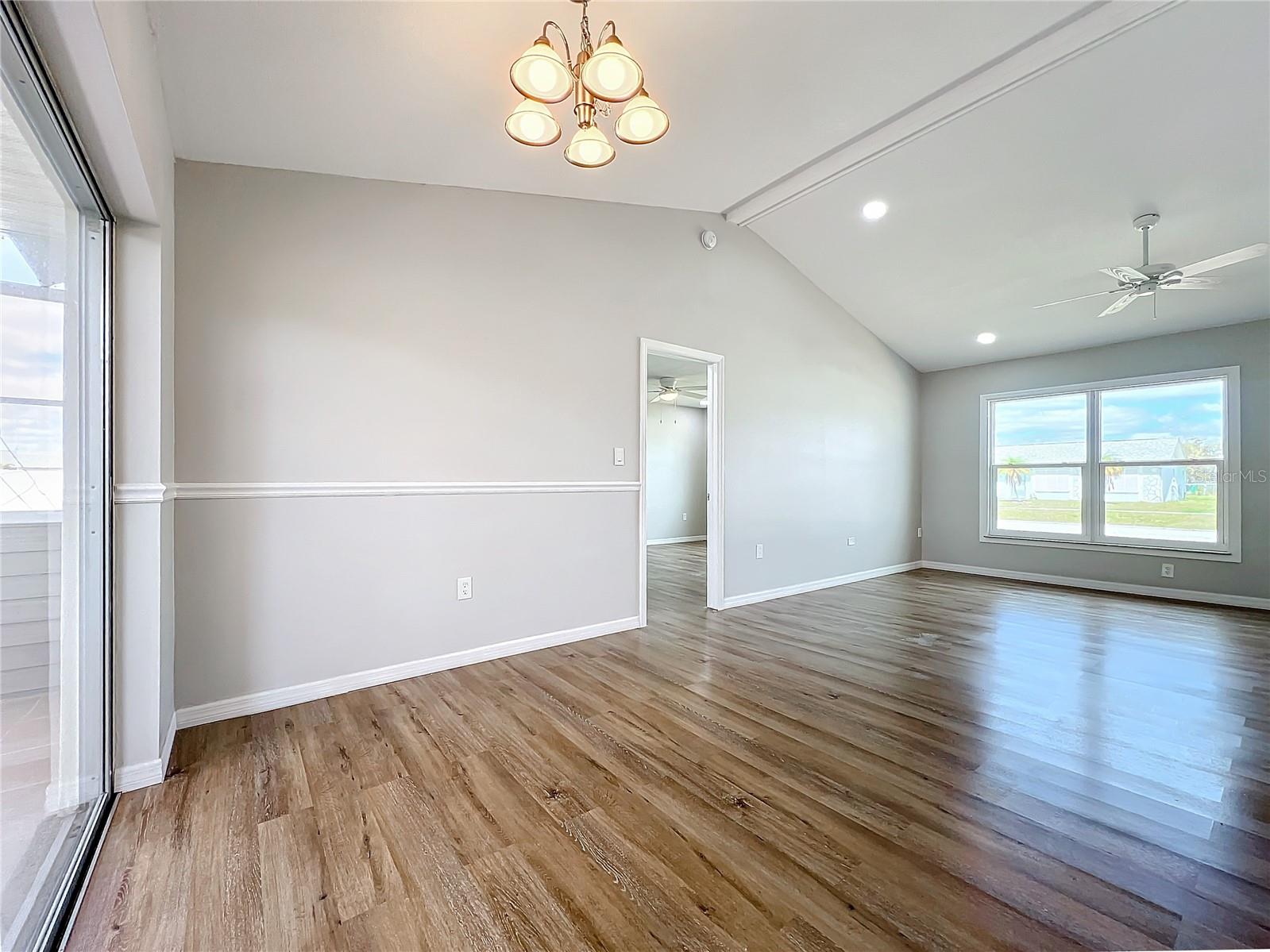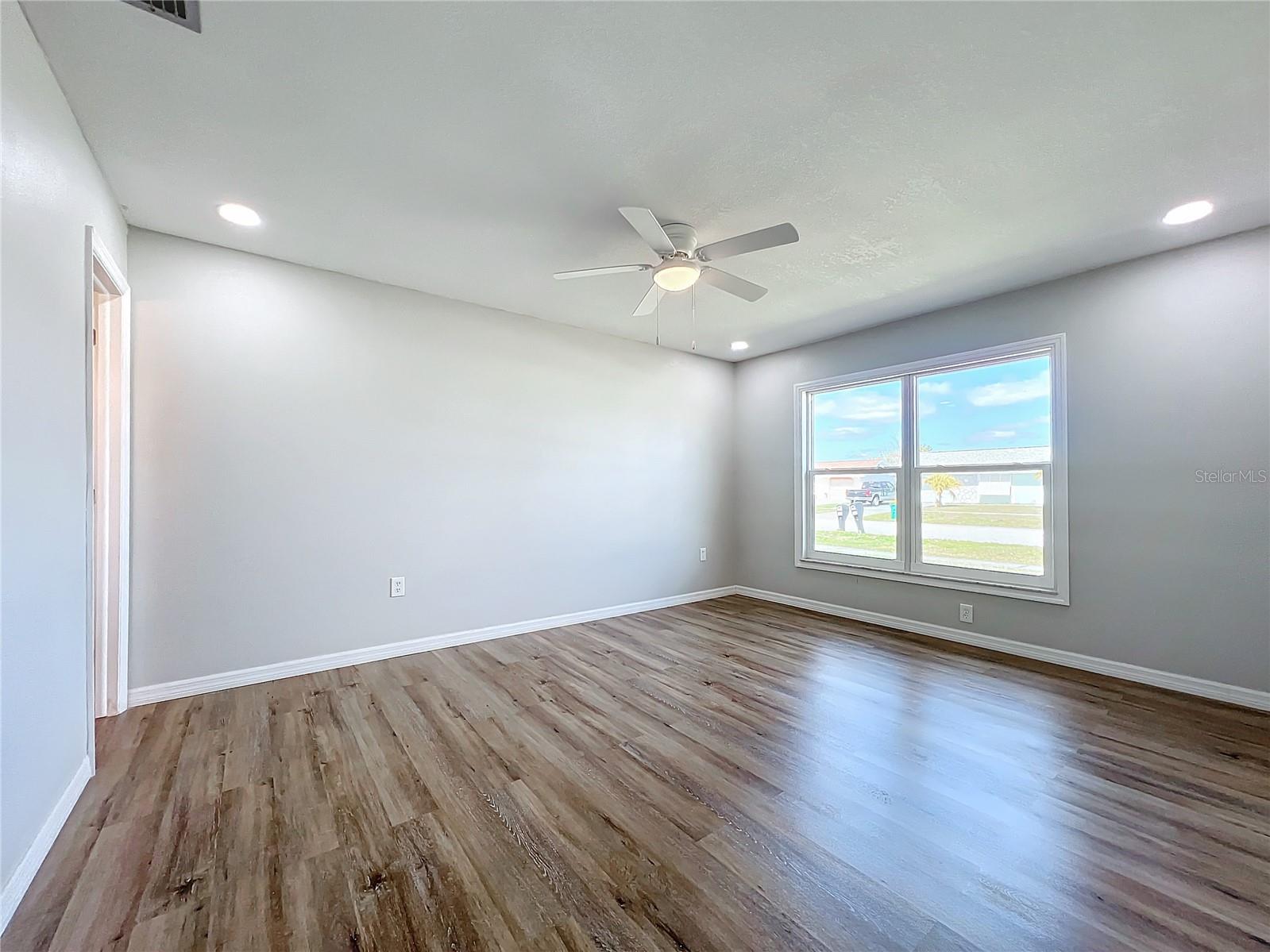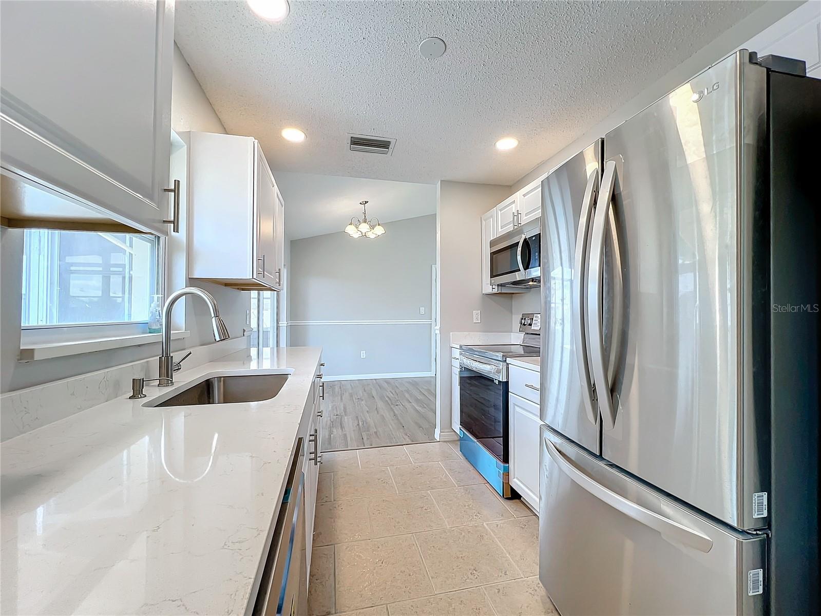 Newly Renovated home that offers 2 large Bedrooms, beautiful master bath with walk-in shower plus another full bath for your guest. large bright living room/Dining room combo with cathedral ceilings. Brand new kitchen with all new appliances, breakfast bar and tile floors. From the kitchen you enter the laundry room and 1 car garage. All new paint on the interior. Large Lanai off the Dining area with tile floors that leads to a big back yard with shed. New Roof in 2023.