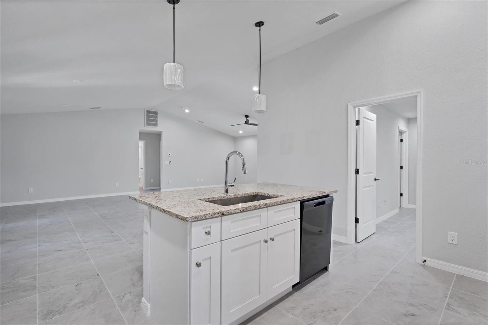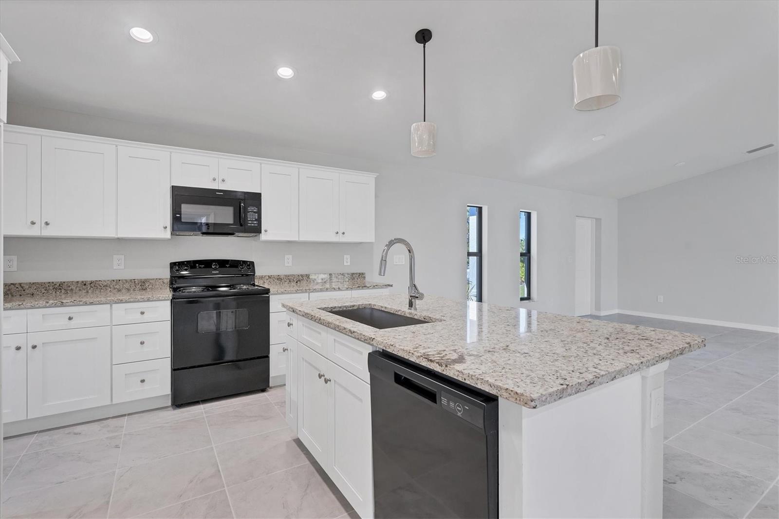 One or more photo(s) has been virtually staged. 2023 BRAND NEW CONSTRUCTION! This beautiful, clean, never lived in home in Port Charlotte has close proximity to I75 for any of your commuting or traveling needs. This 3 bedroom 2 bath home has a livable open floorplan made for entertaining or everyday living. The kitchen boasts beautiful white cabinets and granite countertops and lots of room to place a large dining table nearby for all your hosting needs. Guests then can seamlessly move to the covered lanai outside behind the living area, enjoying the shade of the afternoon underneath the cool breeze of ceiling fan or watching the sun rise to the east in those early morning hours with coffee. Nice quiet community with NO HOA or CDD fees. Home sits high atop its lot and not within a flood zone.