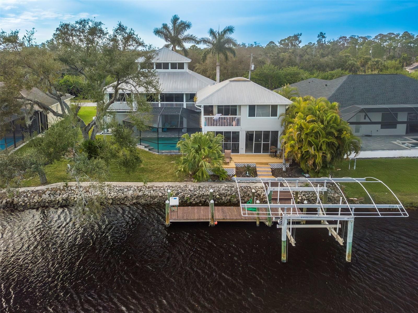 This is your unique opportunity to own a portion of Florida's natural WATERFRONT beauty, while enjoying all the tastefully modern amenities you could want. This wonderfully updated 2-bedroom, 2-bathroom main house boasts soaring ceilings, a refaced wood burning fireplace, and an abundance of large windows that flood the space with natural light and offer lovely water views. The kitchen, open to the living area for ease of use and enjoyment, has granite and Corian countertops, gas cooking, and a pass-through window to the covered deck, overlooking the like new, custom pool. The lower-level kitchenette leads out to an incredible waterfront screened lanai with a bar and granite countertop seating area for relaxing or entertaining. What’s MORE is this property includes an attached guest house, offering a bedroom and bathroom and boasts amazing water views of its own. Just steps from the large rear deck is the canal, where you’ll find 80ft of riprap seawall and a boat dock with a covered boat lift. Regular sightings of manatees, dolphins, sharks, and alligators in the canal, which also is home to an abundance of saltwater fish. This is an incredible location along the Apollo Waterway, providing access to the Myakka River. A short 10-minute boat ride to the Charlotte Harbor and then right on out to the Gulf of Mexico. This TURNKEY delight Conveniently located close to US 41 and 75, yet privately tucked away, this home offers easy access to schools, is parks, and shopping. A vacant lot across Irwin Drive is available for purchase additionally. This special property will not last long on the market with its waterfront location and wonderful updates. Call on this one before it is gone!