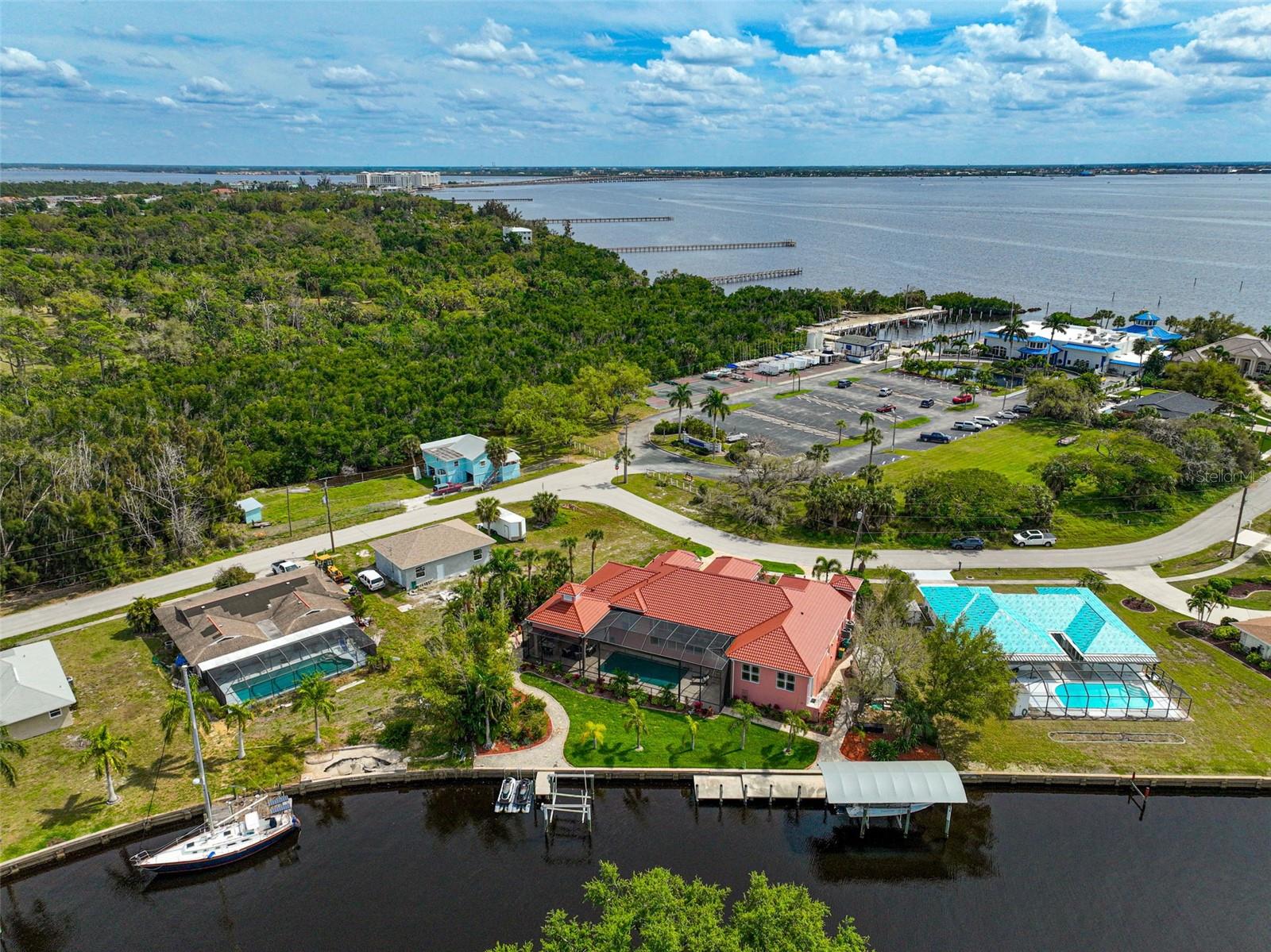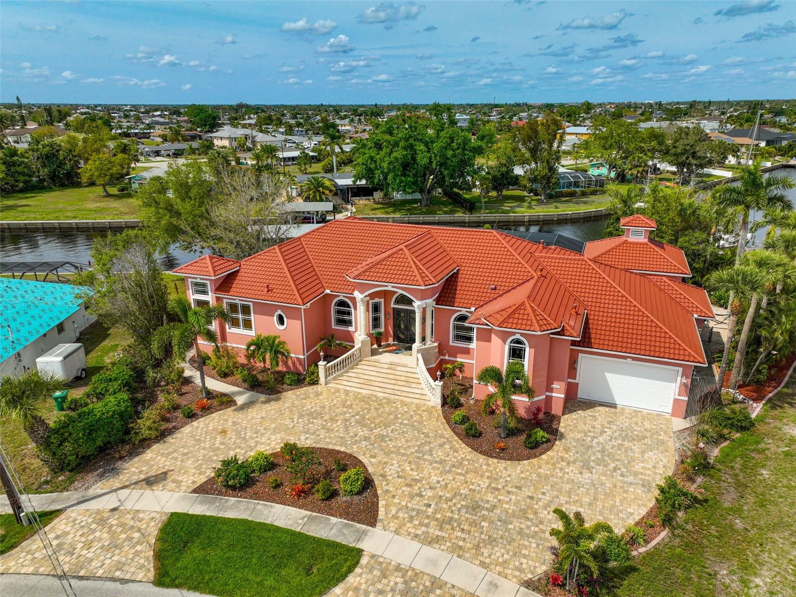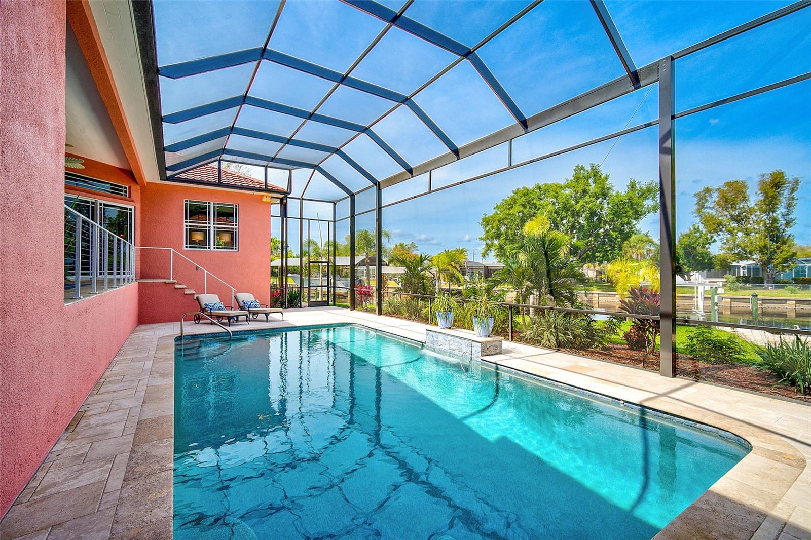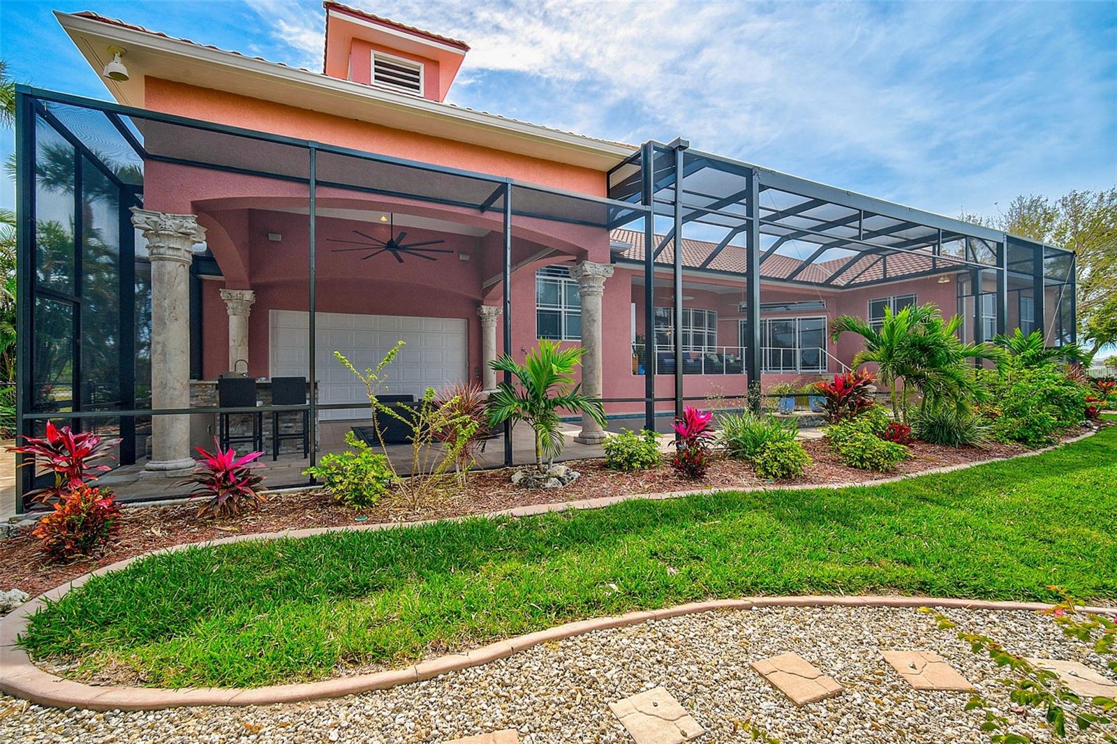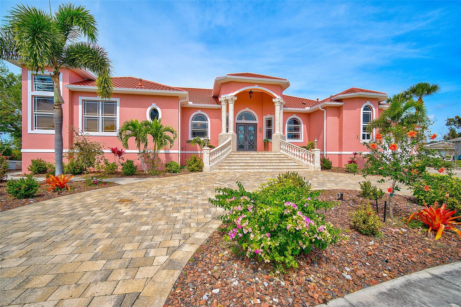 Are you looking for a waterfront home with sailboat water that is high and dry? Look no further! This beautiful home is what you're looking for: no flood damage here! Enjoy breathtaking water views from your massive screened lanai. With 1,961 sf of outdoor space, a custom-built outdoor kitchen, and an oversized saltwater pool entertaining is a joy. This meticulously crafted custom-designed waterfront home is designed for the buyer that appreciates luxury, convenience, and quick access to Charlotte Harbor (only 650' away without any bridges) and out to the ICW and Gulf of Mexico. The home offers two docks and two lift slips with water and electricity, as well as two floating jet ski ports. Imagine casting off for a day of fishing, cruising to multiple waterfront restaurants, islands and resorts, dolphin and wildlife spotting, or simply soaking up the sun at your private pool and dock. Step inside the grand residence and be greeted by an open floor plan, soaring 12-foot ceilings, and an abundance of natural light that showcases the captivating water views. High-end finishes abound, from the exquisite tile and travertine flooring to the natural stone countertops and solid wood doors. Prepare gourmet meals in the chef's kitchen, featuring new appliances, including a top-of-the-line Wolf gas range. Unwind in the luxurious primary suite, complete with a spa-like bathroom and a professionally designed closet system. The home has a new metal roof (2023) far exceeding Florida's hurricane standards, solid block construction with hurricane impact windows and doors for ultimate peace of mind, and a cooled/heated four-car garage with premium flooring. Recent renovations ensure the utmost comfort and convenience, with two newer HVAC systems (2021 & 2022), two tankless hot water heaters (2020 & 2023), a 500-gallon underground propane tank, salt water pool with fountain, large boat slip cover, a water softener, a reverse osmosis water filtration system, professional landscaping with privacy hedges, and top-of-the-line appliances throughout are only some of the many upgrades. Beyond your private retreat, a world of possibilities awaits. Explore the diverse culinary scene at the nearby Sunseeker Resort, Fisherman's Village, or the countless waterfront destinations accessible by boat. Enjoy the convenience of shopping, entertainment, and sporting events, all within easy reach. This extraordinary waterfront estate presents a rare opportunity to own a piece of paradise. If you seek a life of unparalleled luxury, convenience, and connection to the magic of the Florida coast, look no further.