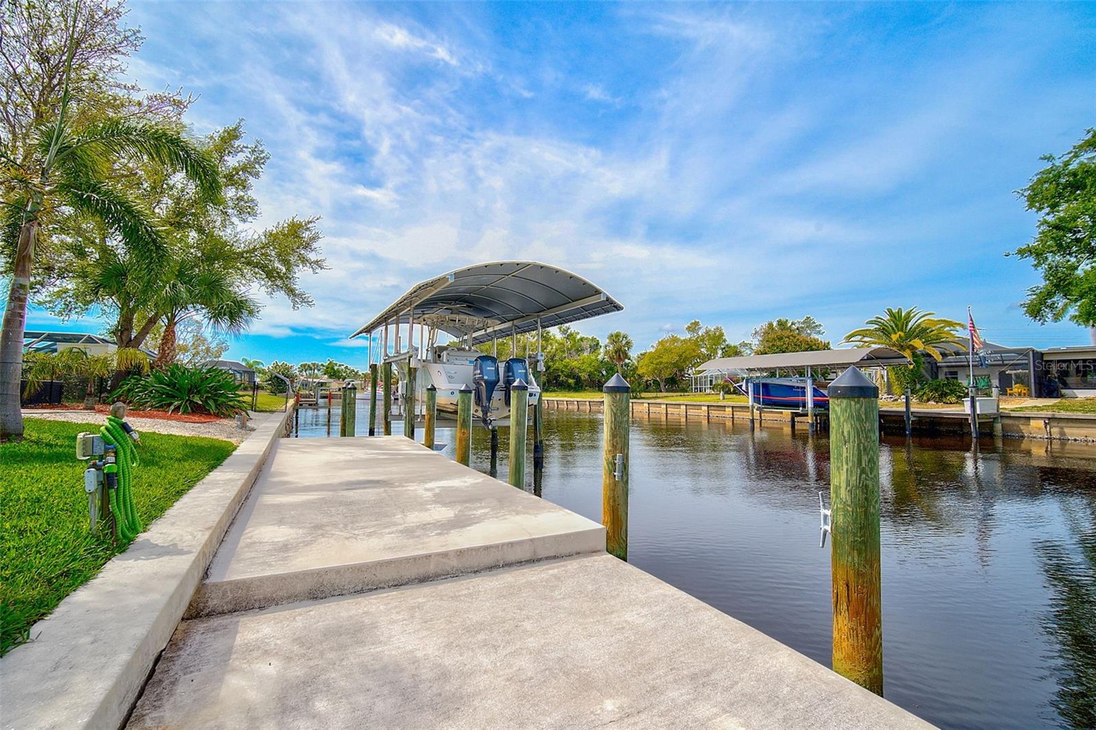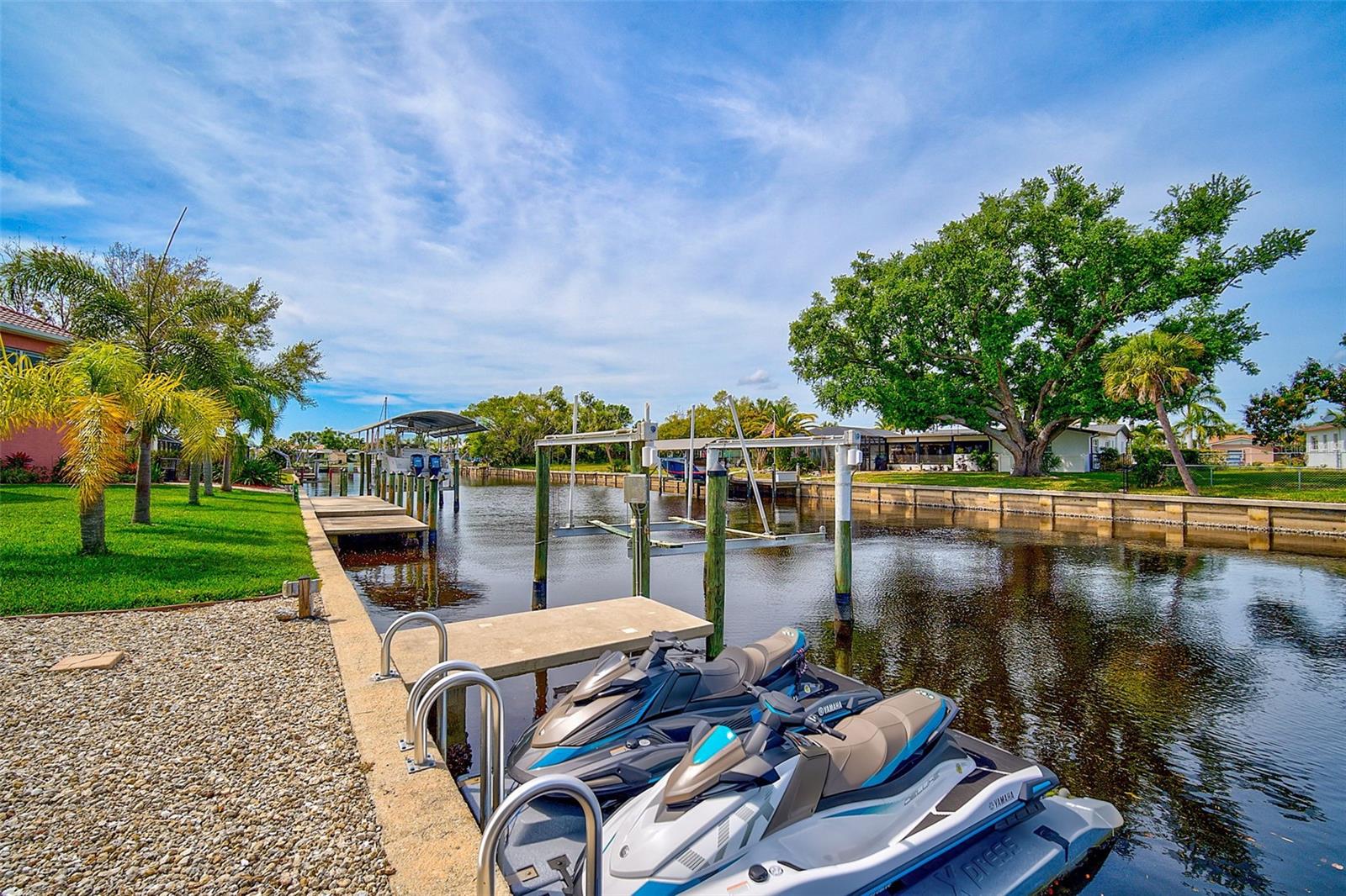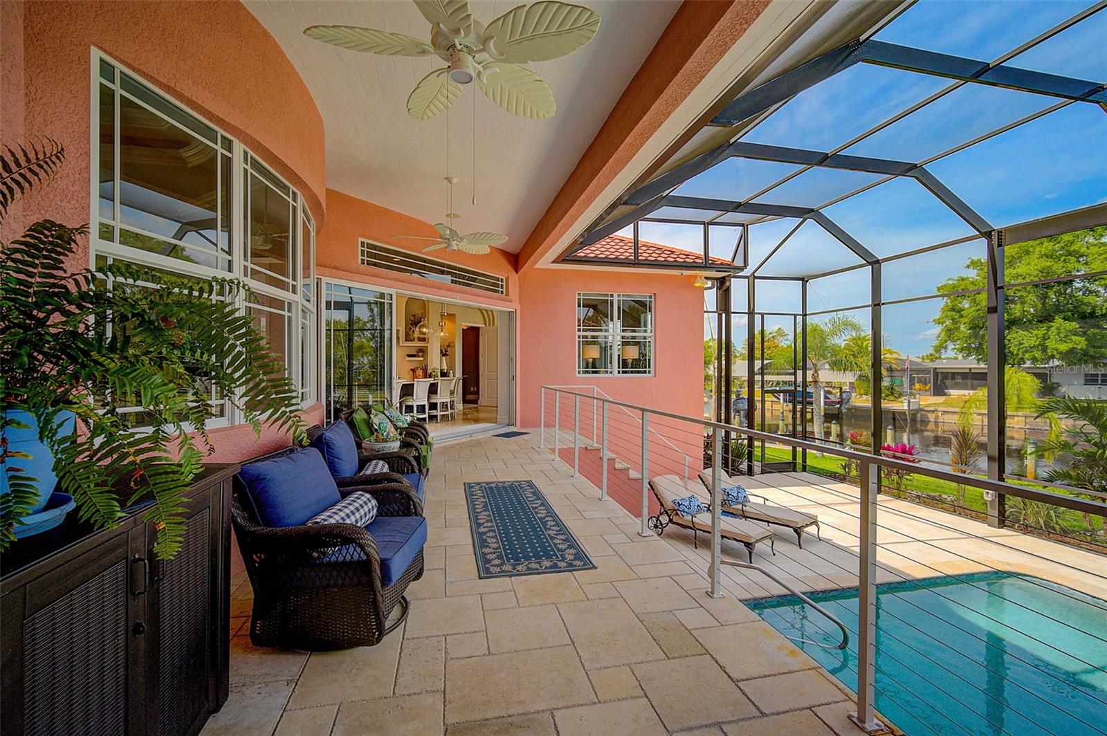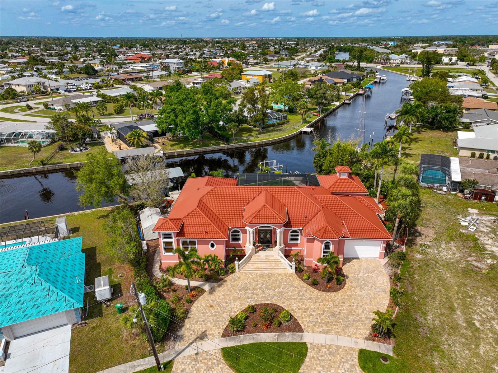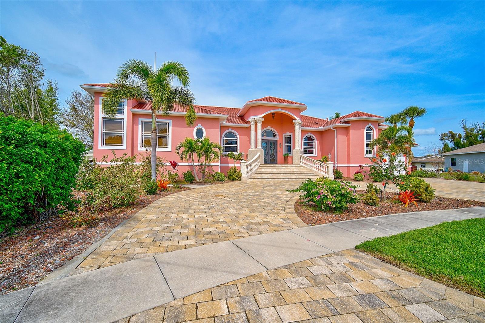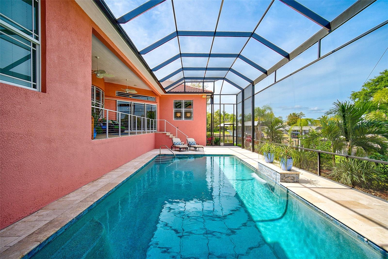 Are you looking for a waterfront home with sailboat water that is high and dry? Look no further! This beautiful home is what you're looking for: no flood damage here! Enjoy breathtaking water views from your massive screened lanai. With 1,961 sf of outdoor space, a custom-built outdoor kitchen, and an oversized saltwater pool entertaining is a joy. This meticulously crafted custom-designed waterfront home is designed for the buyer that appreciates luxury, convenience, and quick access to Charlotte Harbor (only 650' away without any bridges) and out to the ICW and Gulf of Mexico. The home offers two docks and two lift slips with water and electricity, as well as two floating jet ski ports. Imagine casting off for a day of fishing, cruising to multiple waterfront restaurants, islands and resorts, dolphin and wildlife spotting, or simply soaking up the sun at your private pool and dock. Step inside the grand residence and be greeted by an open floor plan, soaring 12-foot ceilings, and an abundance of natural light that showcases the captivating water views. High-end finishes abound, from the exquisite tile and travertine flooring to the natural stone countertops and solid wood doors. Prepare gourmet meals in the chef's kitchen, featuring new appliances, including a top-of-the-line Wolf gas range. Unwind in the luxurious primary suite, complete with a spa-like bathroom and a professionally designed closet system. The home has a new metal roof (2023) far exceeding Florida's hurricane standards, solid block construction with hurricane impact windows and doors for ultimate peace of mind, and a cooled/heated four-car garage with premium flooring. Recent renovations ensure the utmost comfort and convenience, with two newer HVAC systems (2021 & 2022), two tankless hot water heaters (2020 & 2023), a 500-gallon underground propane tank, salt water pool with fountain, large boat slip cover, a water softener, a reverse osmosis water filtration system, professional landscaping with privacy hedges, and top-of-the-line appliances throughout are only some of the many upgrades. Beyond your private retreat, a world of possibilities awaits. Explore the diverse culinary scene at the nearby Sunseeker Resort, Fisherman's Village, or the countless waterfront destinations accessible by boat. Enjoy the convenience of shopping, entertainment, and sporting events, all within easy reach. This extraordinary waterfront estate presents a rare opportunity to own a piece of paradise. If you seek a life of unparalleled luxury, convenience, and connection to the magic of the Florida coast, look no further.