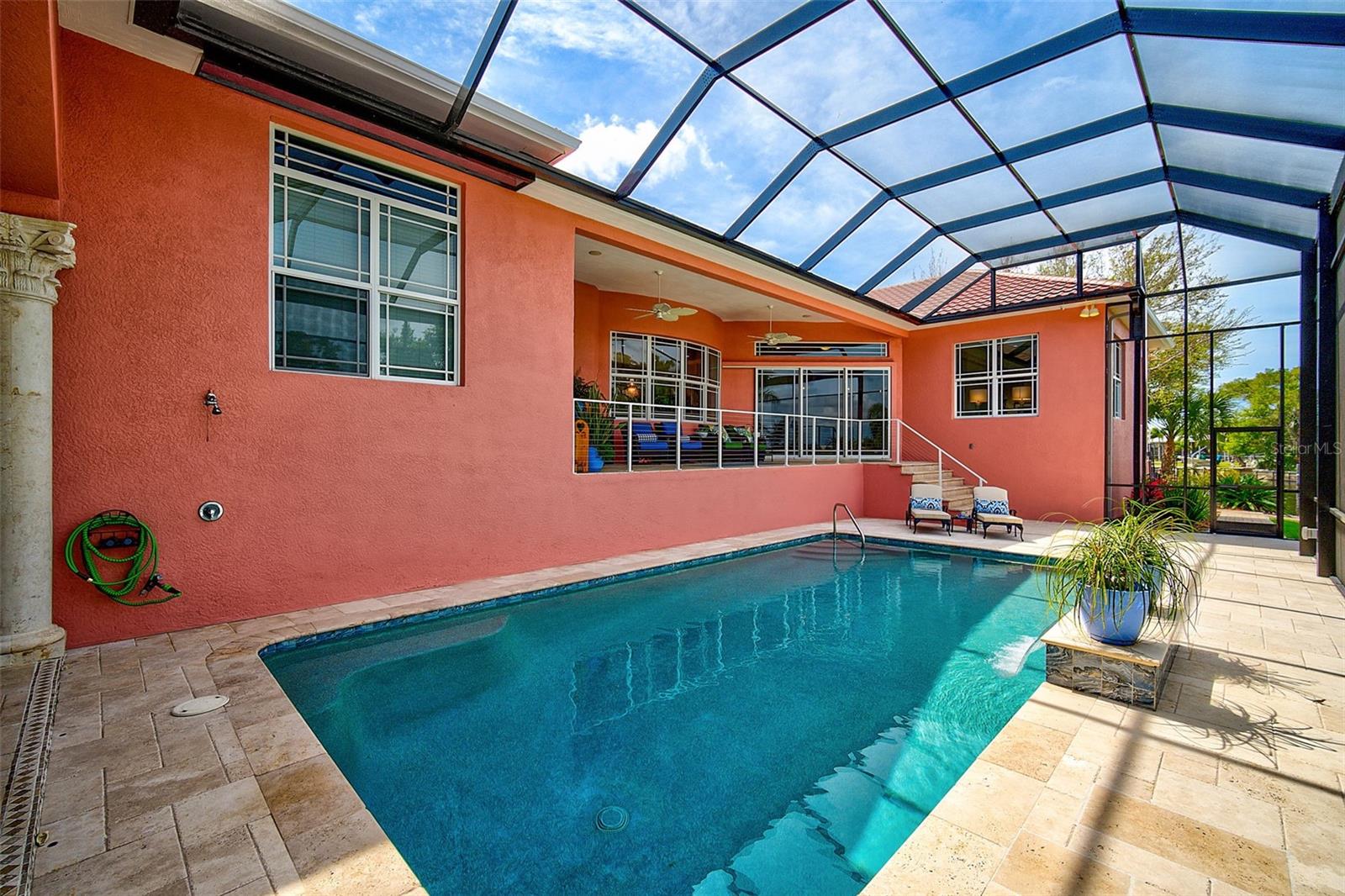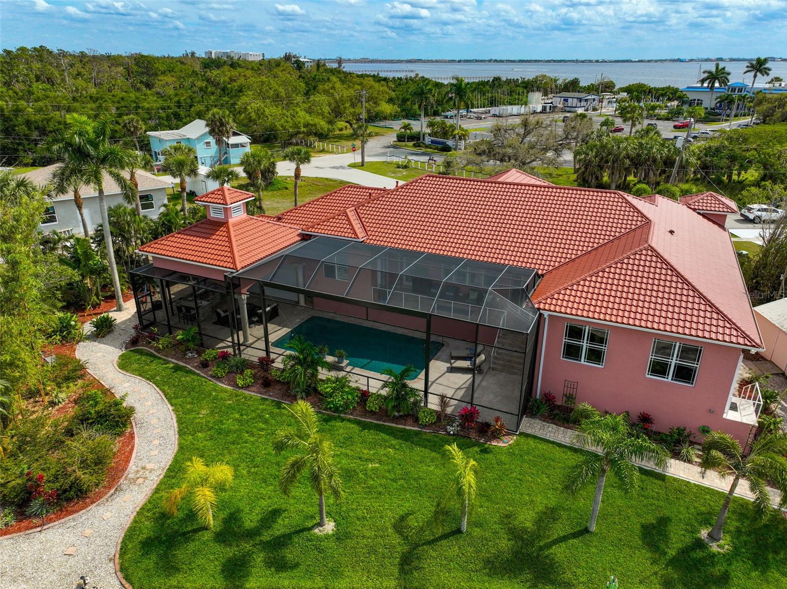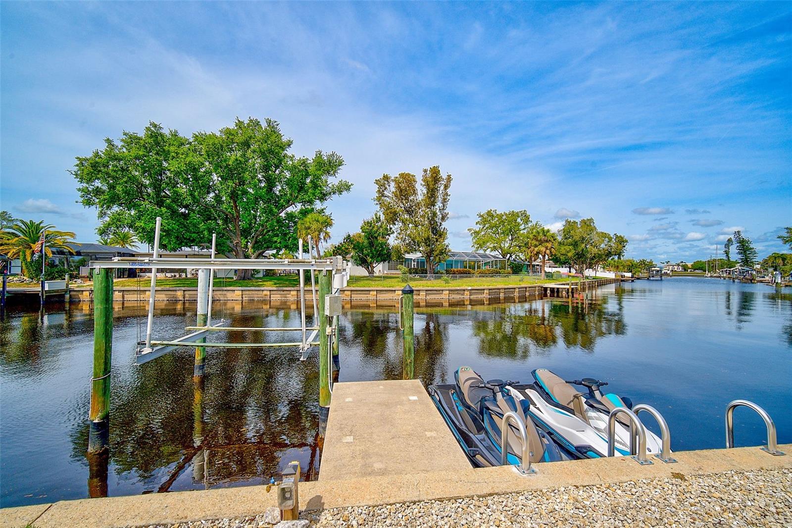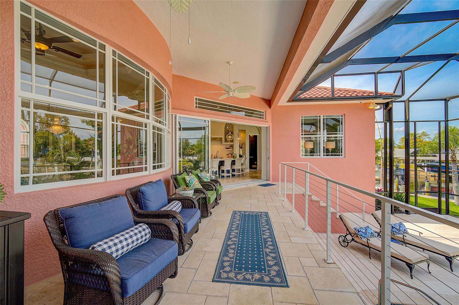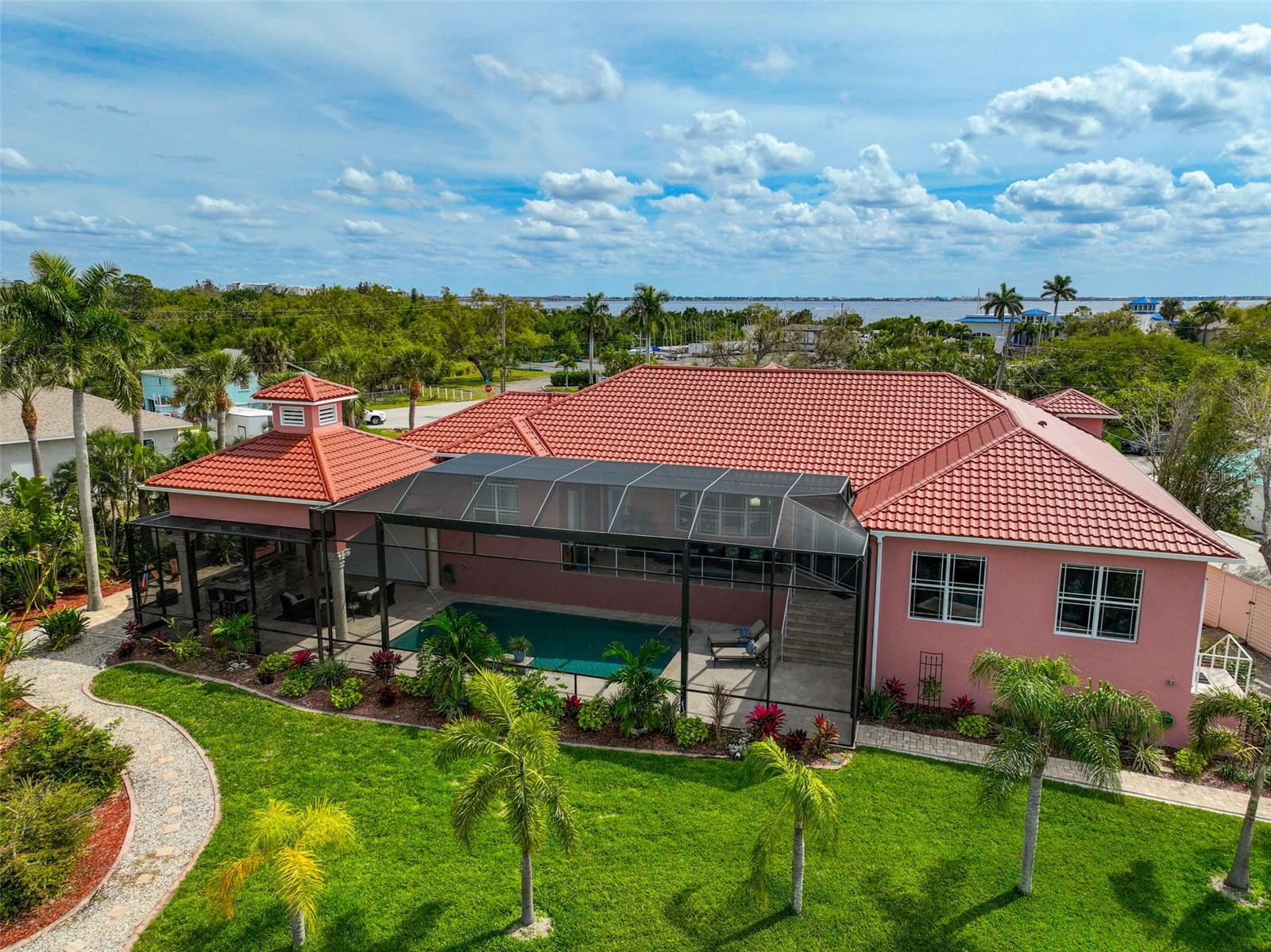 Are you looking for a waterfront home with sailboat water that is high and dry? Look no further! This beautiful home is what you're looking for: no flood damage here! Enjoy breathtaking water views from your massive screened lanai. With 1,961 sf of outdoor space, a custom-built outdoor kitchen, and an oversized saltwater pool entertaining is a joy. This meticulously crafted custom-designed waterfront home is designed for the buyer that appreciates luxury, convenience, and quick access to Charlotte Harbor (only 650' away without any bridges) and out to the ICW and Gulf of Mexico. The home offers two docks and two lift slips with water and electricity, as well as two floating jet ski ports. Imagine casting off for a day of fishing, cruising to multiple waterfront restaurants, islands and resorts, dolphin and wildlife spotting, or simply soaking up the sun at your private pool and dock. Step inside the grand residence and be greeted by an open floor plan, soaring 12-foot ceilings, and an abundance of natural light that showcases the captivating water views. High-end finishes abound, from the exquisite tile and travertine flooring to the natural stone countertops and solid wood doors. Prepare gourmet meals in the chef's kitchen, featuring new appliances, including a top-of-the-line Wolf gas range. Unwind in the luxurious primary suite, complete with a spa-like bathroom and a professionally designed closet system. The home has a new metal roof (2023) far exceeding Florida's hurricane standards, solid block construction with hurricane impact windows and doors for ultimate peace of mind, and a cooled/heated four-car garage with premium flooring. Recent renovations ensure the utmost comfort and convenience, with two newer HVAC systems (2021 & 2022), two tankless hot water heaters (2020 & 2023), a 500-gallon underground propane tank, salt water pool with fountain, large boat slip cover, a water softener, a reverse osmosis water filtration system, professional landscaping with privacy hedges, and top-of-the-line appliances throughout are only some of the many upgrades. Beyond your private retreat, a world of possibilities awaits. Explore the diverse culinary scene at the nearby Sunseeker Resort, Fisherman's Village, or the countless waterfront destinations accessible by boat. Enjoy the convenience of shopping, entertainment, and sporting events, all within easy reach. This extraordinary waterfront estate presents a rare opportunity to own a piece of paradise. If you seek a life of unparalleled luxury, convenience, and connection to the magic of the Florida coast, look no further.