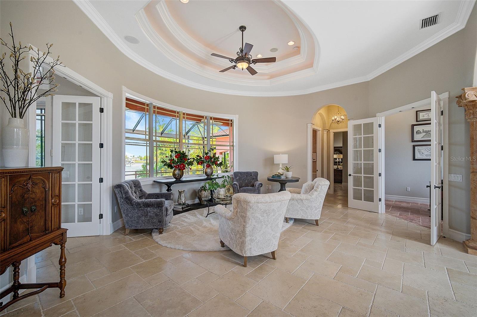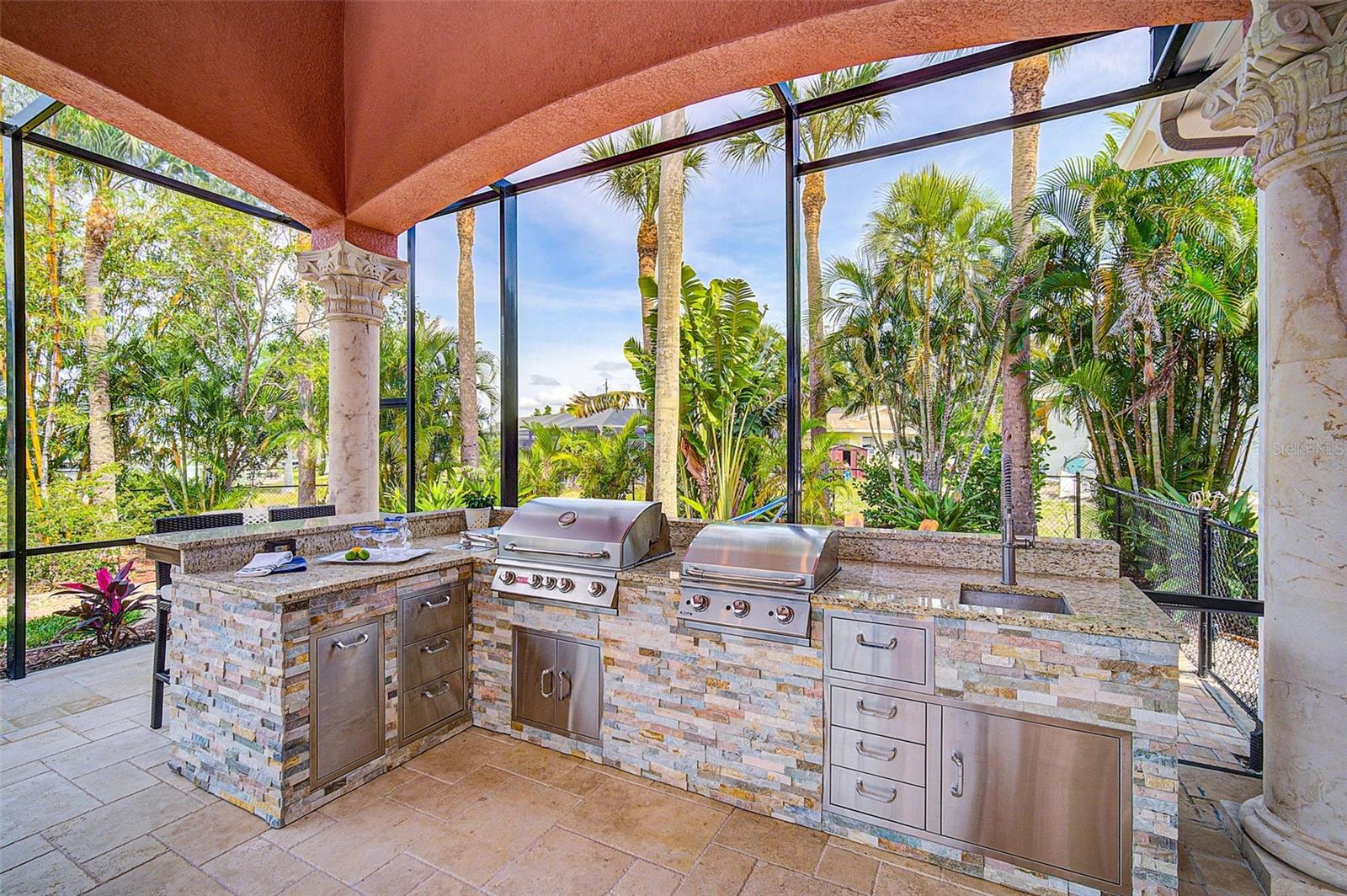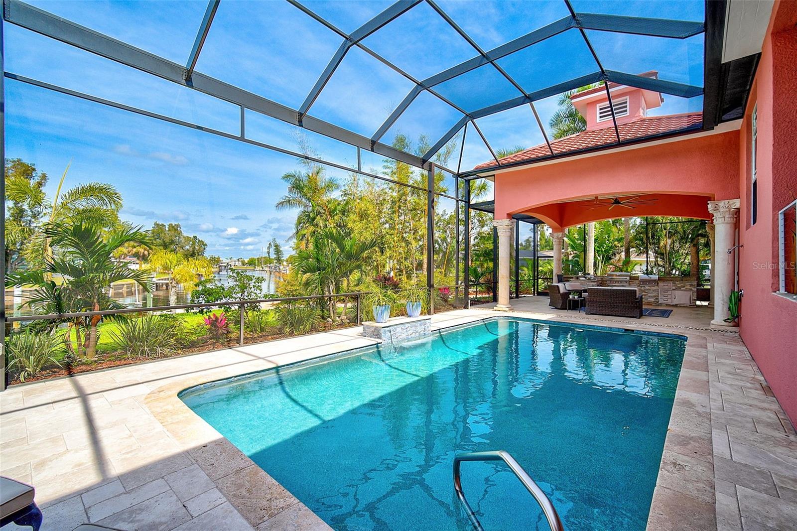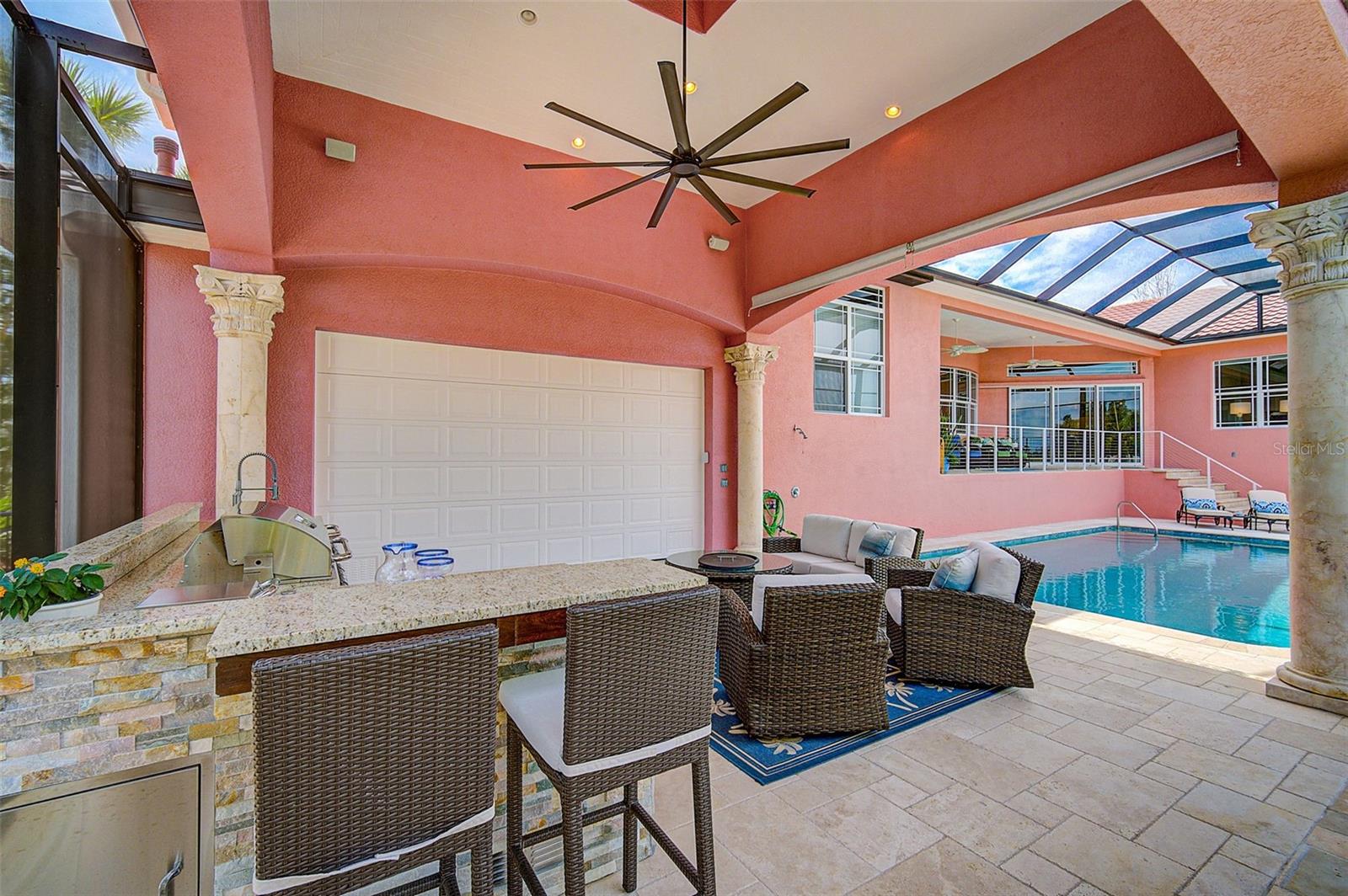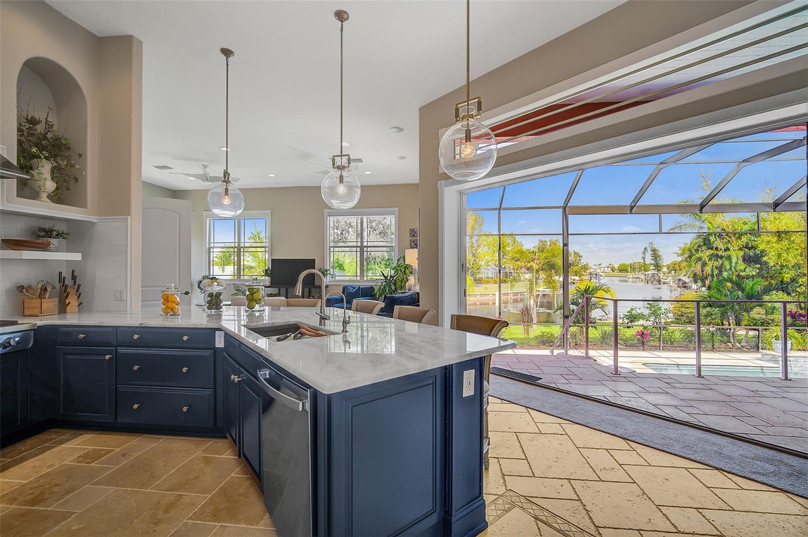 Are you looking for a waterfront home with sailboat water that is high and dry? Look no further! This beautiful home is what you're looking for: no flood damage here! Enjoy breathtaking water views from your massive screened lanai. With 1,961 sf of outdoor space, a custom-built outdoor kitchen, and an oversized saltwater pool entertaining is a joy. This meticulously crafted custom-designed waterfront home is designed for the buyer that appreciates luxury, convenience, and quick access to Charlotte Harbor (only 650' away without any bridges) and out to the ICW and Gulf of Mexico. The home offers two docks and two lift slips with water and electricity, as well as two floating jet ski ports. Imagine casting off for a day of fishing, cruising to multiple waterfront restaurants, islands and resorts, dolphin and wildlife spotting, or simply soaking up the sun at your private pool and dock. Step inside the grand residence and be greeted by an open floor plan, soaring 12-foot ceilings, and an abundance of natural light that showcases the captivating water views. High-end finishes abound, from the exquisite tile and travertine flooring to the natural stone countertops and solid wood doors. Prepare gourmet meals in the chef's kitchen, featuring new appliances, including a top-of-the-line Wolf gas range. Unwind in the luxurious primary suite, complete with a spa-like bathroom and a professionally designed closet system. The home has a new metal roof (2023) far exceeding Florida's hurricane standards, solid block construction with hurricane impact windows and doors for ultimate peace of mind, and a cooled/heated four-car garage with premium flooring. Recent renovations ensure the utmost comfort and convenience, with two newer HVAC systems (2021 & 2022), two tankless hot water heaters (2020 & 2023), a 500-gallon underground propane tank, salt water pool with fountain, large boat slip cover, a water softener, a reverse osmosis water filtration system, professional landscaping with privacy hedges, and top-of-the-line appliances throughout are only some of the many upgrades. Beyond your private retreat, a world of possibilities awaits. Explore the diverse culinary scene at the nearby Sunseeker Resort, Fisherman's Village, or the countless waterfront destinations accessible by boat. Enjoy the convenience of shopping, entertainment, and sporting events, all within easy reach. This extraordinary waterfront estate presents a rare opportunity to own a piece of paradise. If you seek a life of unparalleled luxury, convenience, and connection to the magic of the Florida coast, look no further.