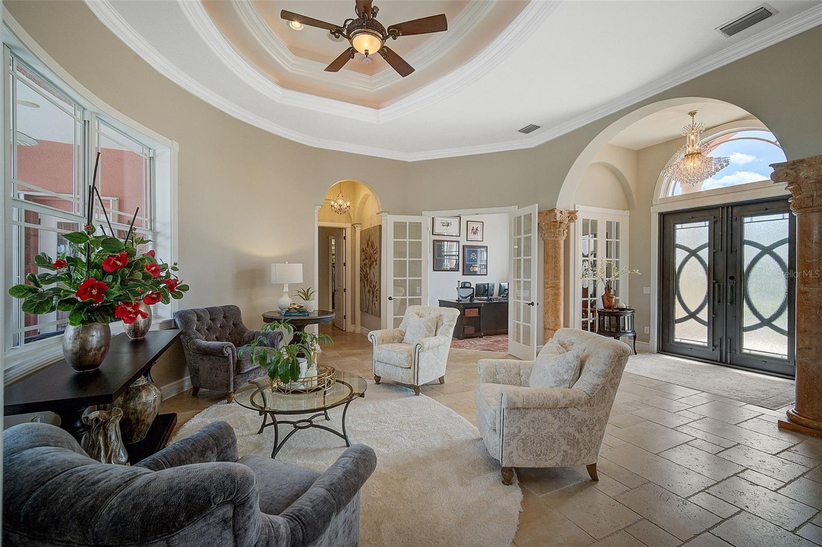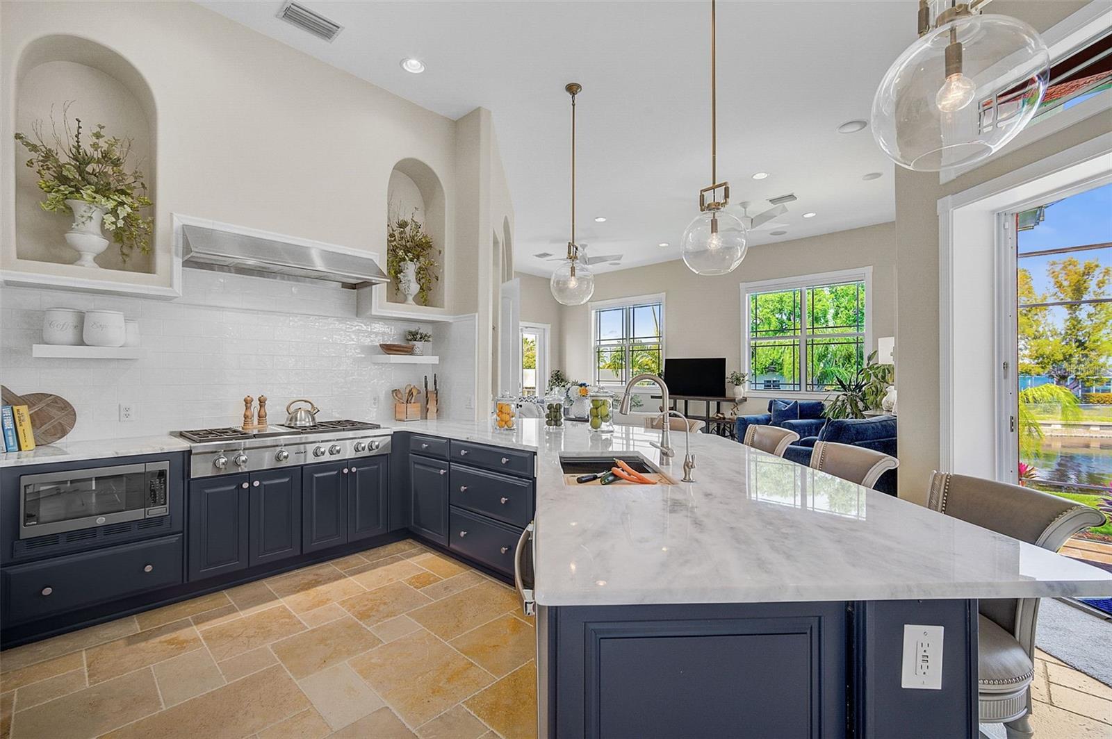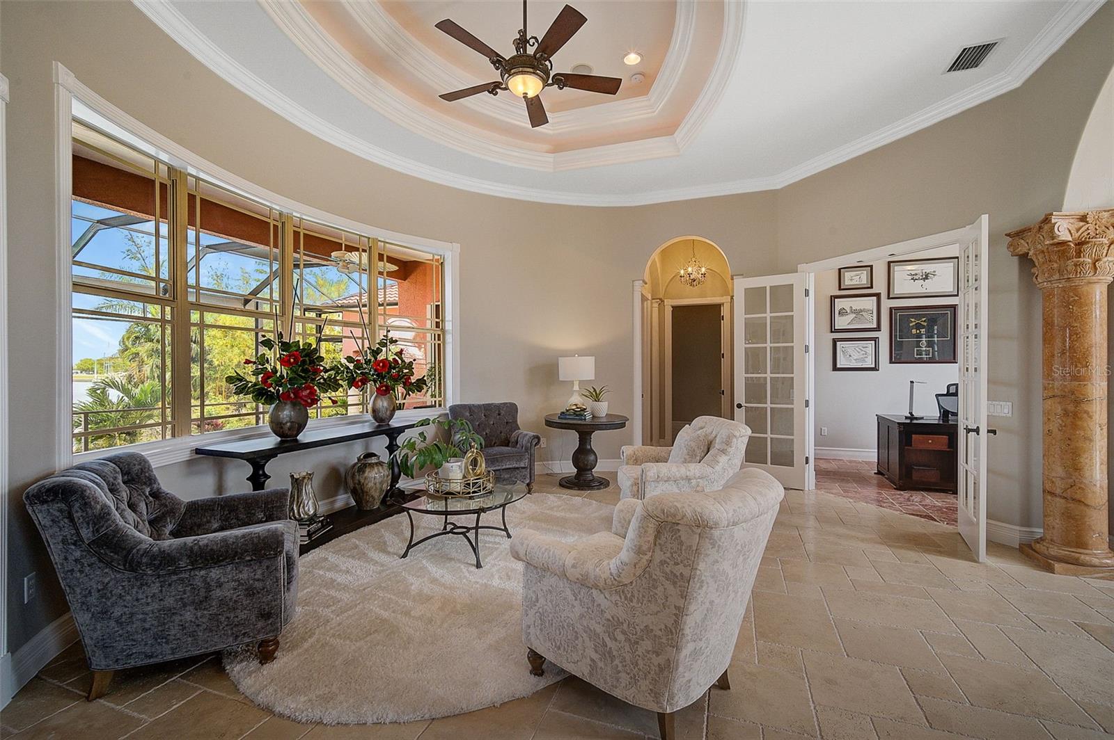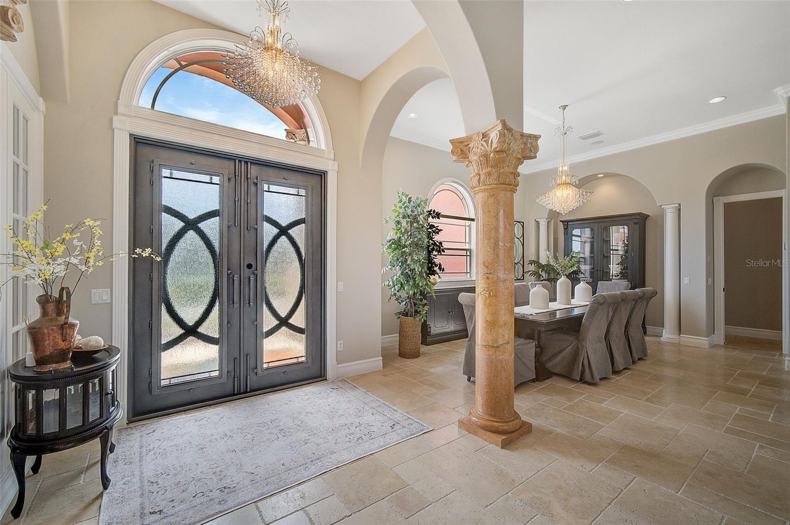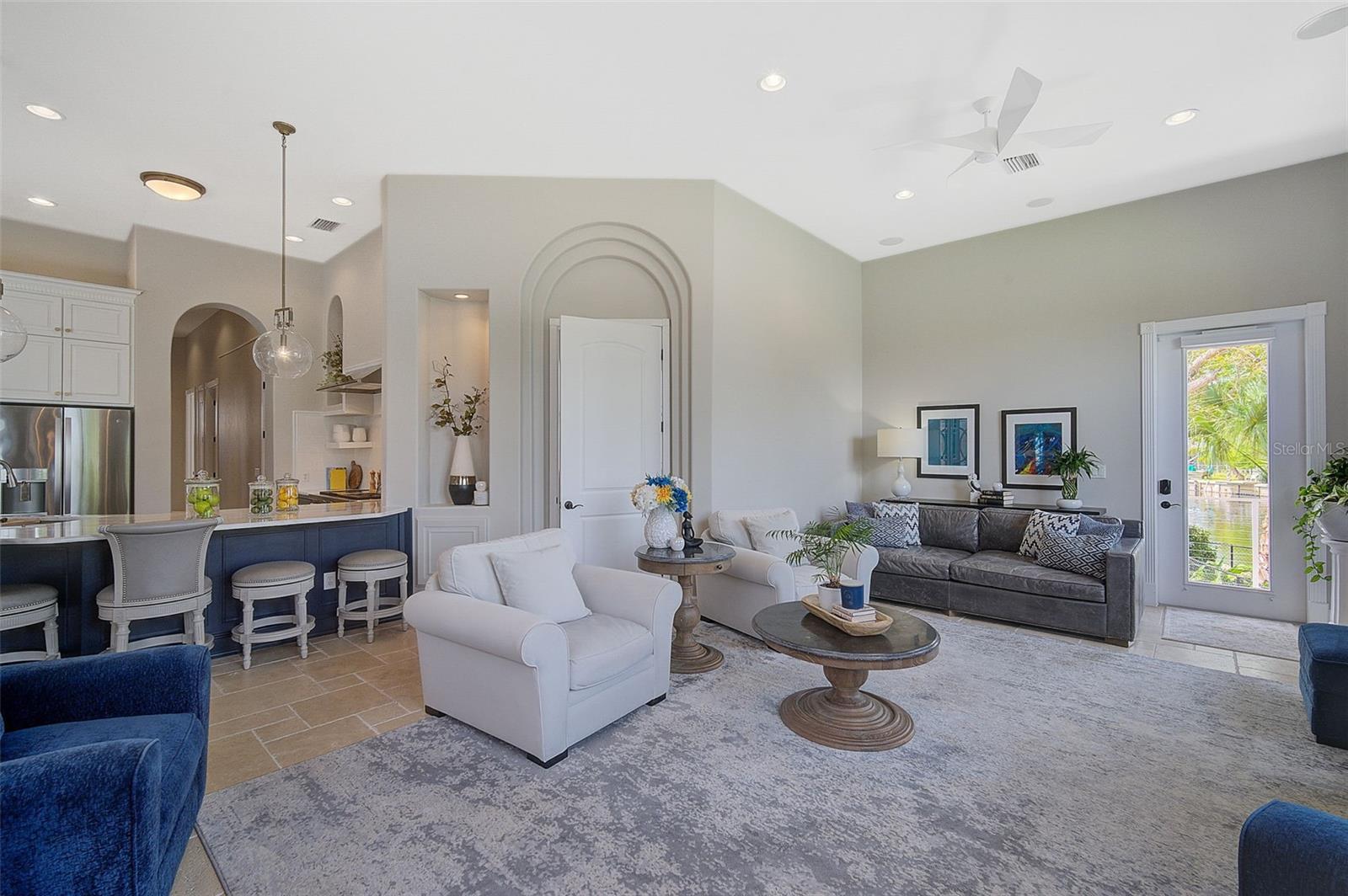 Are you looking for a waterfront home with sailboat water that is high and dry? Look no further! This beautiful home is what you're looking for: no flood damage here! Enjoy breathtaking water views from your massive screened lanai. With 1,961 sf of outdoor space, a custom-built outdoor kitchen, and an oversized saltwater pool entertaining is a joy. This meticulously crafted custom-designed waterfront home is designed for the buyer that appreciates luxury, convenience, and quick access to Charlotte Harbor (only 650' away without any bridges) and out to the ICW and Gulf of Mexico. The home offers two docks and two lift slips with water and electricity, as well as two floating jet ski ports. Imagine casting off for a day of fishing, cruising to multiple waterfront restaurants, islands and resorts, dolphin and wildlife spotting, or simply soaking up the sun at your private pool and dock. Step inside the grand residence and be greeted by an open floor plan, soaring 12-foot ceilings, and an abundance of natural light that showcases the captivating water views. High-end finishes abound, from the exquisite tile and travertine flooring to the natural stone countertops and solid wood doors. Prepare gourmet meals in the chef's kitchen, featuring new appliances, including a top-of-the-line Wolf gas range. Unwind in the luxurious primary suite, complete with a spa-like bathroom and a professionally designed closet system. The home has a new metal roof (2023) far exceeding Florida's hurricane standards, solid block construction with hurricane impact windows and doors for ultimate peace of mind, and a cooled/heated four-car garage with premium flooring. Recent renovations ensure the utmost comfort and convenience, with two newer HVAC systems (2021 & 2022), two tankless hot water heaters (2020 & 2023), a 500-gallon underground propane tank, salt water pool with fountain, large boat slip cover, a water softener, a reverse osmosis water filtration system, professional landscaping with privacy hedges, and top-of-the-line appliances throughout are only some of the many upgrades. Beyond your private retreat, a world of possibilities awaits. Explore the diverse culinary scene at the nearby Sunseeker Resort, Fisherman's Village, or the countless waterfront destinations accessible by boat. Enjoy the convenience of shopping, entertainment, and sporting events, all within easy reach. This extraordinary waterfront estate presents a rare opportunity to own a piece of paradise. If you seek a life of unparalleled luxury, convenience, and connection to the magic of the Florida coast, look no further.