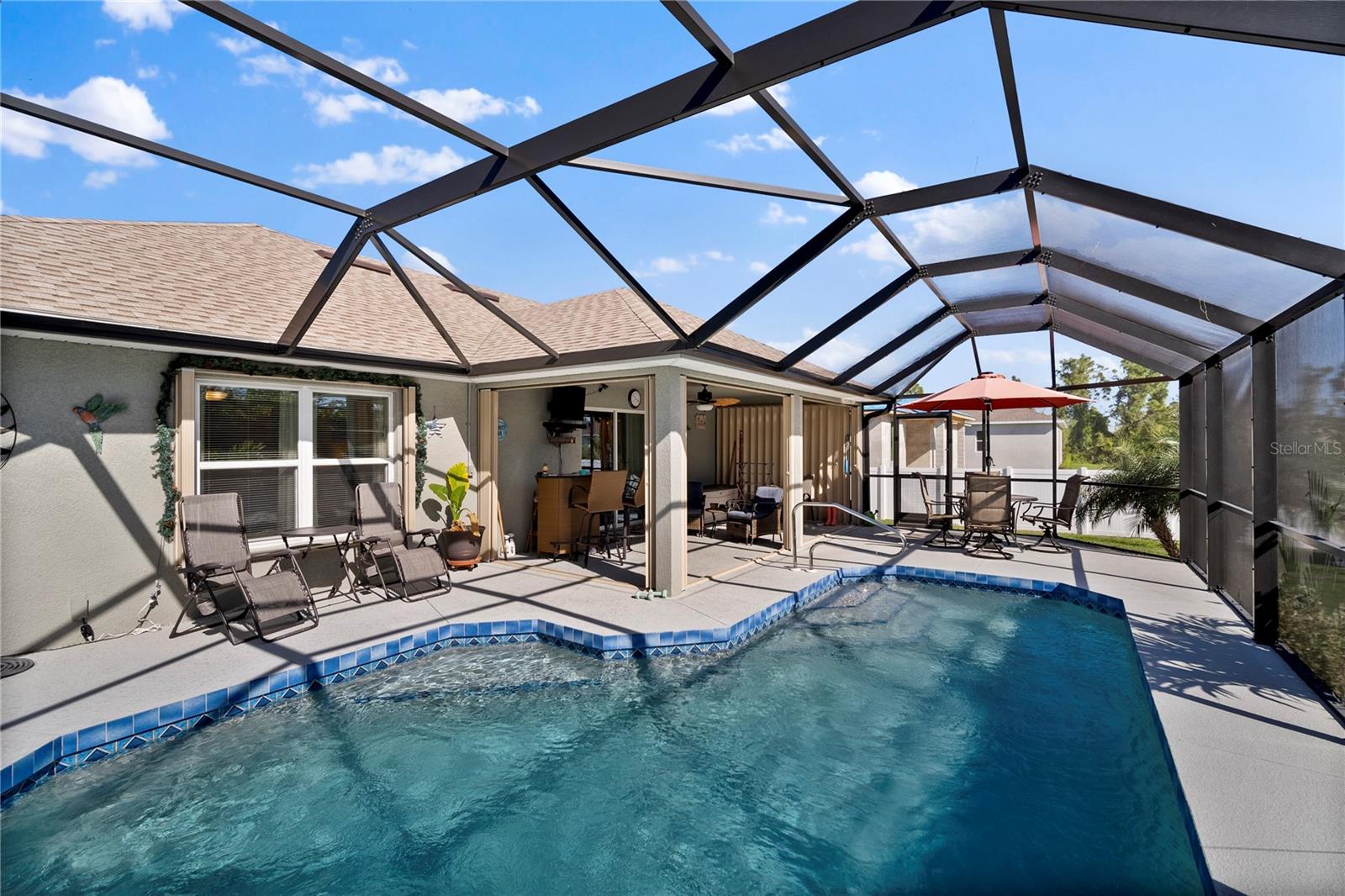 Welcome to 8499 Topeka Circle, your perfect oasis nestled just moments away from the pristine beaches of Boca Grande and Englewood! This delightful single-story residence boasts 3 bedrooms, 2 bathrooms featuring a desirable open floorplan and a sparkling pool. As you step inside, you'll be greeted by a bright and airy living space that seamlessly connects the living room, dining area, and kitchen. This open layout is perfect for both relaxed living and entertaining guests, providing a warm and inviting atmosphere for gatherings. The well-appointed kitchen features modern appliances, ample counter space, and plenty of storage, making meal preparation a joy. The master bedroom offers a peaceful retreat with its own ensuite bathroom, while two additional bedrooms provide versatility for guests, a home office, or hobbies. Step outside to your own private backyard paradise, where you'll find a sparkling pool covered lanai. Whether you're lounging poolside or hosting a barbecue with friends, this outdoor space is sure to be a favorite gathering spot. Conveniently situated close to Ray's Stadium, marinas, shopping centers, and restaurants, this home offers the perfect blend of convenience and tranquility. Don't miss out on the opportunity to make this house your new home sweet home! Schedule your showing today and experience the best of coastal living in this charming abode.