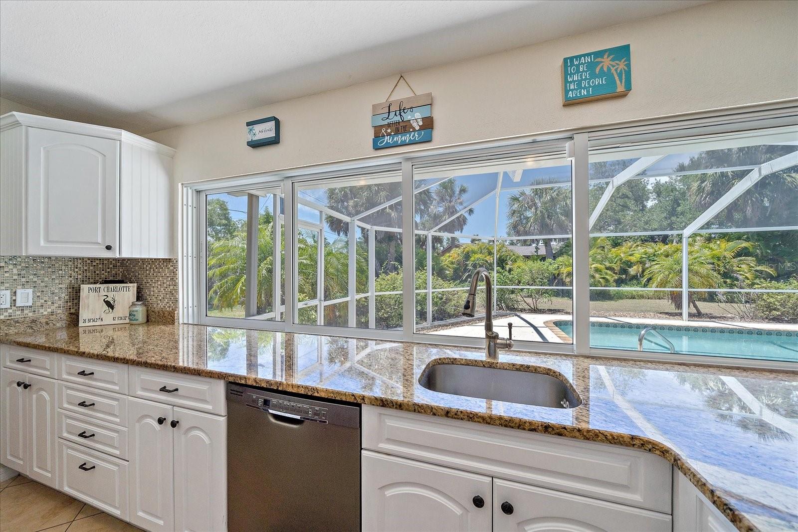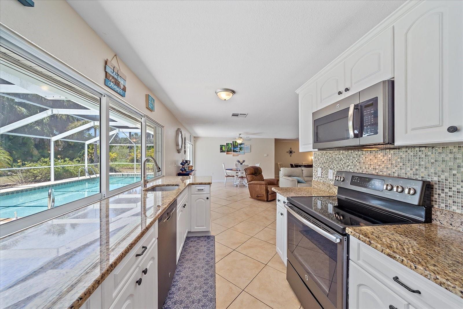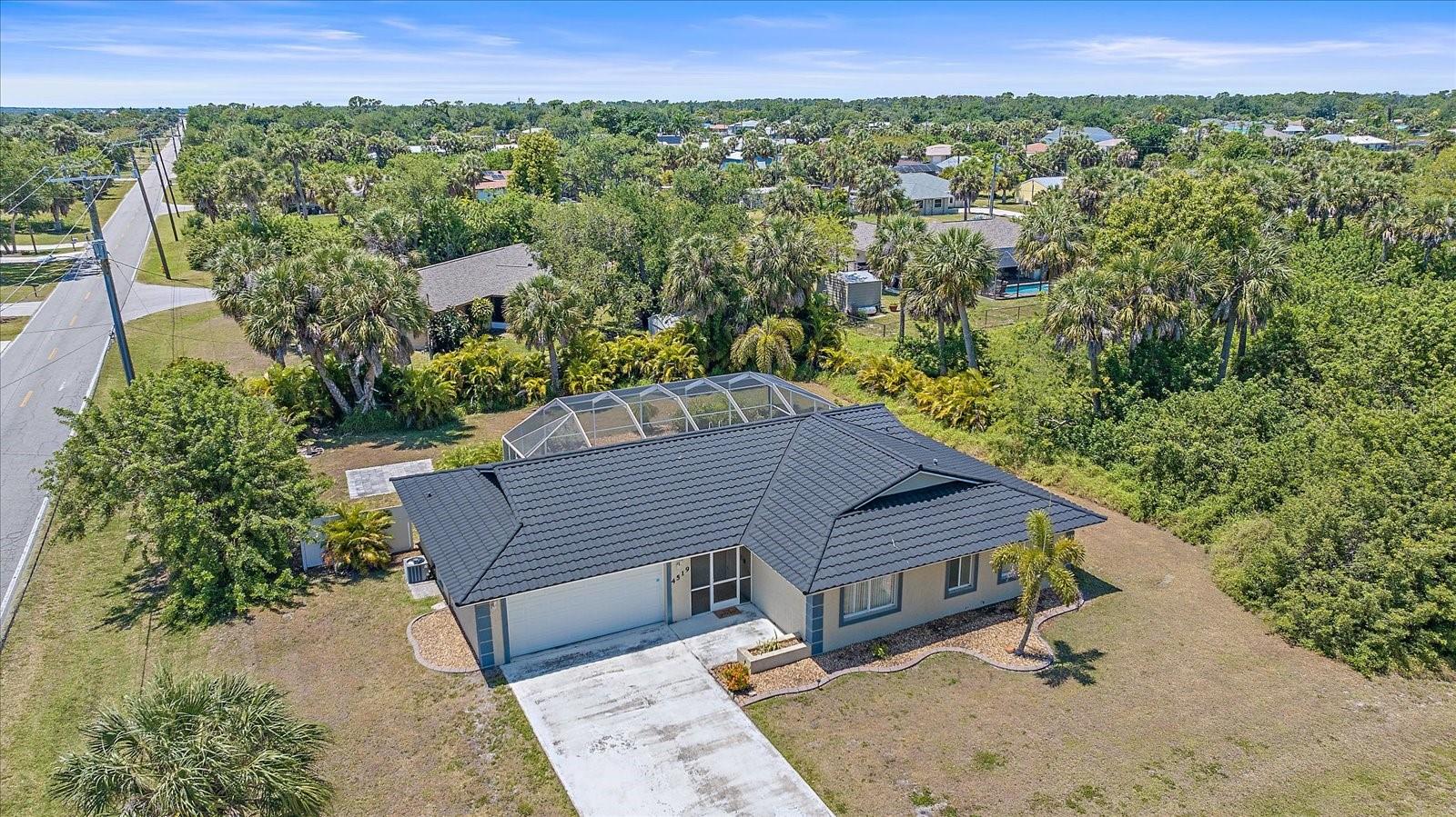 Looking for the perfect Florida home ? This updated 3 bedroom, 2.5 bathroom POOL home situated on .31 acres in one of the best parts of Port Charlotte could be exactly what you are looking for ! As soon as you walk through the front door you are greeted with a fantastic open floor plan and direct views of the large (30’x12’) and sparkling pool. A no expenses spared NEW $40,000 STONE COATED METAL ROOF was installed in July of 2022 which protected the home wonderfully from Hurricane Ian. Natural sunlight floods the home thanks to the outdoor sliders and kitchen windows. The kitchen has been updated with stylish white cabinets and granite countertops. The laundry room/half bath combo contains a large utility sink and is perfect for someone coming in from working in the 2 car garage. The oversized corner lot is perfectly private and offers ample space for boat or RV parking. Public Water, Public Sewer, and No HOA rounds off some of the other amazing aspects. Schedule your private showing today !