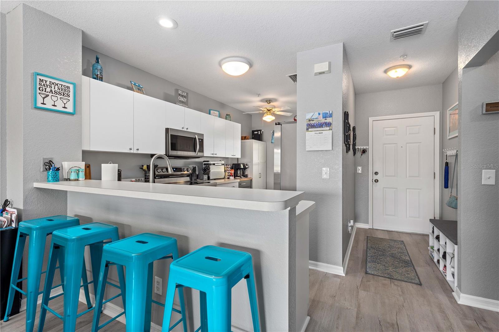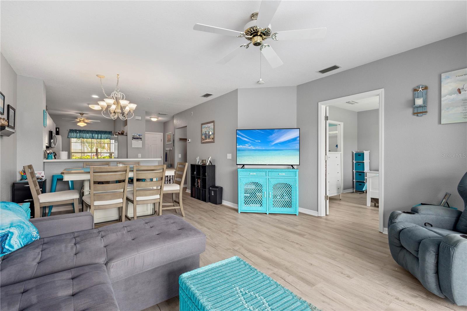 Welcome to this beautifully updated 2-bedroom, 2-bathroom lakefront condo in the highly sought-after, gated community of Heritage Oak Park. Situated on the first floor, this home offers breathtaking views of the tranquil lake and is just steps from the community’s resort-style amenities. Inside, you’ll find a bright and airy open-concept living space with luxury vinyl plank flooring and a freshly painted interior, creating a modern and inviting atmosphere. The kitchen features stainless steel appliances, ample cabinetry, and plenty of counter space—perfect for both cooking and entertaining. The spacious master suite is a true retreat, boasting a walk-in closet and an en-suite bathroom with dual sinks, a tiled floor, and a walk-in shower. Heritage Oak Park offers exceptional financial stability, with strong reserves and a well-managed budget, providing peace of mind to homeowners. Recent building upgrades include a new roof, carports, exterior paint, and updated sprinkler and fire alarm systems, ensuring a low-maintenance, worry-free lifestyle. Enjoy access to a resort-style swimming pool, fitness center, tennis courts, clubhouse, and scenic walking trails around the lake. Conveniently located near shopping, dining, and just under 20 miles from Englewood Beach and the Gulf of Mexico, this condo is perfect for those seeking both relaxation and accessibility. Furnishings may be included with the right offer—move right in and start enjoying the Florida lifestyle! Don’t miss this rare opportunity to own a financially secure, move-in-ready lakefront condo in a vibrant and well-maintained community. Schedule your showing today!