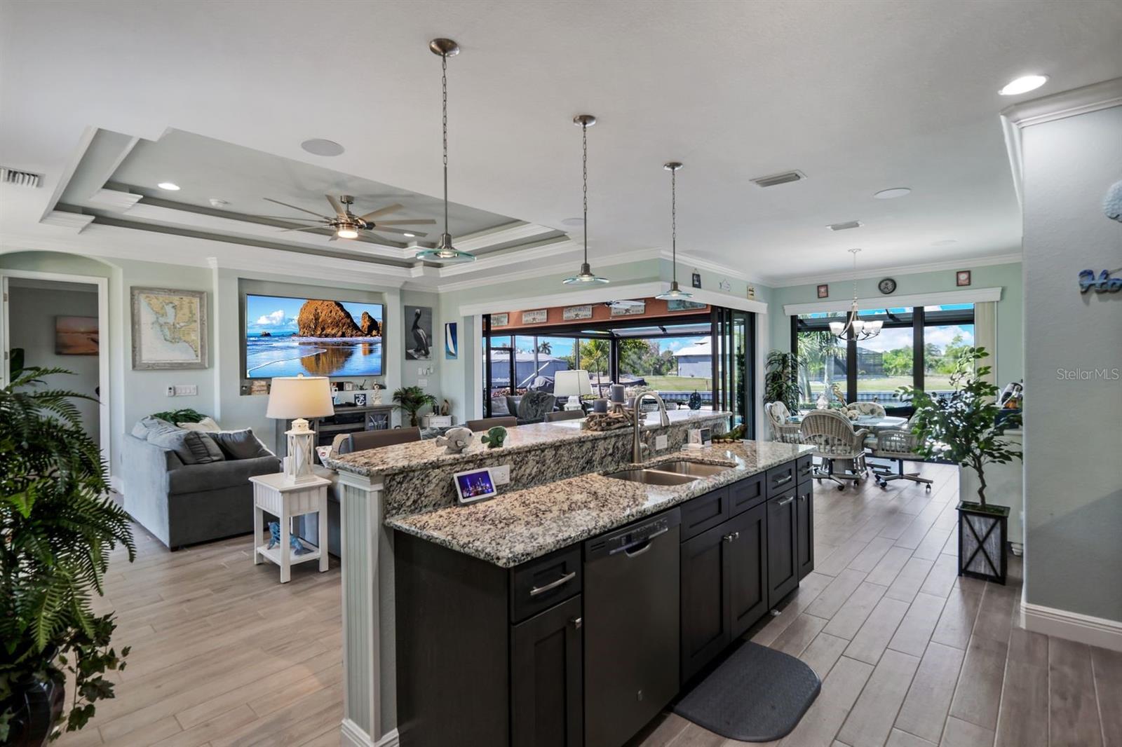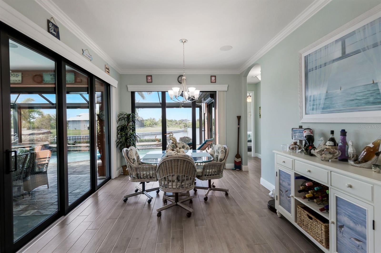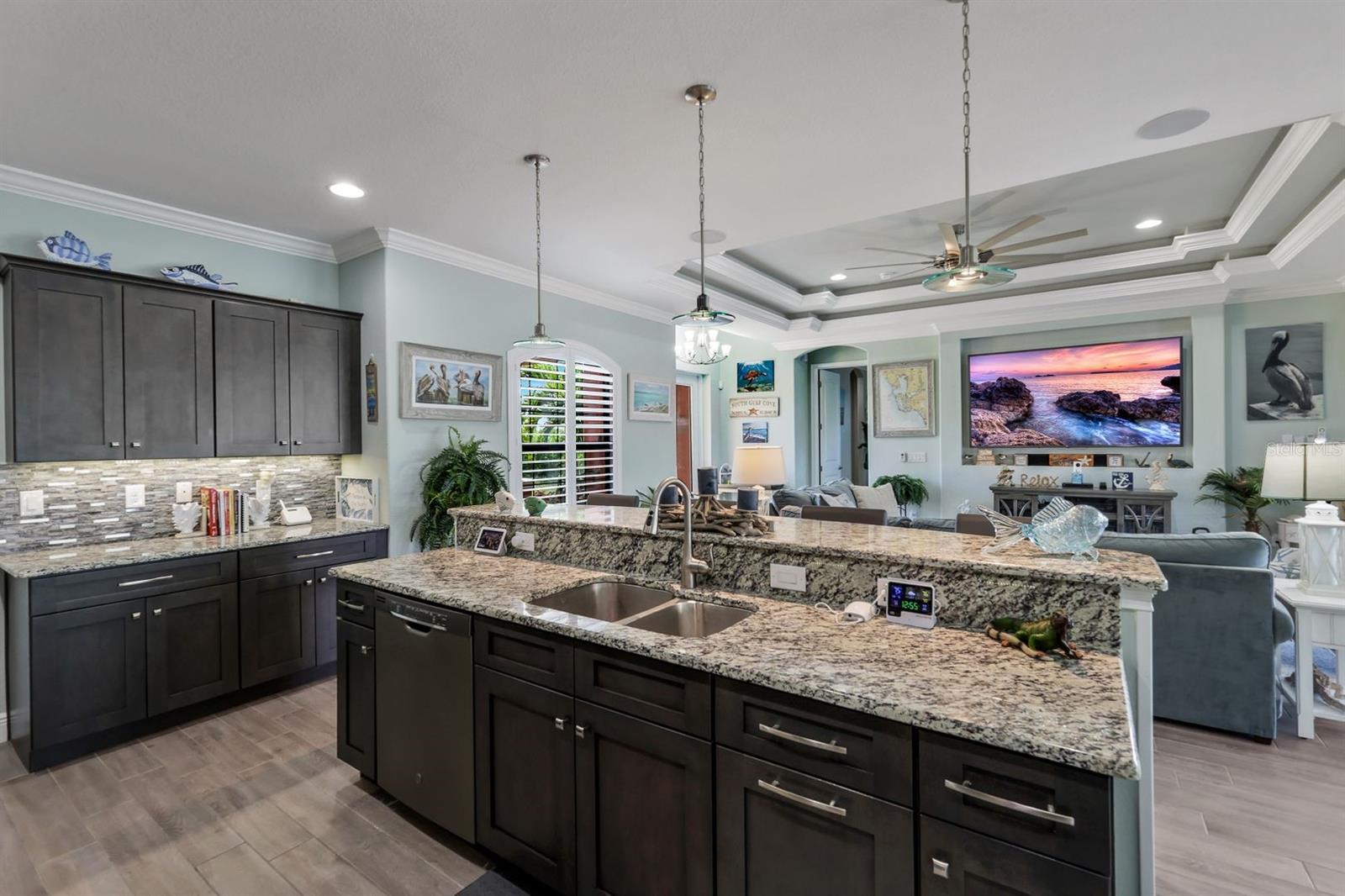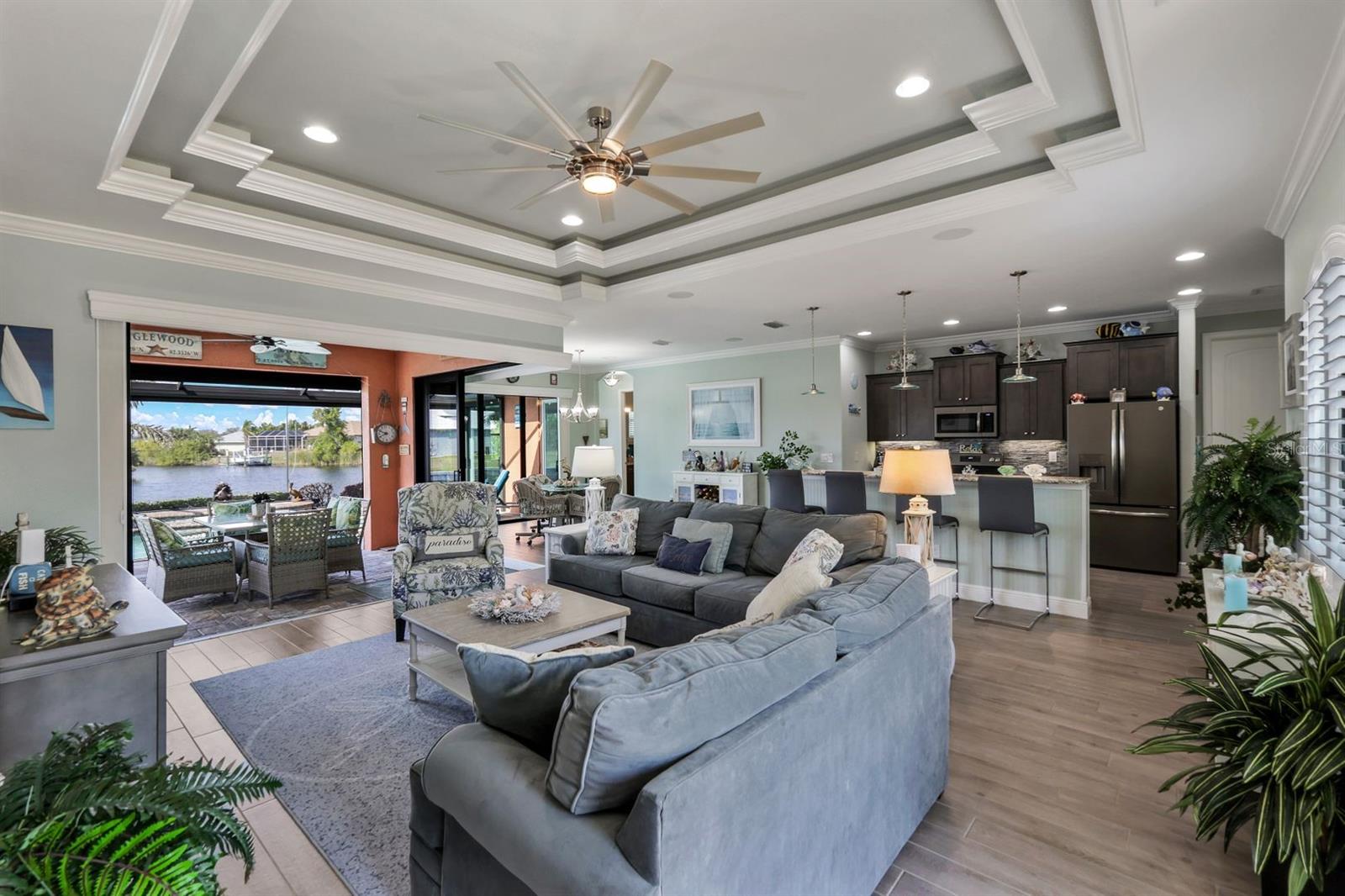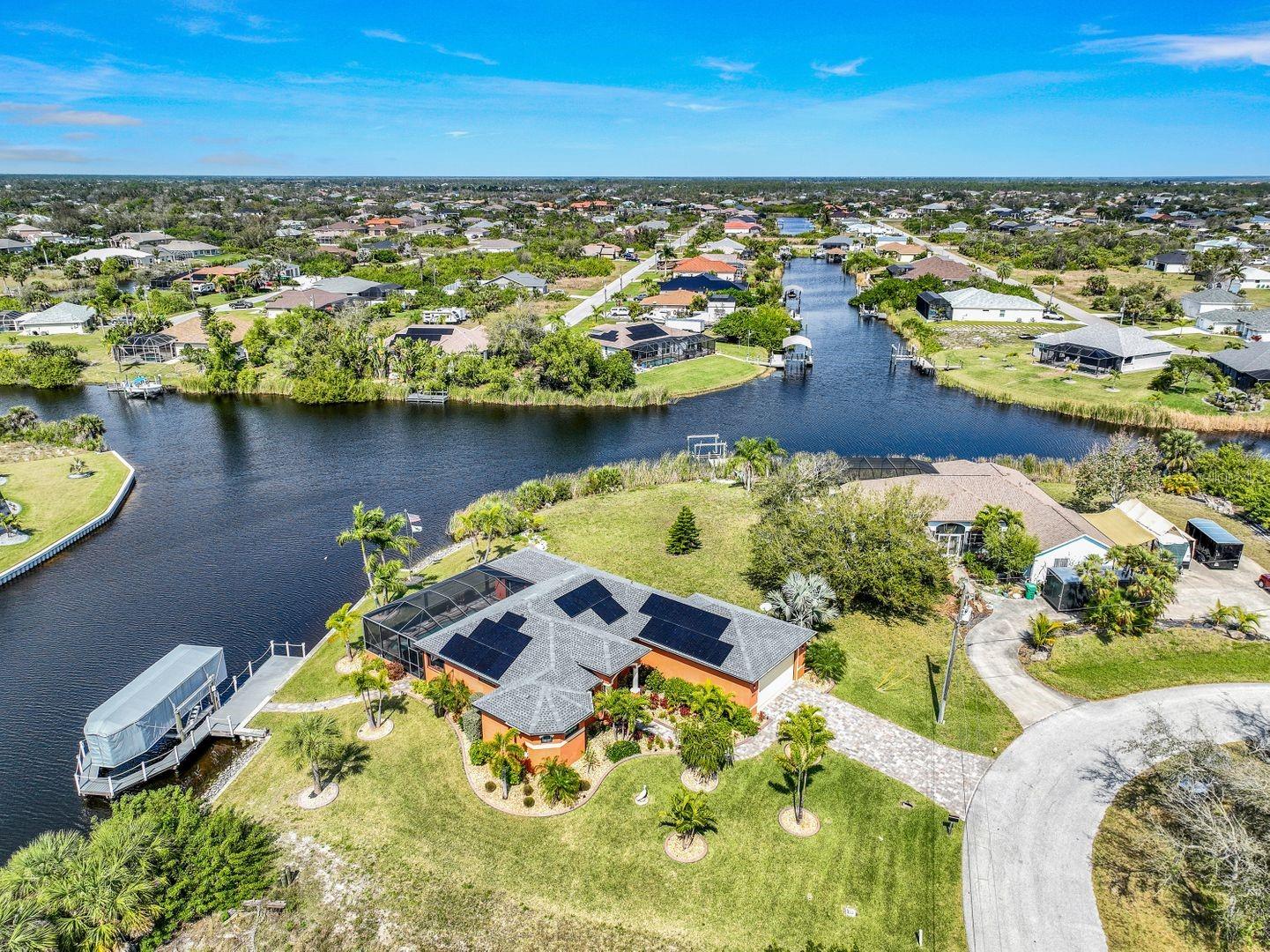 Immerse yourself in Florida living with this exquisite turnkey Gulf-access waterfront SMART home located in Port Charlotte. Enjoy breathtaking sunset views from your heated custom pool/spa, boasting 153 feet of water frontage on a tip lot. This meticulously designed home comes fully equipped with premium features including fully paid electrical solar panels for minimal electricity bills, remote-controlled hurricane shades for added safety and savings, and whole-house automation for ultimate convenience. Entertain with ease in the outdoor kitchen and spacious lanai. The property features a 10,000 lb boat lift, and 87 ft wrap-around dock. Inside, discover a chef's kitchen with walk-in pantry and high-end appliances, relax in the luxurious master suite with a Roman (walk-through) shower and dual vanities, 10' doors, and crown molding. This home is a tech-lover's paradise, with home devices accessible via your phone. Additionally, the comfort of a whole-house 24k generator and insulated garage with A/C. Furnishings, window treatments, and extras are all included, ensuring a seamless move-in experience. Conveniently located near shopping, golf courses, and Boca Grande beach just 20 minutes away. Don't miss out on this incredible opportunity.