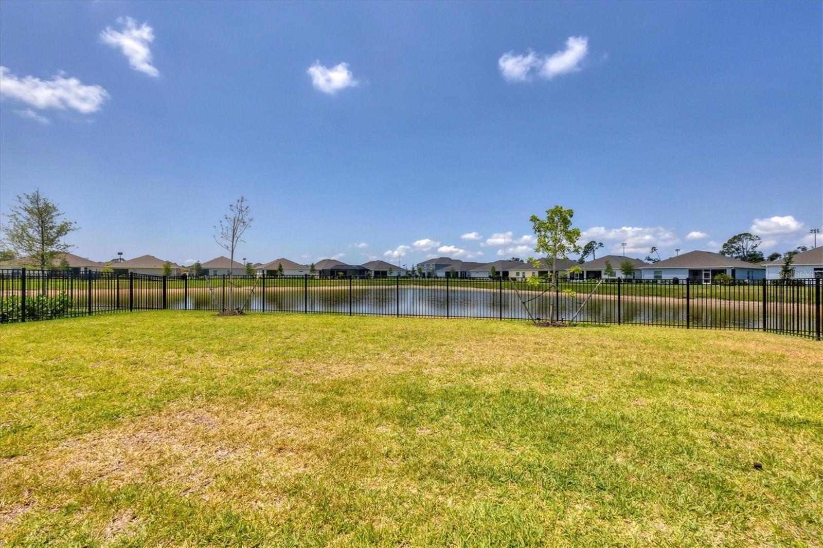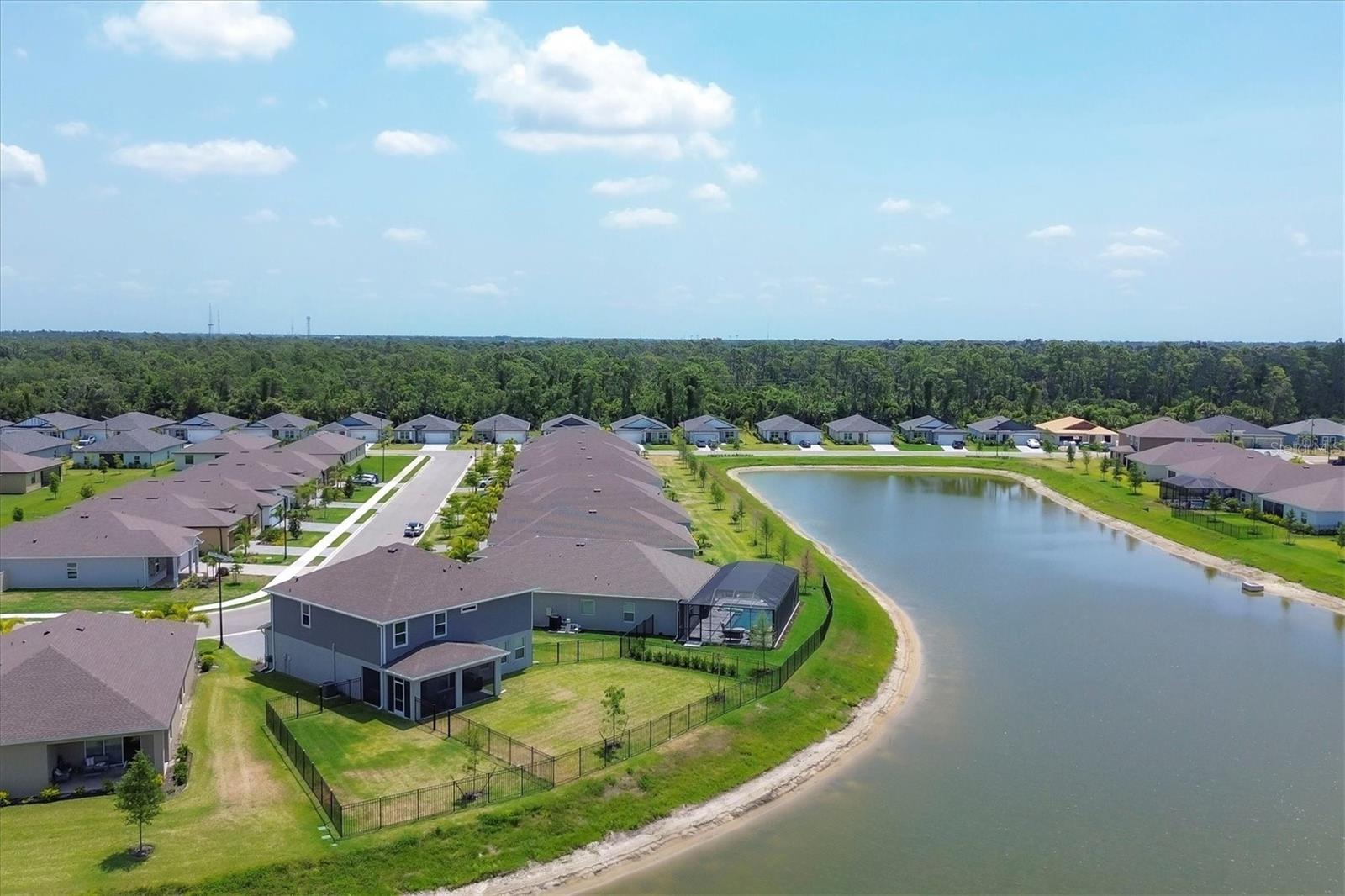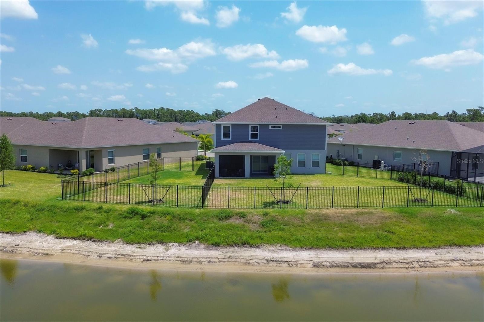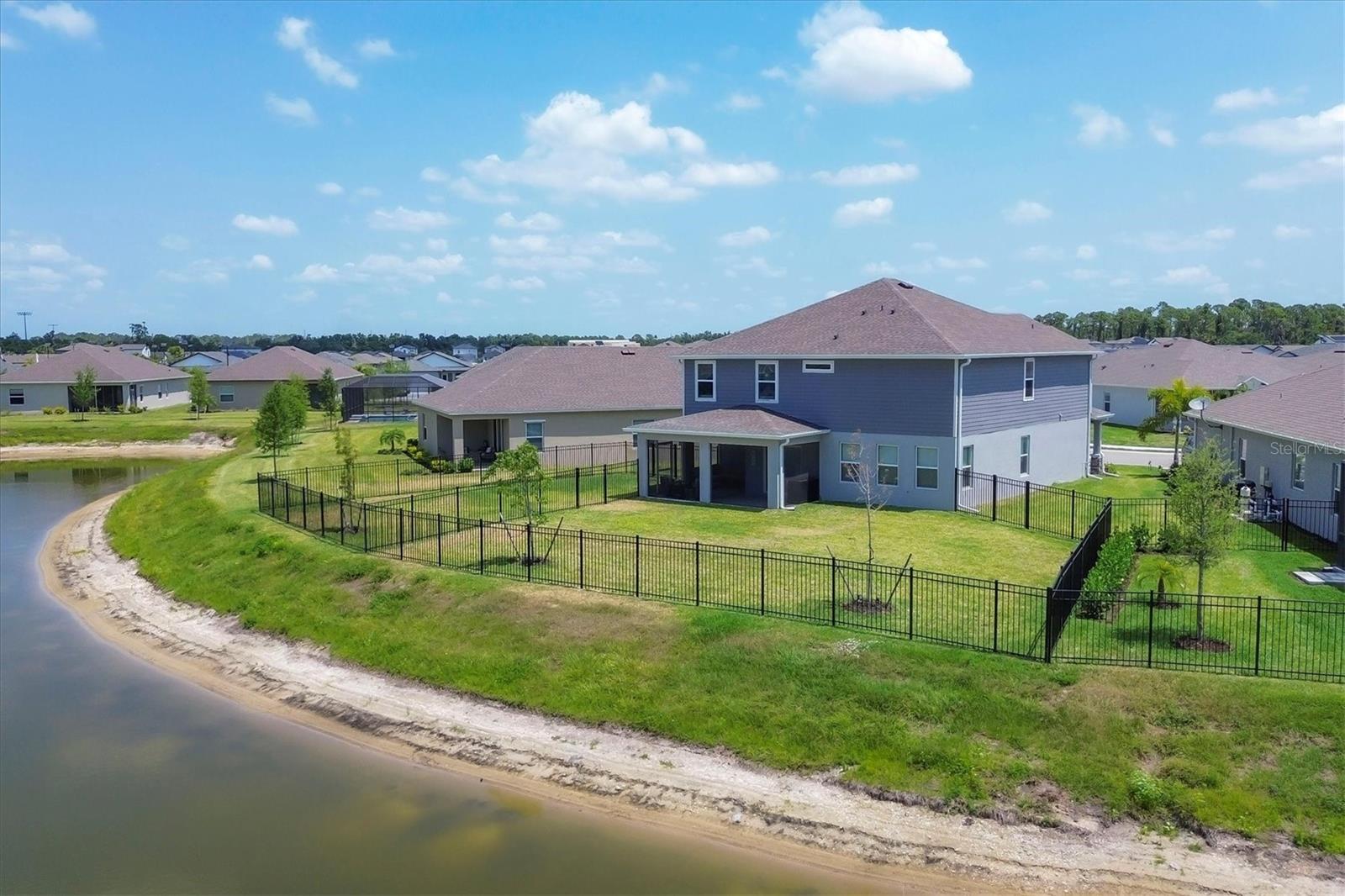 Welcome to your MAINTENANCE FREE dream lakefront retreat! This stunning two-story home boasts unparalleled views of the serene lake from its ample-sized lot, enclosed by elegant black iron fencing. Step out back to the extended wrap-around lanai, where you can enjoy panoramic views of the lake and lush surroundings. Gutters are installed for added convenience. The front door makes a grand entrance with its glass insert, inviting natural light to flood the foyer. Next step inside to discover a spacious layout featuring 4 bedrooms, 3 and a half bathrooms, and a 3 car tandem garage, ensuring ample space for vehicles and storage. Luxurious touches throughout enhance the home's appeal. Crown molding graces the living area downstairs, while the gourmet kitchen is a chef's delight with 42-inch cabinets, perfect for storing all your culinary essentials. The pantry is thoughtfully designed with wood shelves, adding both functionality and charm. The primary bedroom boasts a tray ceiling for added elegance. Prepare to indulge in the spa-like primary bathroom, featuring an extended shower with three heads for the ultimate relaxation experience. The open floor plan seamlessly connects the kitchen to the living area, creating an ideal space for entertaining guests or relaxing with family. Ascend the staircase with treads and a painted handrail, leading to the upper level where a laundry room with a new sink awaits for added convenience. Upstairs, you'll find a versatile bonus room and loft, providing additional living space for whatever your heart desires. Trim around the windows adds a touch of sophistication, complemented by LED lights in the ceiling for energy-efficient illumination, while double sinks in every full bathroom cater to convenience on those busy mornings. This exquisite home offers luxury living at its finest, combining style, comfort, and breathtaking views in one unbeatable package. Don't miss your chance to make this your own slice of paradise!