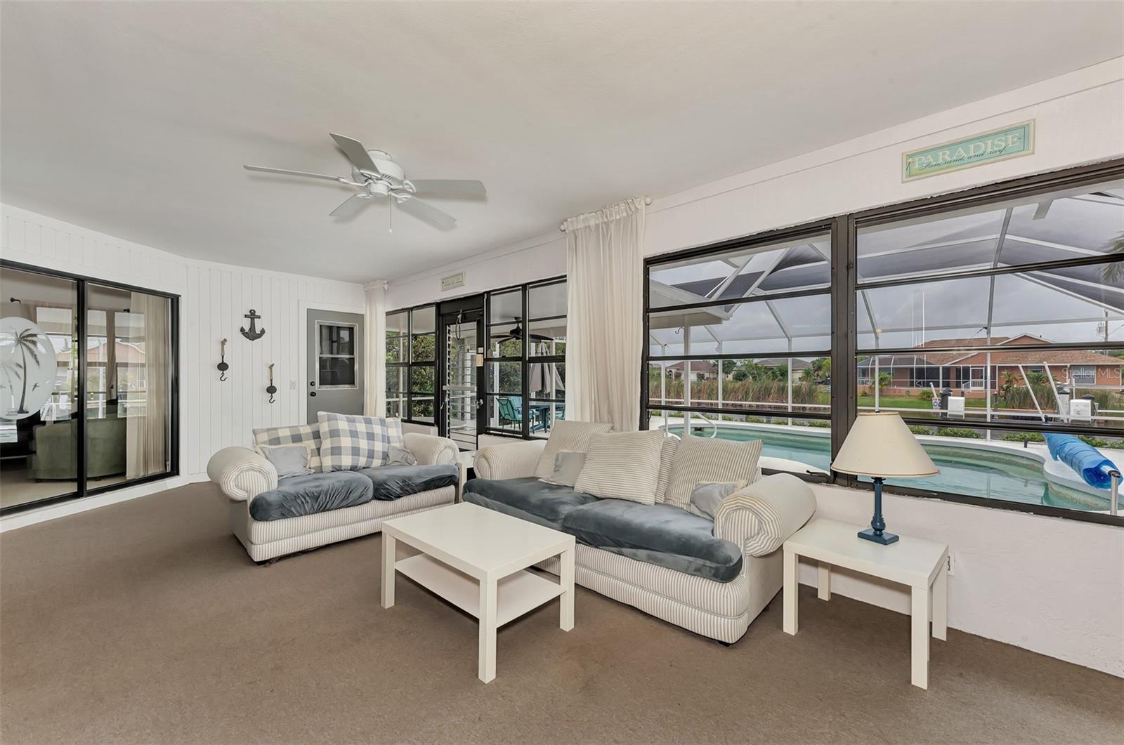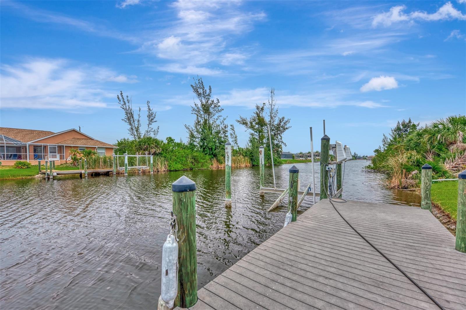 TURNKEY FULLY FURNISHED WATERFRONT GEM with Beautiful Gulf access home located in the waterfront community of South Gulf Cove. Open floor plan with an amazing layout and an abundance of space. This 3 Bedrooms and 2 bathrooms (2377 sq. ft.) property, with two car garage has all you need to make it your home. Fully furnished and turn key with brand new 2024 top of the line furniture ,as seen in the photos, eliminates the headache and expense of purchasing such items. The cathedral ceilings and open space makes it perfect for entertaining. Formal living room and dining room greet you as soon as you enter the home, all overlooking the water. The kitchen has a built-in breakfast nook great for extra dining space. The 12 X 28 Climate controlled Florida room overlooks the heated pool, with an enclosed outdoor shower on the 32X35 pool deck. Then out to the dock added in 2005, complete with a boat lift that will transfer with the property. Not only is this beautiful home teeming with features and oozing with charm but it has also been meticulously cared for and maintained. With a new roof in 2023, a brand new pool cage in 2023 and a new pool heat pump in 2024, this house is ready to be enjoyed! So get your fishing gear and boat shoes ready to hit the saltwater canal that provides you direct access to the Intercoastal and Charlotte Harbor. Located minutes from the pristine beaches of Boca Grande and Englewood's Manasota Key beaches which in turn translates to some of the best fishing in the world! Redfish, Snook and Trout are plentiful in the backyard canal and Tarpon capital of the world is a stone's throw away! This property is an amazing oppurtunity to enjoy Florida's finest offerings so waste no time in scheduling a showing now!!