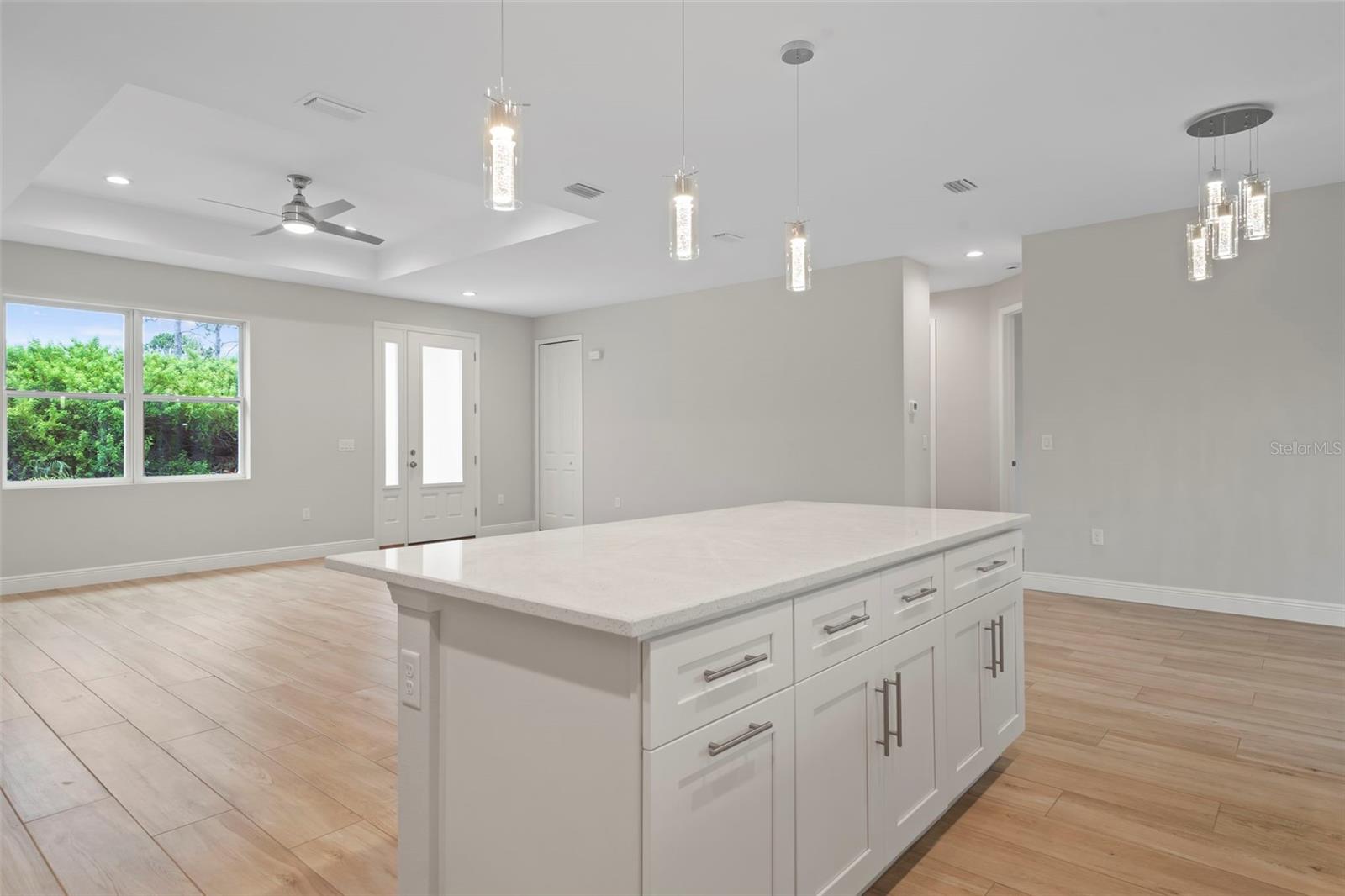 Seller is only entertaining full price offers! Discover your new sanctuary in the heart of Port Charlotte with this stunning, brand new 3-bedroom, 2-bathroom home. Situated in a prime location, every detail of this residence has been meticulously crafted with no expense spared by the builder. Upon entering, you'll be greeted by an expansive open floor plan spanning over 1700 square feet, perfect for both entertaining and everyday living. The kitchen is a chef's delight, featuring quartz countertops, modern stainless steel appliances, and ample storage space. The seamless flow into the spacious family room, adorned with double sliders, creates an inviting atmosphere and extends onto a secluded lanai, offering tranquility away from any road noise. This home is designed with comfort and efficiency in mind, boasting impact windows, premium insulation, and the convenience of city water, ensuring low maintenance and high quality of living. Located in one of Port Charlotte's most desirable neighborhoods, you'll enjoy close proximity to shopping, schools, and dining options, making it an ideal choice for families and professionals alike. Don't miss your chance to be the first to call this exceptional property home. Schedule your private tour today and experience the pinnacle of modern Florida living!