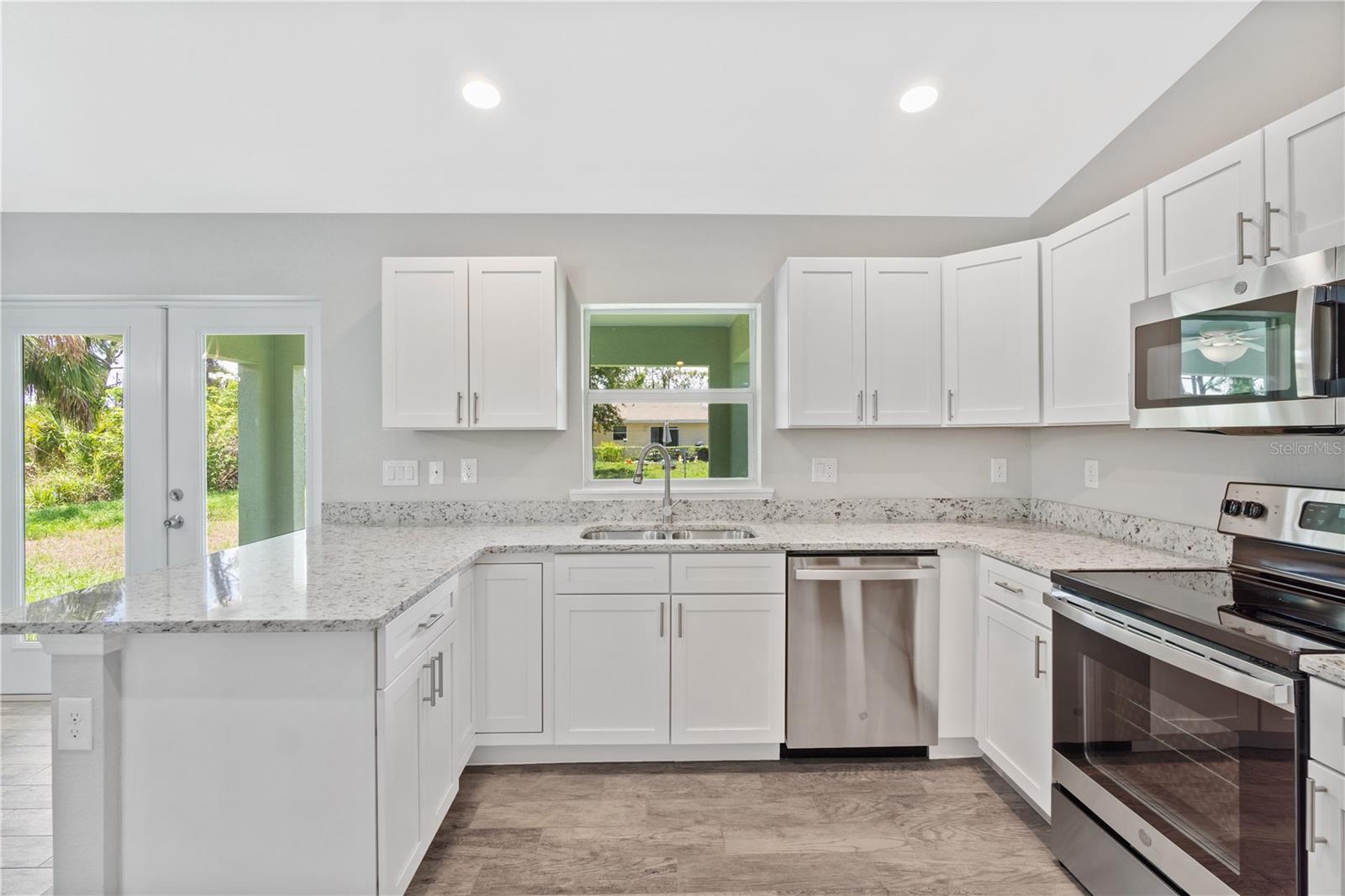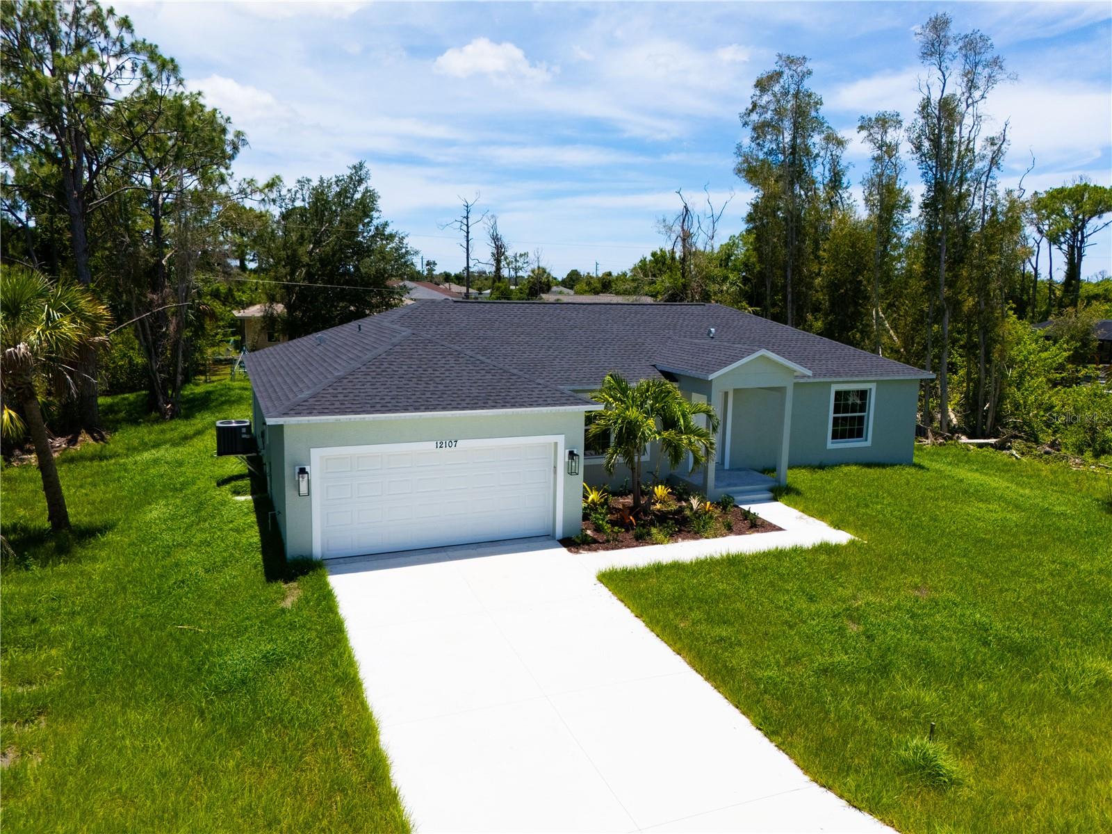 Located less than 9 miles from Manasota beach, this 3 Bedroom 2 Bath home features over 1600 square feet of livable space, stainless steel appliances included, vaulted ceilings, recessed lighting, plank-looking porcelain tile throughout & matching granite counter-tops in the kitchen and bathrooms. It's basically move-in-ready besides a washer and dryer! Plus, the included Hurricane shutters and up-to-date building specs will help to ensure your home insurance & utility bills are kept as low as possible. Other features include a 2 car garage with ceiling-mounted central air, which helps maximize garage storage, fans in every room and an open lanai at the rear of the home. Enjoy living just minutes away from the Gulf of Mexico and surrounding amenities, while still residing outside of a flood zone. No home-owners association, and no deed restrictions. Perfect for first time home buyers, families or those seeking to transition into something efficient and affordable. Don't miss out on this opportunity to own a brand new home in our beautiful area!