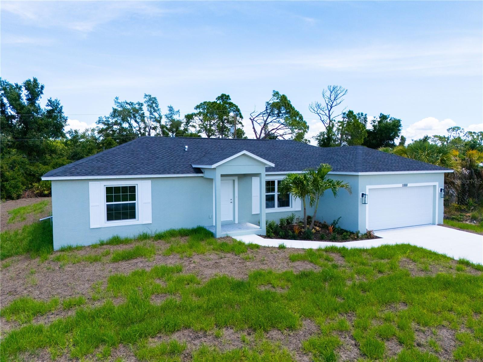 Located 8 miles from Manasota beach, this 3 Bedroom 2 Bath home features over 1600 square feet of livable space, stainless steel appliances included, vaulted ceilings, recessed lighting, plank-looking porcelain tile throughout & matching granite counter-tops in the kitchen and bathrooms. It's basically move-in-ready besides a washer and dryer! Plus, the included Hurricane shutters and up-to-date building specs will help to ensure your home insurance & utility bills are kept as low as possible. Other features include a 2 car garage with ceiling-mounted central air, which helps maximize garage storage, fans in every room and an open lanai at the rear of the home. Enjoy living just minutes away from the Gulf of Mexico and surrounding amenities, while still residing outside of a flood zone. No home-owners association, and no deed restrictions. Perfect for first time home buyers, families or those seeking to transition into something efficient and affordable. Don't miss out on this opportunity to own a brand new home in our beautiful area!