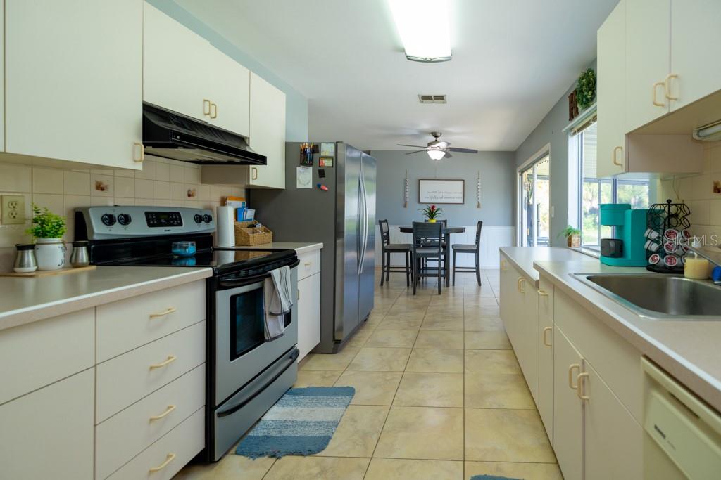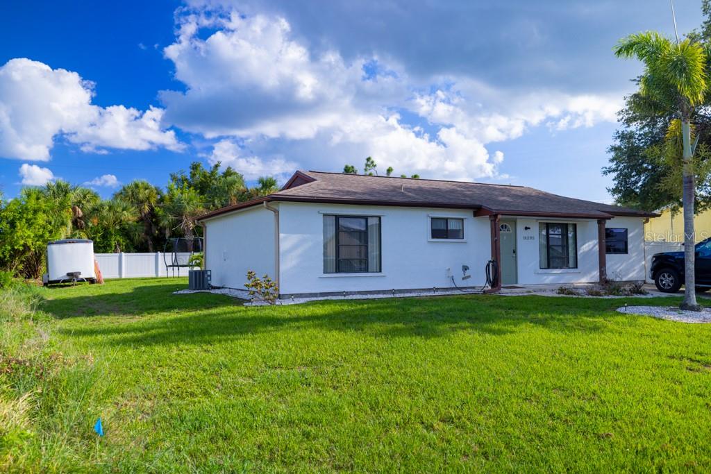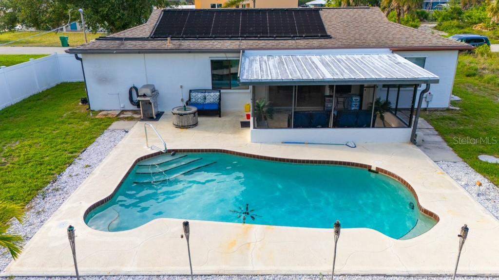 Charming 912 sqft home in the heart of Port Charlotte! This delightful property features 2 bedrooms and 1 bathroom, with the garage cleverly converted into an additional bedroom and office space. Cozy up in the living room by the built-in electric fireplace or whip up delicious meals in the galley kitchen. Step outside to the screened-in patio (lanai) and bask in the tranquility of the beautiful pool with solar heating, perfect for year-round enjoyment. A handy outdoor shed provides extra storage space. And with no neighbors on one side due to the nearby tortoise nest, you'll love the peaceful ambience and occasional visits from these fascinating creatures. Don't miss out on this unique and inviting home perfect to raise a family!