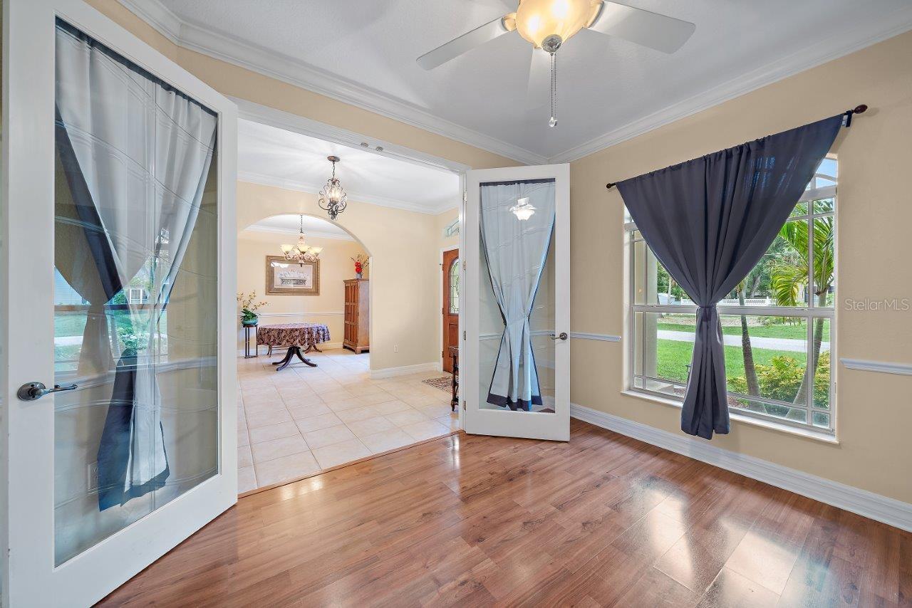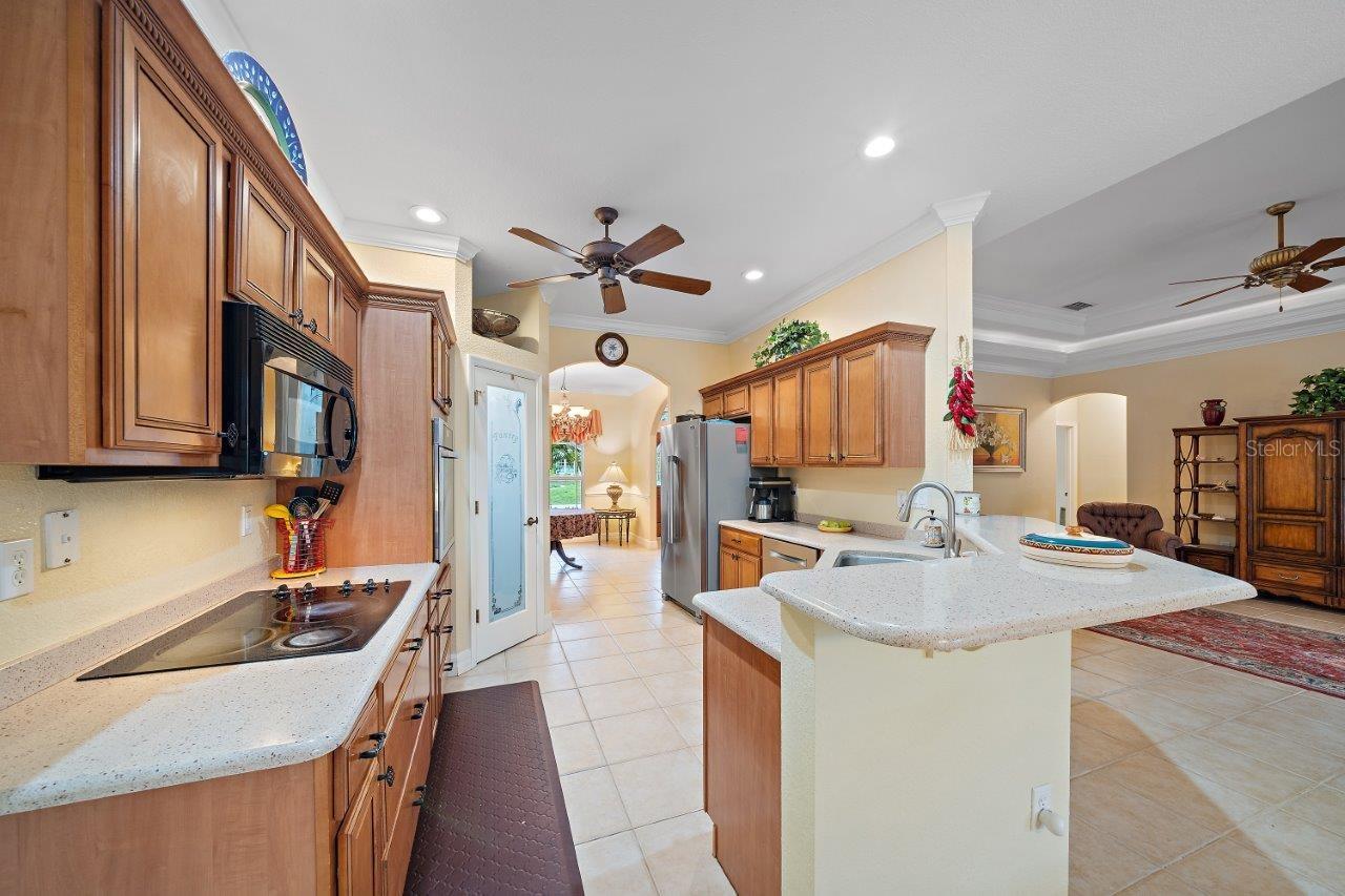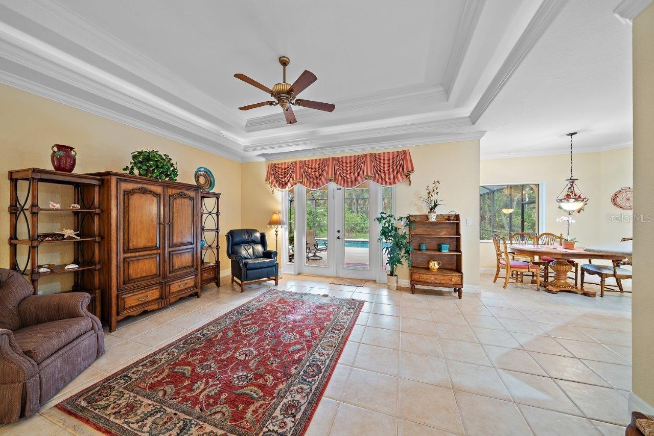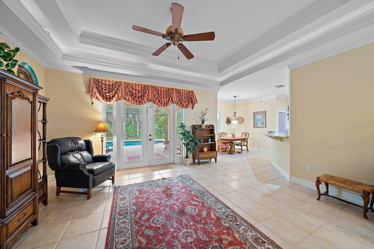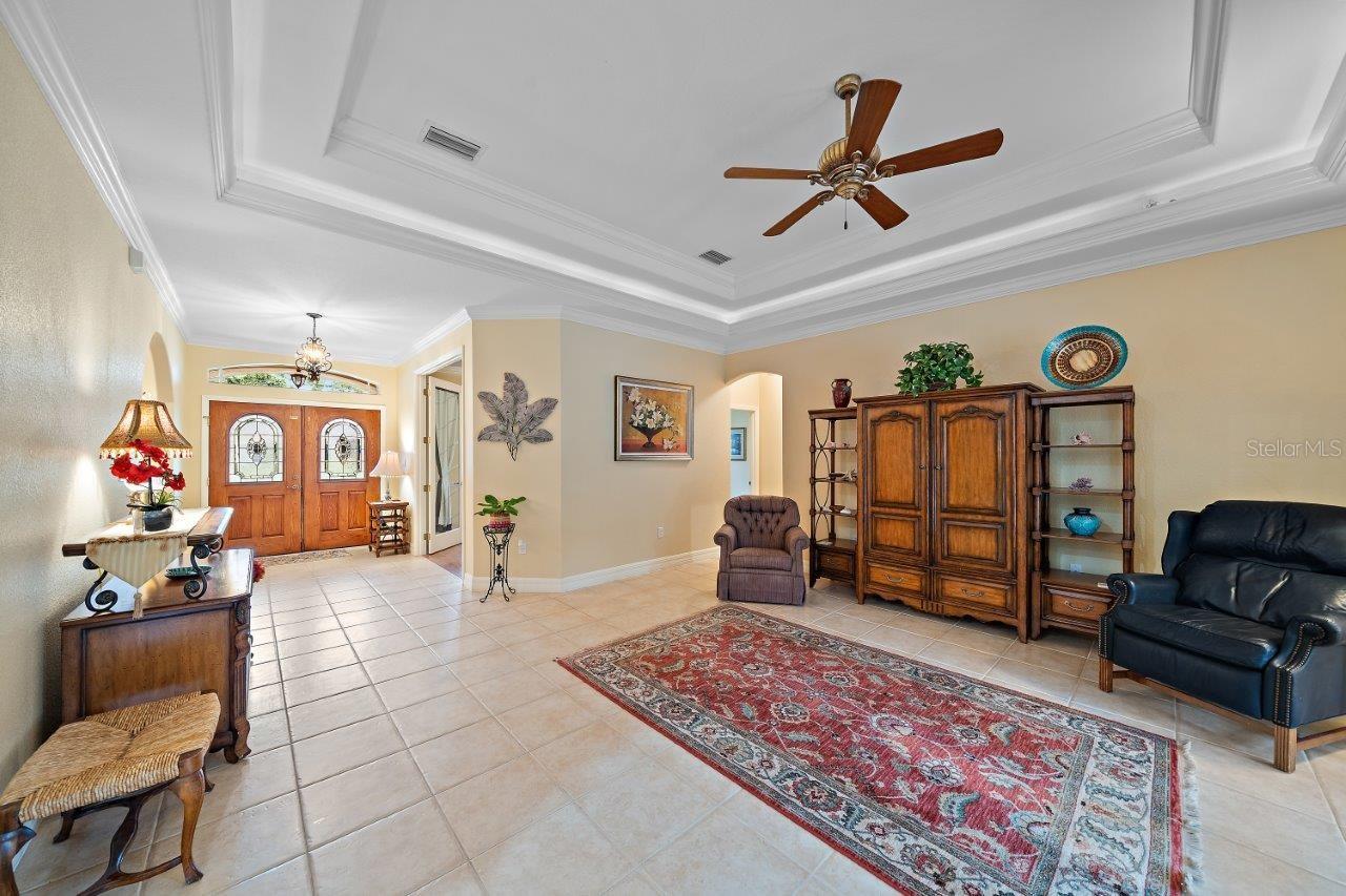 Escape to your own private oasis nestled on .45 acres of lush Florida landscape. As you arrive, you’ll notice the stunning elevation accents, and landscaping that give this home top-grade curb appeal. Once you step foot through the front French doors, the interior maintains that same first-class feel! Crown molding, high ceilings, and 16” tile flooring throughout all the main living areas. The kitchen boasts a breakfast bar, granite counters, solid wood cabinetry, stainless steel appliances, and a pantry. The living room features tray ceilings and opens to the screened-in lanai with views of the heated pool and surrounding landscape. The home is expertly designed with a split floorplan, providing privacy for your guests. The owner’s suite has direct access to the lanai through French doors. A large walk-in closet, ensuite bathroom with makeup vanity, walk-in shower, and jacuzzi tub to round out the owners suite. The second bedroom features a walk-in closet, a full bathroom with walk-in shower and access to the lanai. The lanai is perfectly set up for entertainment with a covered patio, heated pool, and views of the back yard. Additional bonuses this home includes are a storage shed, NEW Roof 2023, and NEW pool pump (2023)! No HOA or Deed Restrictions. Port Charlotte and the surrounding community offers a variety of activities, including parks, restaurants, beaches, and entertainment venues, making it easy to stay active and engaged. Is this home your perfect match? Schedule a showing today!