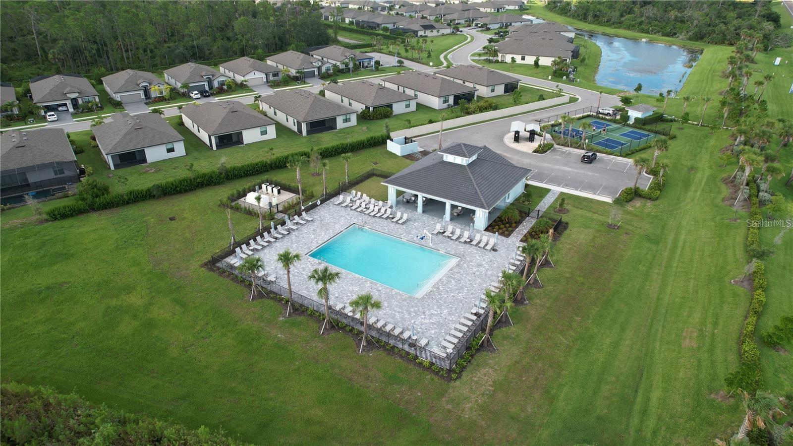 One or more photo(s) has been virtually staged. MOTIVATED Seller Drops Price on this never-lived-in, maintenance-free villa in the gated community of Biscayne Landing. NO HURRICANE DAMAGE!!! Situated on a premium lot, it boasts an extended paved and screened lanai overlooking a tranquil pond. The villa features three bedrooms, with French doors adding a touch of elegance to the third bedroom. The kitchen is adorned with a custom backsplash, and new fans have been installed throughout the home. With no carpet and tile flooring throughout, maintenance is a breeze. This is a true smart home, equipped with a Ring doorbell, Wi-Fi-enabled door locks, and other modern conveniences. The two-car garage offers reinforced doors and ample storage space. Inside, the master suite impresses with a massive 10-foot walk-in closet and an oversized walk-in shower. The home includes a laundry room with a washer and dryer for added convenience. The community itself is packed with amenities, including a heated pool, an impressive exercise room, tennis and pickleball courts, and low HOA fees that cover basic cable, Wi-Fi, exterior pest control, irrigation, insurance, and recreational facilities. Best of all, no flood insurance is required. This villa is not only affordable but also energy-efficient, with low electric bills thanks to its smart home features. The seller pays just $853 annually for homeowners insurance. Why wait for new construction and deal with higher closing costs when you can own this pristine, never-lived-in resale? The highly motivated seller is ready to consider all reasonable offers, and the property is also available for rental. Don’t miss the 3D virtual tour—schedule your showing today!