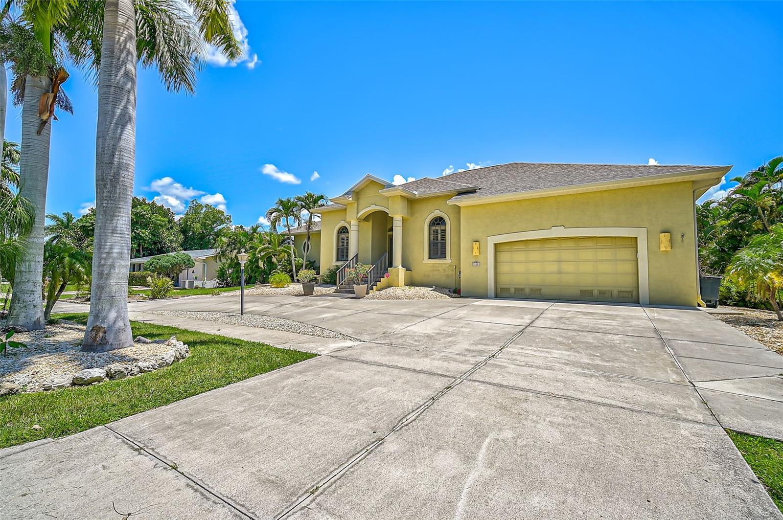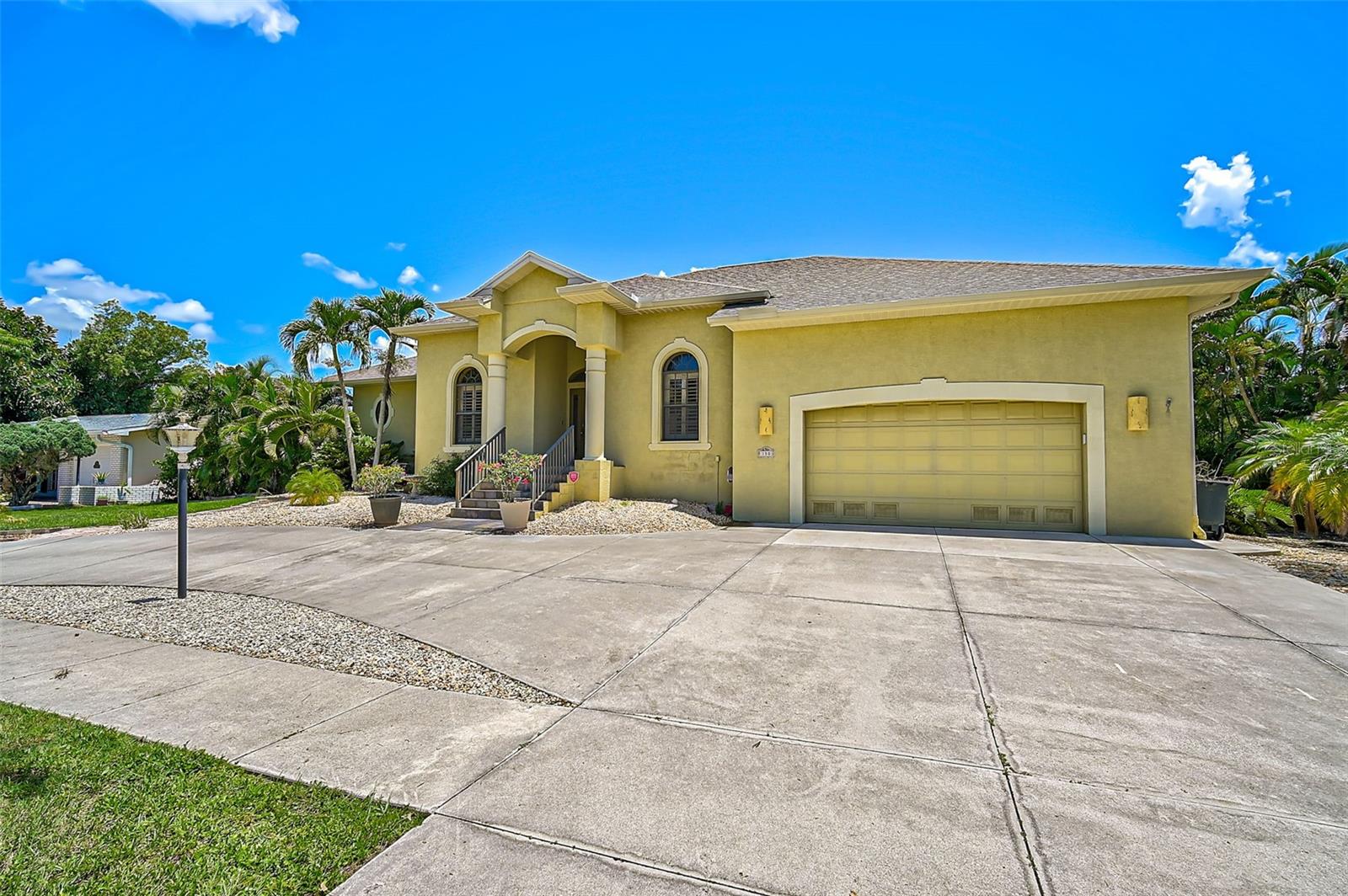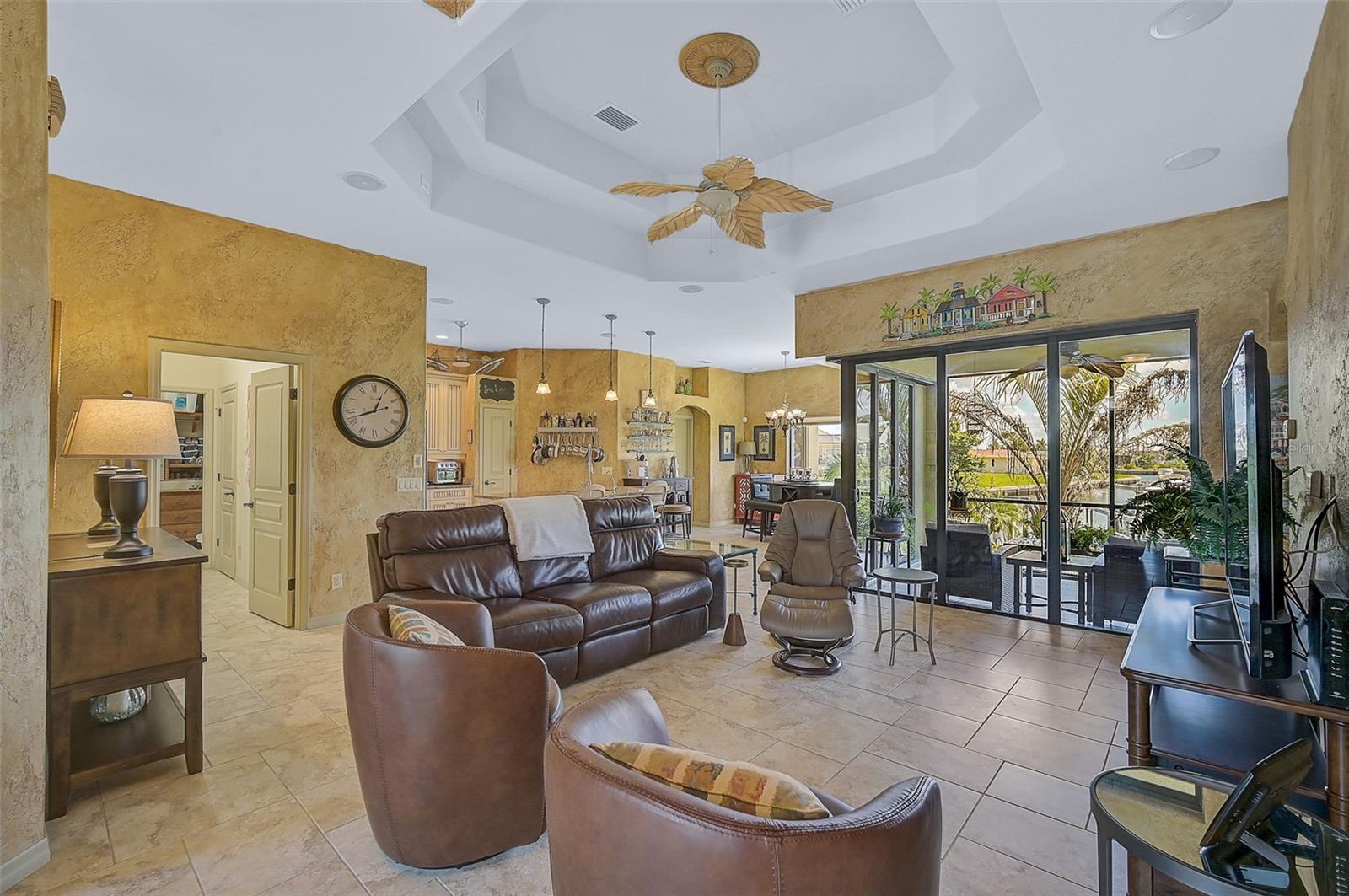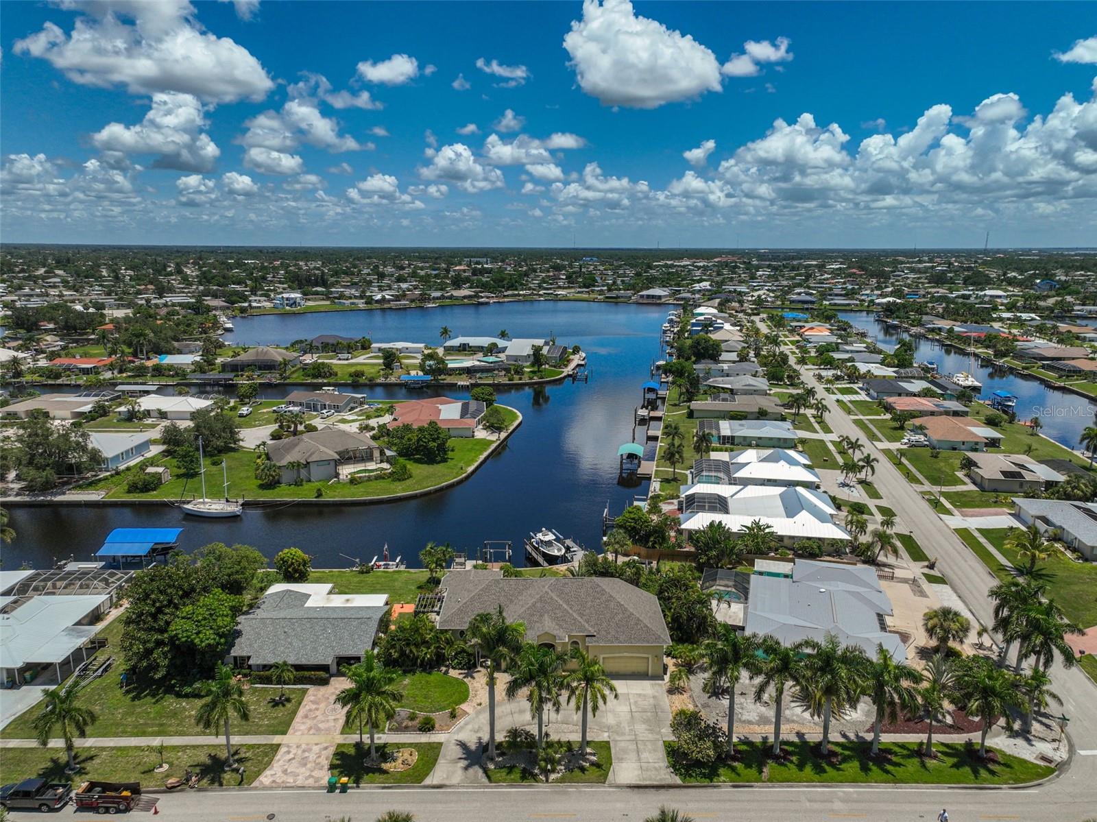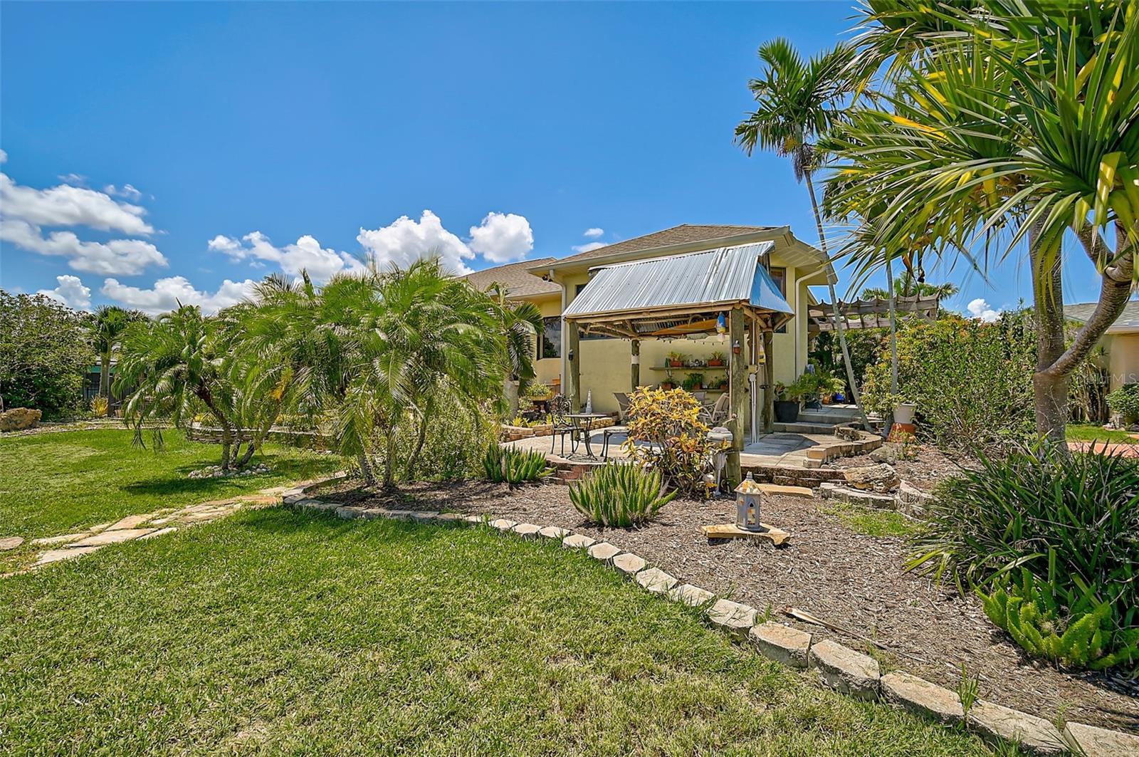Welcome home to this beautiful, custom-built home by Fero Construction in Port Charlotte! Home offers a luxurious waterfront lifestyle. With 2 bedrooms, 2 bathrooms, and a den, this home boasts fantastic canal views and quick, sailboat access to Charlotte Harbor. Upon entering, you'll find a spacious great room that seamlessly flows into the gourmet kitchen and large dining area. Architectural features include zero-corner sliding glass doors, tile floors throughout the main living areas, a double tray ceiling, and a central vacuum system with floor sweeps. The gourmet kitchen is a chef's delight, featuring granite countertops, wood cabinetry, under-cabinet lighting, and a closet pantry. The split bedroom floor plan offers two master suites, each with his and her walk-in closets and private baths. The main master suite even has walk-out access to the patio and backyard, creating a serene retreat. The great room opens to the lanai, offering stunning canal views. The backyard is beautifully landscaped, creating a private oasis that includes an in-ground pool, patio, and a tiki hut with a tin roof. Whether you want to lounge by the pool or relax at the tiki bar, this backyard is perfect for entertaining. A wooden dock with an 8,000 lb boat lift is just steps from the back door, making it easy to enjoy boating on the water. Water and electric hook-ups are available dockside for added convenience. The home also features an oversized 2-car garage with 14ft ceilings, a workshop, and plenty of additional storage space, including attic access with attic storage. Meticulously maintained and in move-in condition, this home is ready to become your Florida dream home.