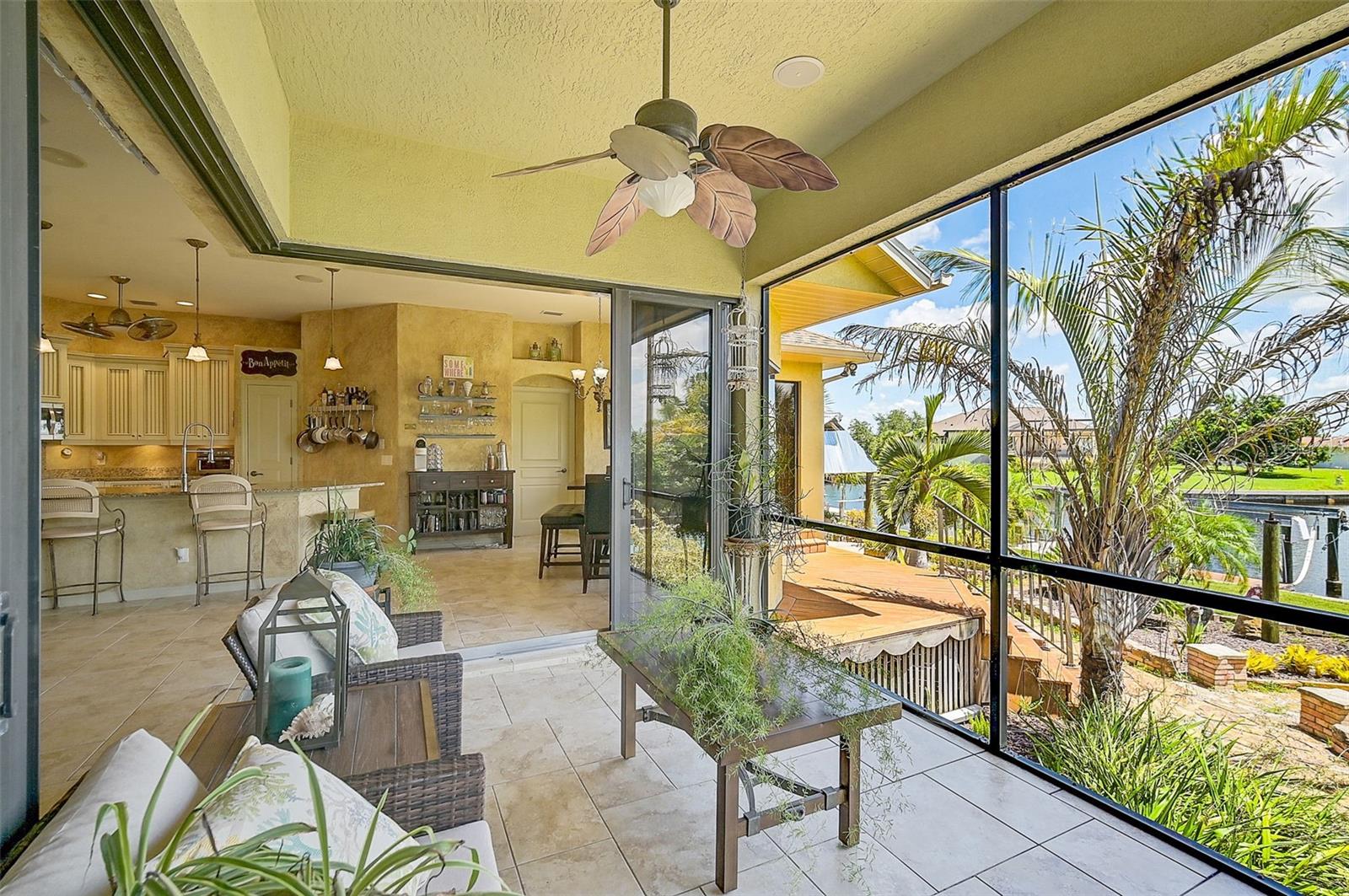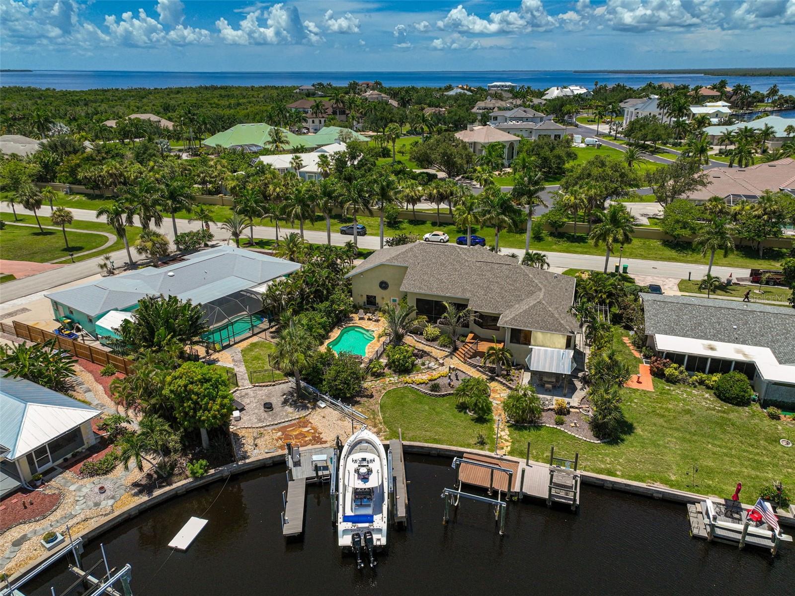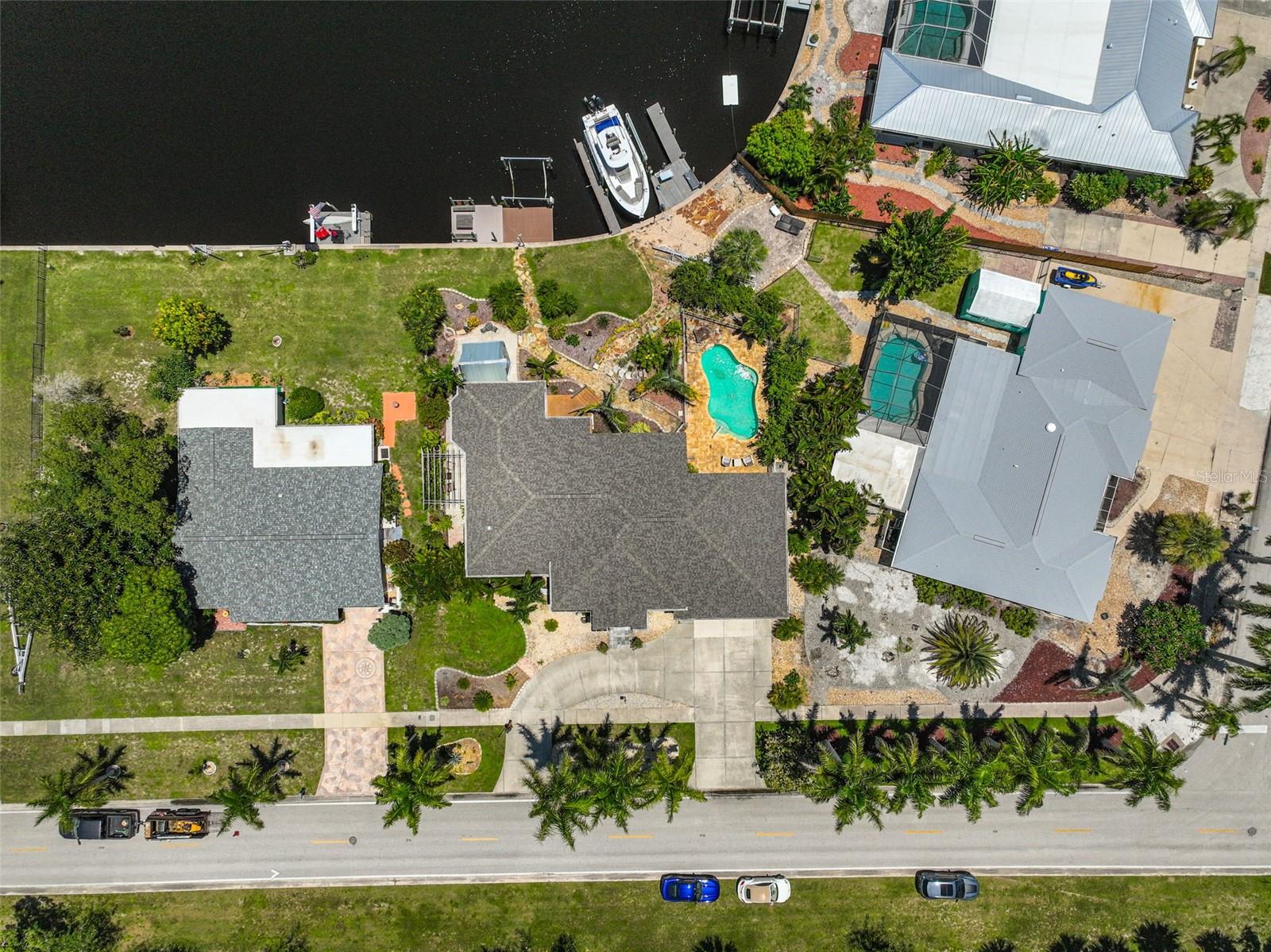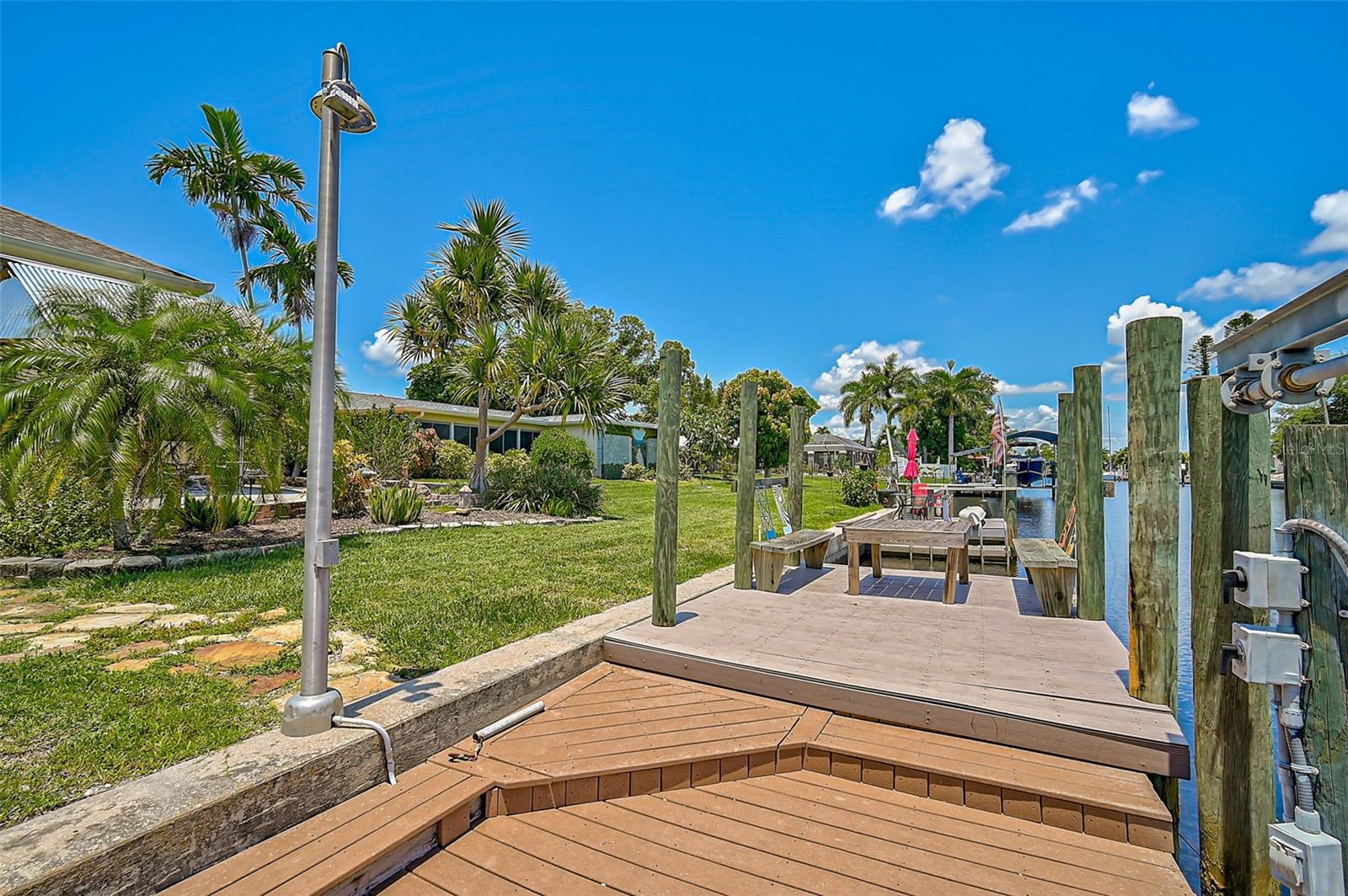 Welcome home to this beautiful, custom-built home by Fero Construction in Port Charlotte! Home offers a luxurious waterfront lifestyle. With 2 bedrooms, 2 bathrooms, and a den, this home boasts fantastic canal views and quick, sailboat access to Charlotte Harbor. Upon entering, you'll find a spacious great room that seamlessly flows into the gourmet kitchen and large dining area. Architectural features include zero-corner sliding glass doors, tile floors throughout the main living areas, a double tray ceiling, and a central vacuum system with floor sweeps. The gourmet kitchen is a chef's delight, featuring granite countertops, wood cabinetry, under-cabinet lighting, and a closet pantry. The split bedroom floor plan offers two master suites, each with his and her walk-in closets and private baths. The main master suite even has walk-out access to the patio and backyard, creating a serene retreat. The great room opens to the lanai, offering stunning canal views. The backyard is beautifully landscaped, creating a private oasis that includes an in-ground pool, patio, and a tiki hut with a tin roof. Whether you want to lounge by the pool or relax at the tiki bar, this backyard is perfect for entertaining. A wooden dock with an 8,000 lb boat lift is just steps from the back door, making it easy to enjoy boating on the water. Water and electric hook-ups are available dockside for added convenience. The home also features an oversized 2-car garage with 14ft ceilings, a workshop, and plenty of additional storage space, including attic access with attic storage. Meticulously maintained and in move-in condition, this home is ready to become your Florida dream home.