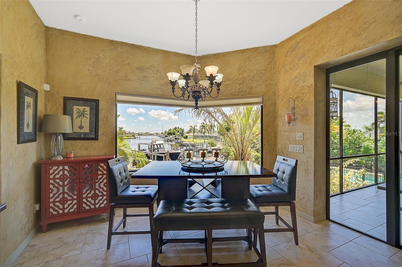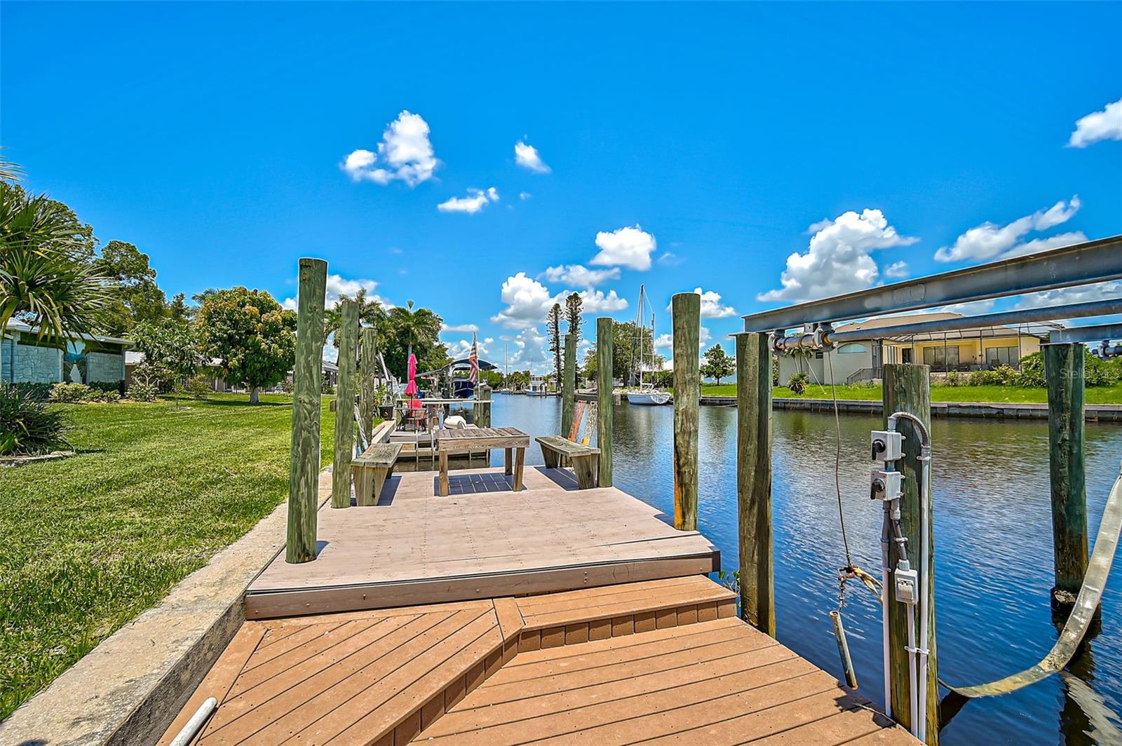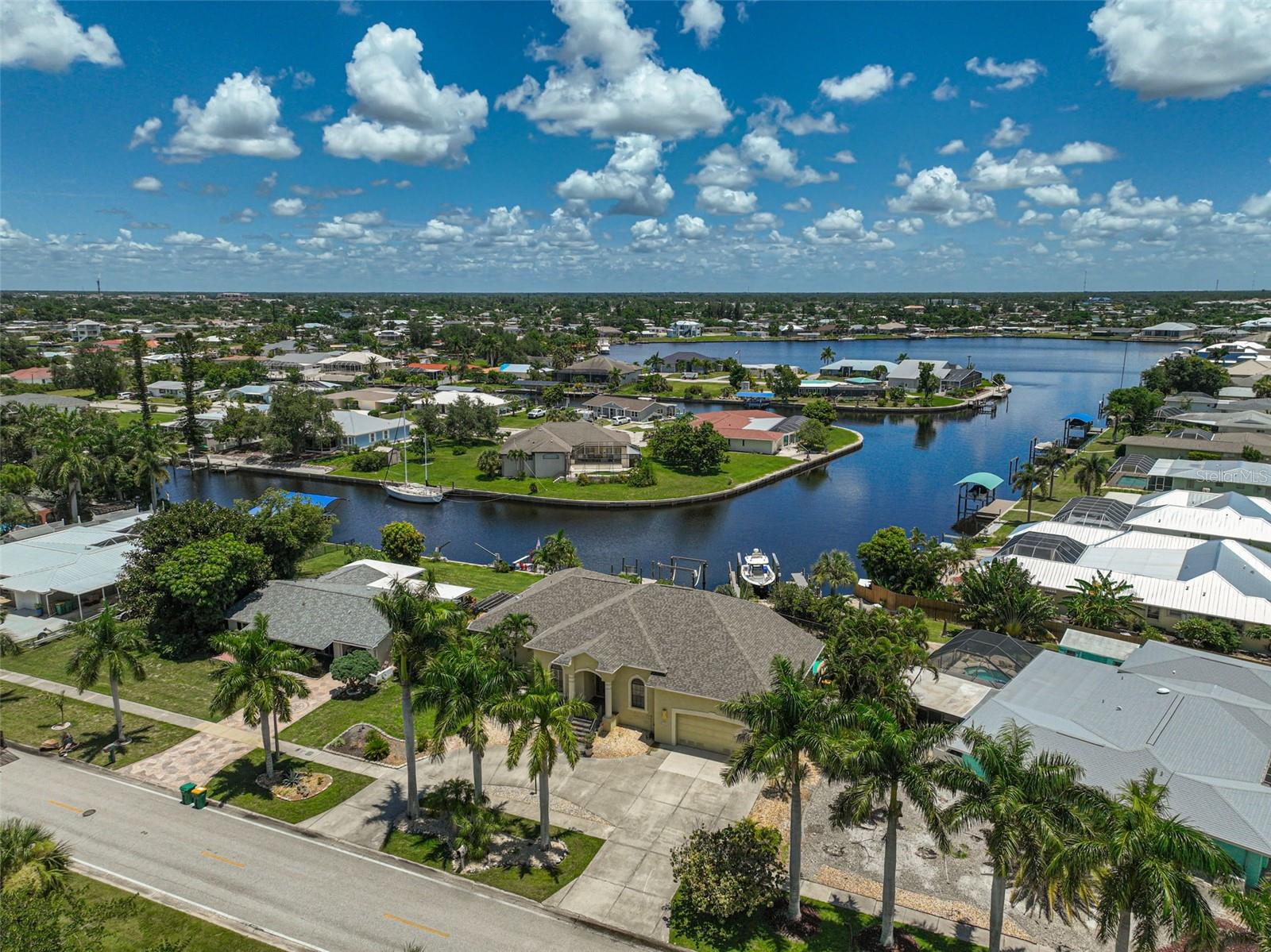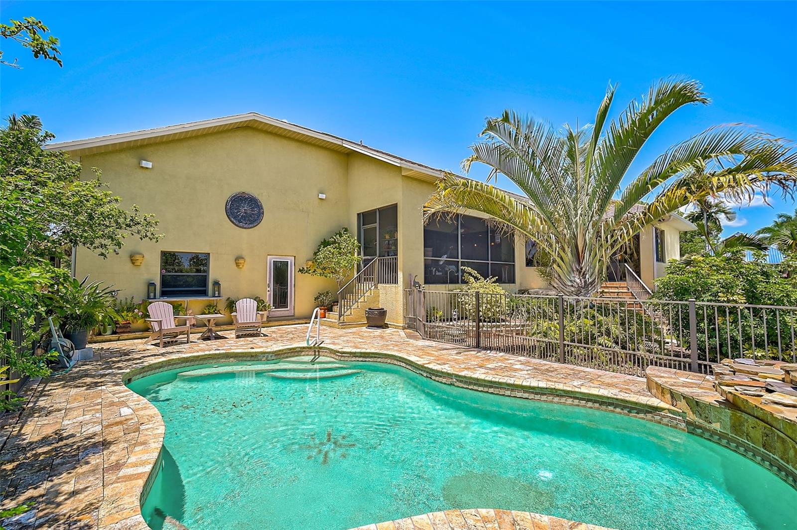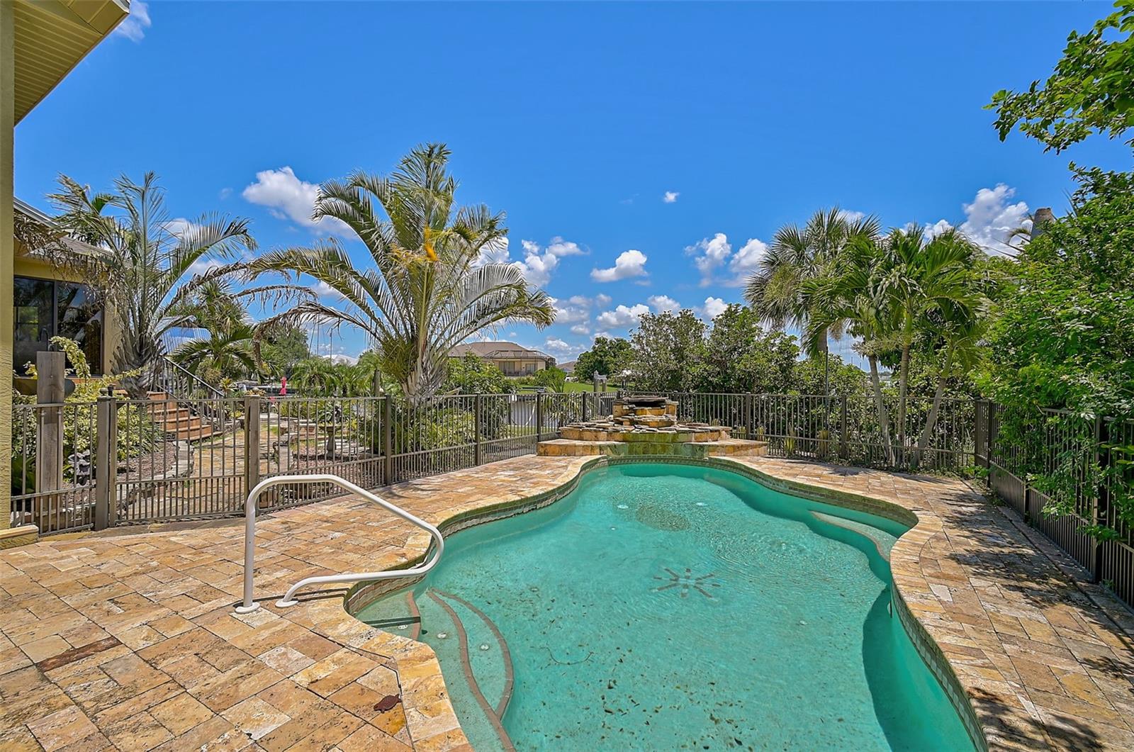 Welcome home to this beautiful, custom-built home by Fero Construction in Port Charlotte! Home offers a luxurious waterfront lifestyle. With 2 bedrooms, 2 bathrooms, and a den, this home boasts fantastic canal views and quick, sailboat access to Charlotte Harbor. Upon entering, you'll find a spacious great room that seamlessly flows into the gourmet kitchen and large dining area. Architectural features include zero-corner sliding glass doors, tile floors throughout the main living areas, a double tray ceiling, and a central vacuum system with floor sweeps. The gourmet kitchen is a chef's delight, featuring granite countertops, wood cabinetry, under-cabinet lighting, and a closet pantry. The split bedroom floor plan offers two master suites, each with his and her walk-in closets and private baths. The main master suite even has walk-out access to the patio and backyard, creating a serene retreat. The great room opens to the lanai, offering stunning canal views. The backyard is beautifully landscaped, creating a private oasis that includes an in-ground pool, patio, and a tiki hut with a tin roof. Whether you want to lounge by the pool or relax at the tiki bar, this backyard is perfect for entertaining. A wooden dock with an 8,000 lb boat lift is just steps from the back door, making it easy to enjoy boating on the water. Water and electric hook-ups are available dockside for added convenience. The home also features an oversized 2-car garage with 14ft ceilings, a workshop, and plenty of additional storage space, including attic access with attic storage. Meticulously maintained and in move-in condition, this home is ready to become your Florida dream home.