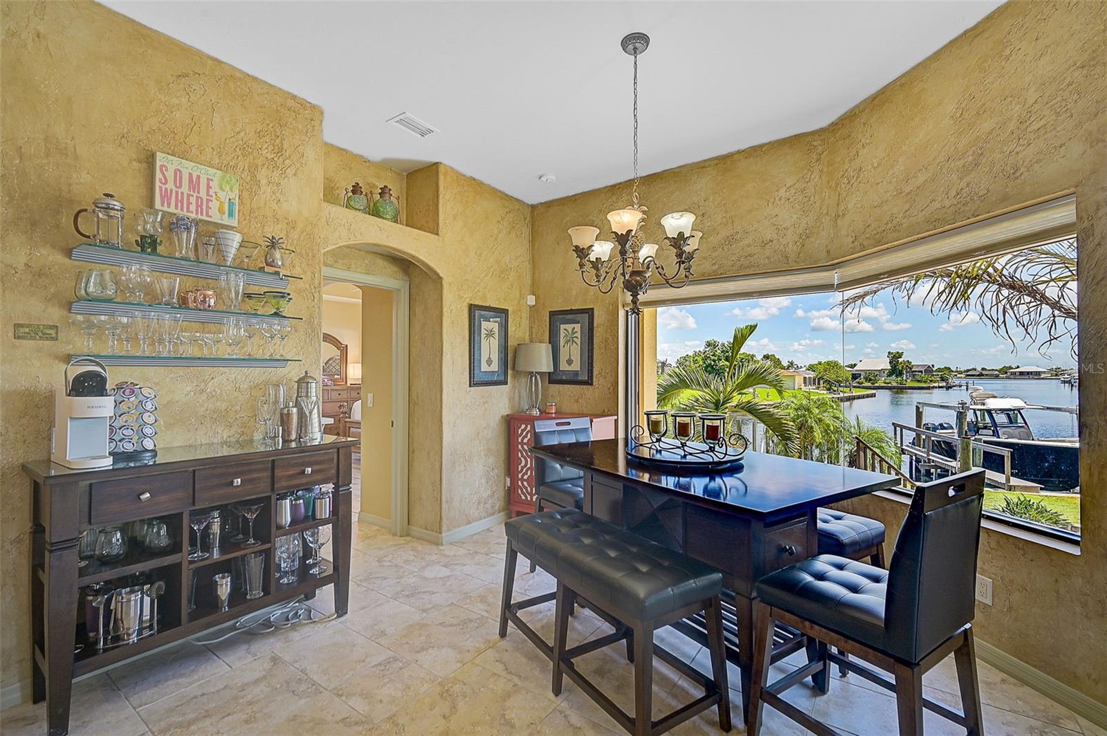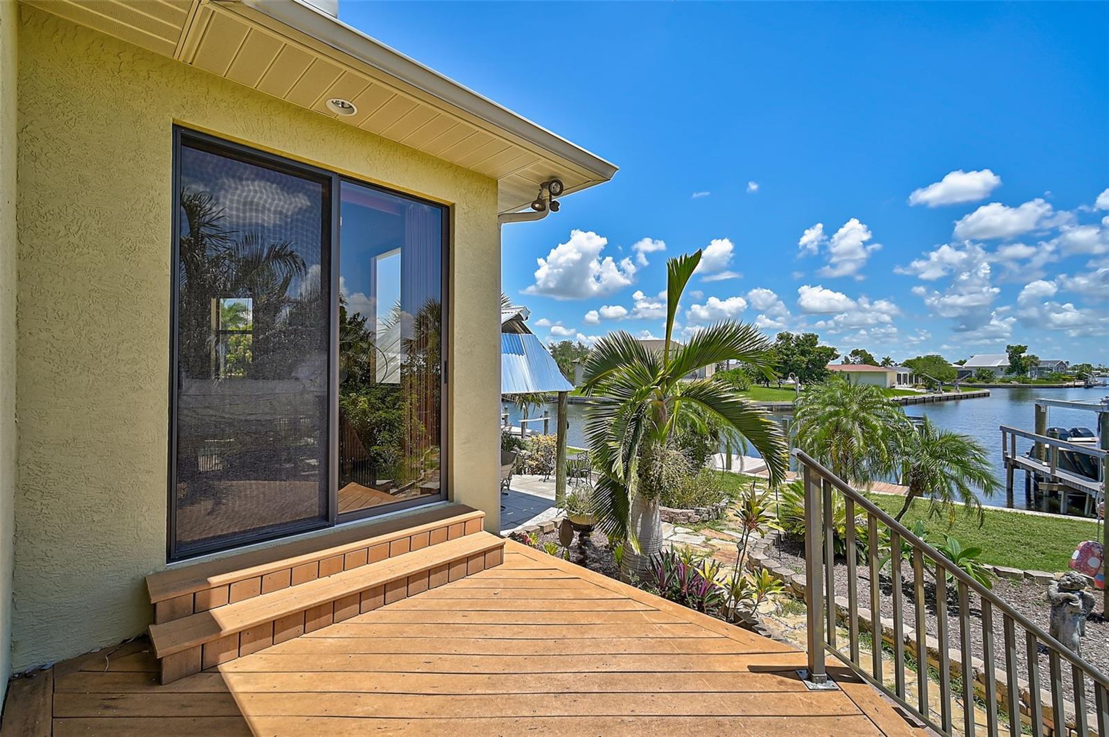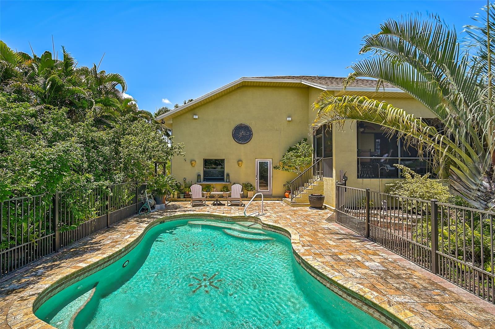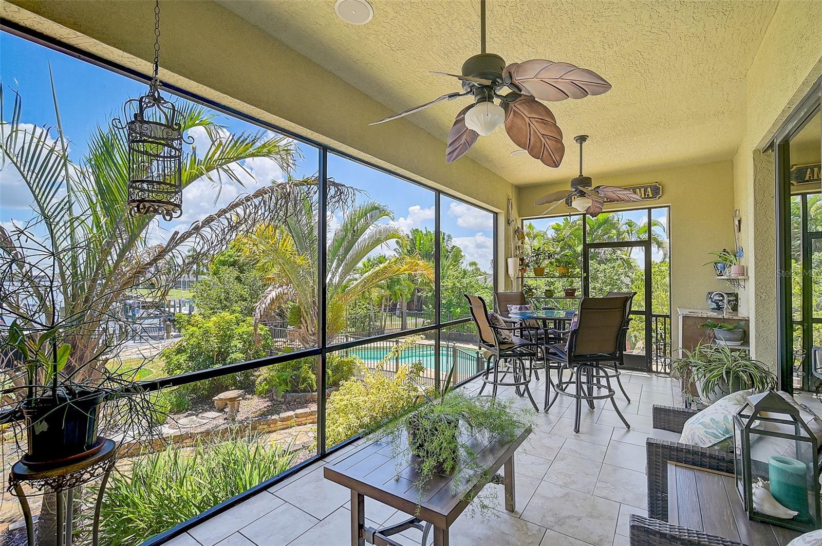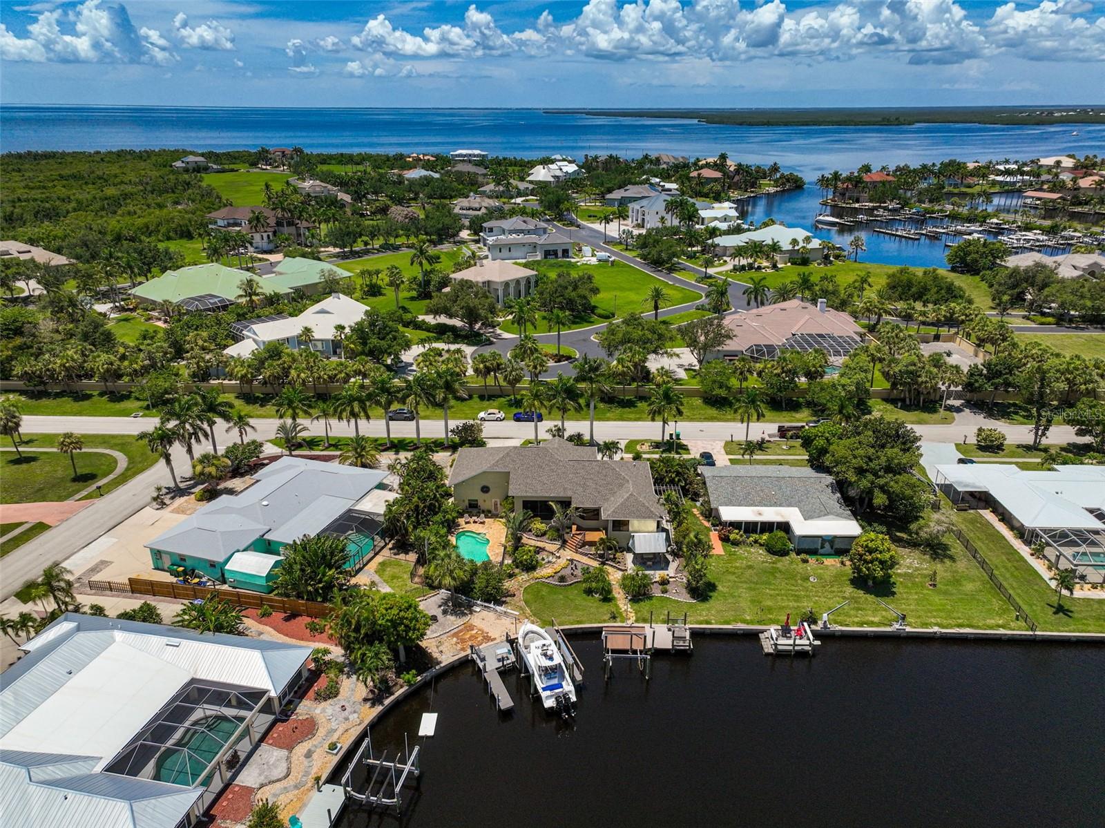 Welcome home to this beautiful, custom-built home by Fero Construction in Port Charlotte! Home offers a luxurious waterfront lifestyle. With 2 bedrooms, 2 bathrooms, and a den, this home boasts fantastic canal views and quick, sailboat access to Charlotte Harbor. Upon entering, you'll find a spacious great room that seamlessly flows into the gourmet kitchen and large dining area. Architectural features include zero-corner sliding glass doors, tile floors throughout the main living areas, a double tray ceiling, and a central vacuum system with floor sweeps. The gourmet kitchen is a chef's delight, featuring granite countertops, wood cabinetry, under-cabinet lighting, and a closet pantry. The split bedroom floor plan offers two master suites, each with his and her walk-in closets and private baths. The main master suite even has walk-out access to the patio and backyard, creating a serene retreat. The great room opens to the lanai, offering stunning canal views. The backyard is beautifully landscaped, creating a private oasis that includes an in-ground pool, patio, and a tiki hut with a tin roof. Whether you want to lounge by the pool or relax at the tiki bar, this backyard is perfect for entertaining. A wooden dock with an 8,000 lb boat lift is just steps from the back door, making it easy to enjoy boating on the water. Water and electric hook-ups are available dockside for added convenience. The home also features an oversized 2-car garage with 14ft ceilings, a workshop, and plenty of additional storage space, including attic access with attic storage. Meticulously maintained and in move-in condition, this home is ready to become your Florida dream home.