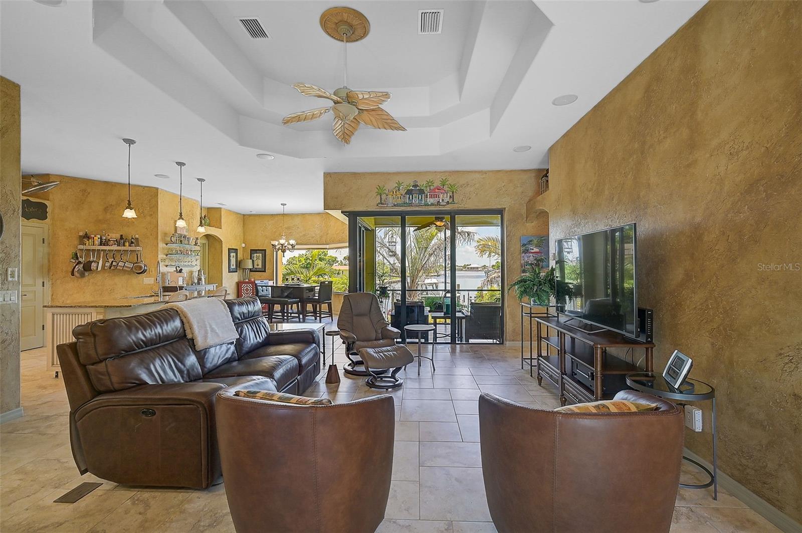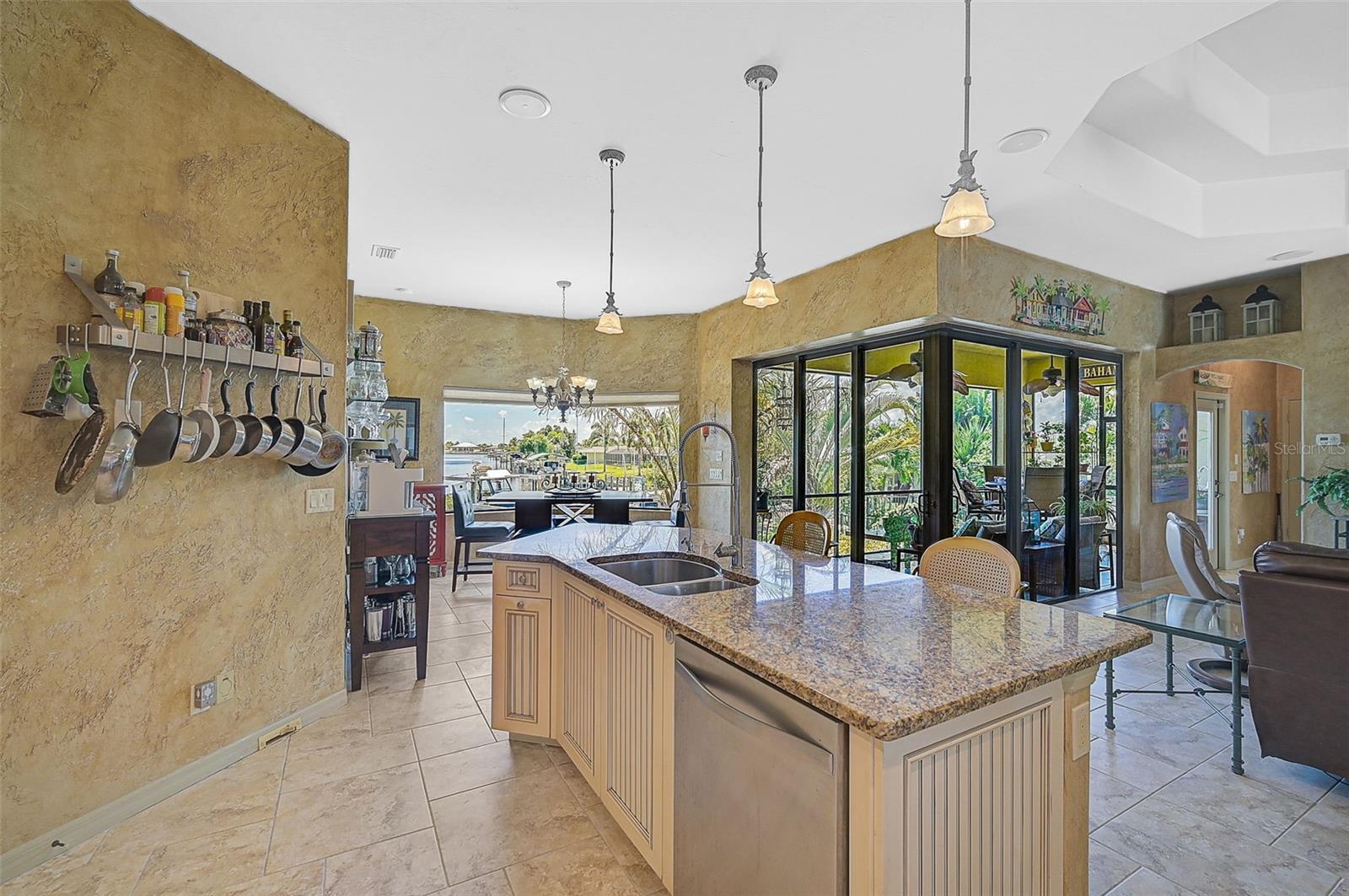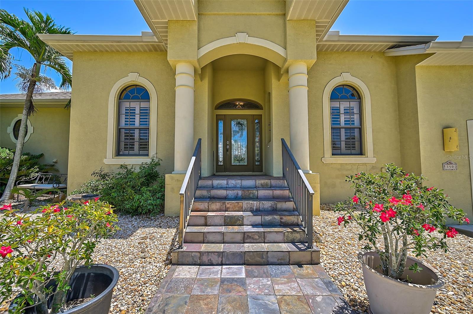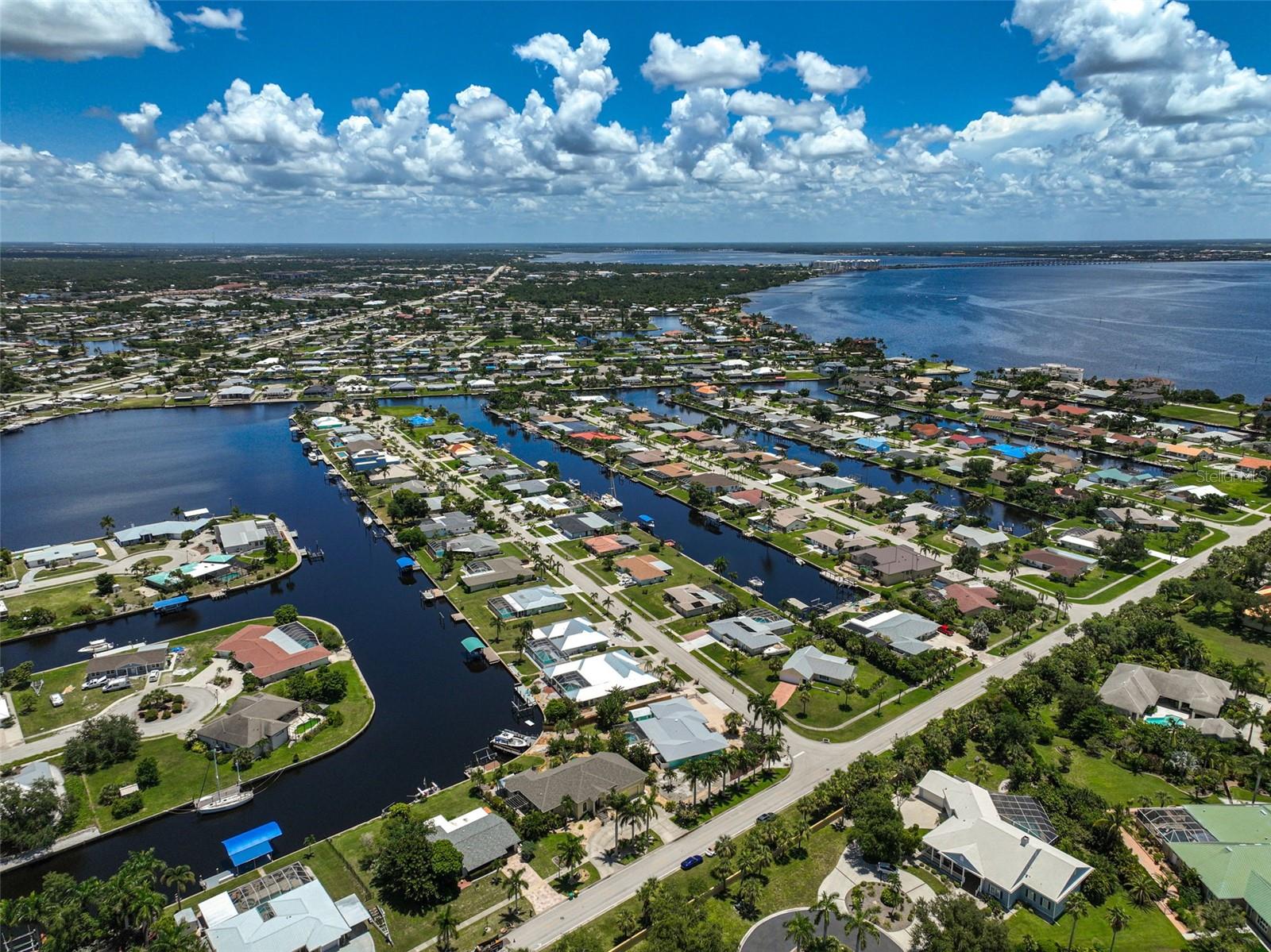 Welcome home to this beautiful, custom-built home by Fero Construction in Port Charlotte! Home offers a luxurious waterfront lifestyle. With 2 bedrooms, 2 bathrooms, and a den, this home boasts fantastic canal views and quick, sailboat access to Charlotte Harbor. Upon entering, you'll find a spacious great room that seamlessly flows into the gourmet kitchen and large dining area. Architectural features include zero-corner sliding glass doors, tile floors throughout the main living areas, a double tray ceiling, and a central vacuum system with floor sweeps. The gourmet kitchen is a chef's delight, featuring granite countertops, wood cabinetry, under-cabinet lighting, and a closet pantry. The split bedroom floor plan offers two master suites, each with his and her walk-in closets and private baths. The main master suite even has walk-out access to the patio and backyard, creating a serene retreat. The great room opens to the lanai, offering stunning canal views. The backyard is beautifully landscaped, creating a private oasis that includes an in-ground pool, patio, and a tiki hut with a tin roof. Whether you want to lounge by the pool or relax at the tiki bar, this backyard is perfect for entertaining. A wooden dock with an 8,000 lb boat lift is just steps from the back door, making it easy to enjoy boating on the water. Water and electric hook-ups are available dockside for added convenience. The home also features an oversized 2-car garage with 14ft ceilings, a workshop, and plenty of additional storage space, including attic access with attic storage. Meticulously maintained and in move-in condition, this home is ready to become your Florida dream home.