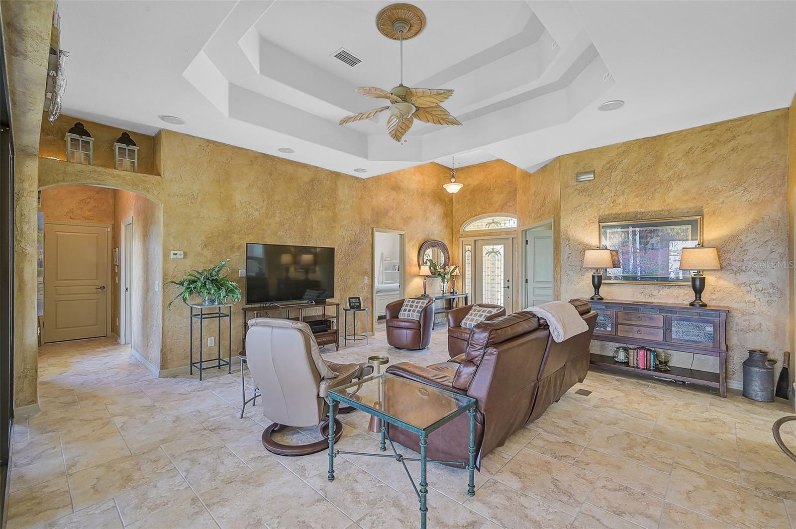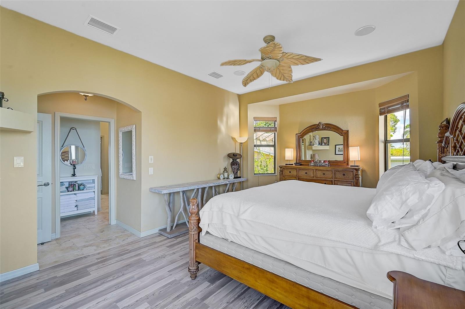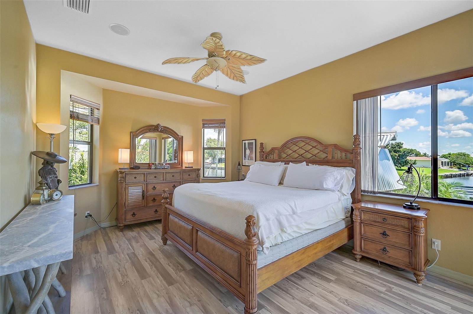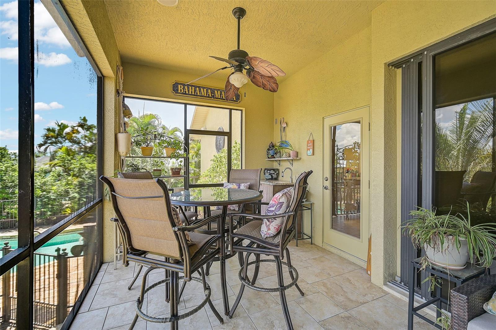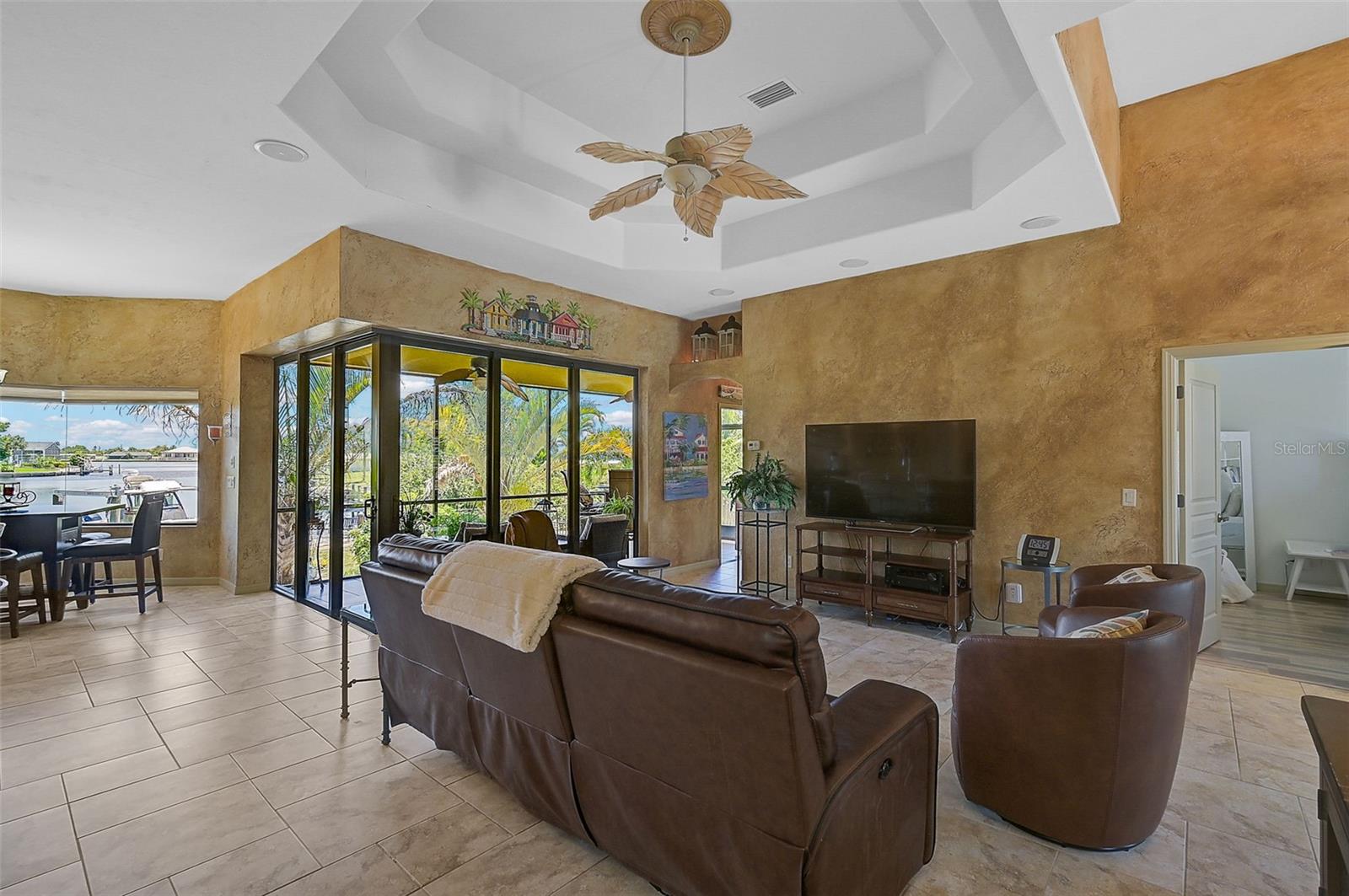 Welcome home to this beautiful, custom-built home by Fero Construction in Port Charlotte! Home offers a luxurious waterfront lifestyle. With 2 bedrooms, 2 bathrooms, and a den, this home boasts fantastic canal views and quick, sailboat access to Charlotte Harbor. Upon entering, you'll find a spacious great room that seamlessly flows into the gourmet kitchen and large dining area. Architectural features include zero-corner sliding glass doors, tile floors throughout the main living areas, a double tray ceiling, and a central vacuum system with floor sweeps. The gourmet kitchen is a chef's delight, featuring granite countertops, wood cabinetry, under-cabinet lighting, and a closet pantry. The split bedroom floor plan offers two master suites, each with his and her walk-in closets and private baths. The main master suite even has walk-out access to the patio and backyard, creating a serene retreat. The great room opens to the lanai, offering stunning canal views. The backyard is beautifully landscaped, creating a private oasis that includes an in-ground pool, patio, and a tiki hut with a tin roof. Whether you want to lounge by the pool or relax at the tiki bar, this backyard is perfect for entertaining. A wooden dock with an 8,000 lb boat lift is just steps from the back door, making it easy to enjoy boating on the water. Water and electric hook-ups are available dockside for added convenience. The home also features an oversized 2-car garage with 14ft ceilings, a workshop, and plenty of additional storage space, including attic access with attic storage. Meticulously maintained and in move-in condition, this home is ready to become your Florida dream home.