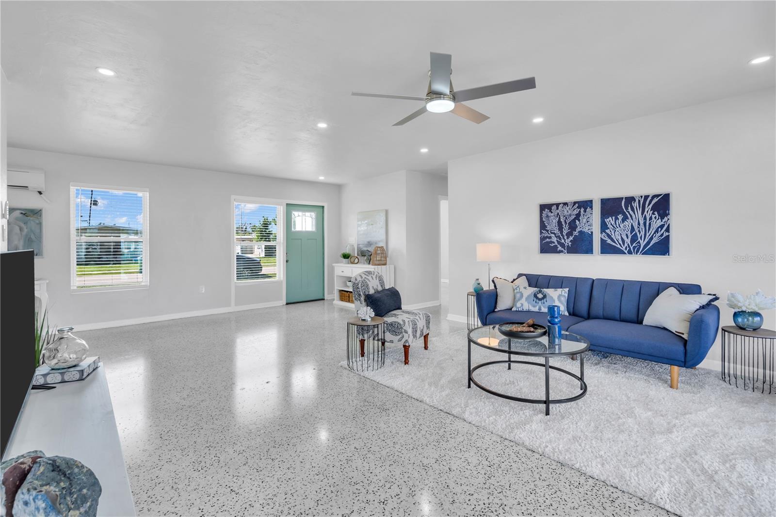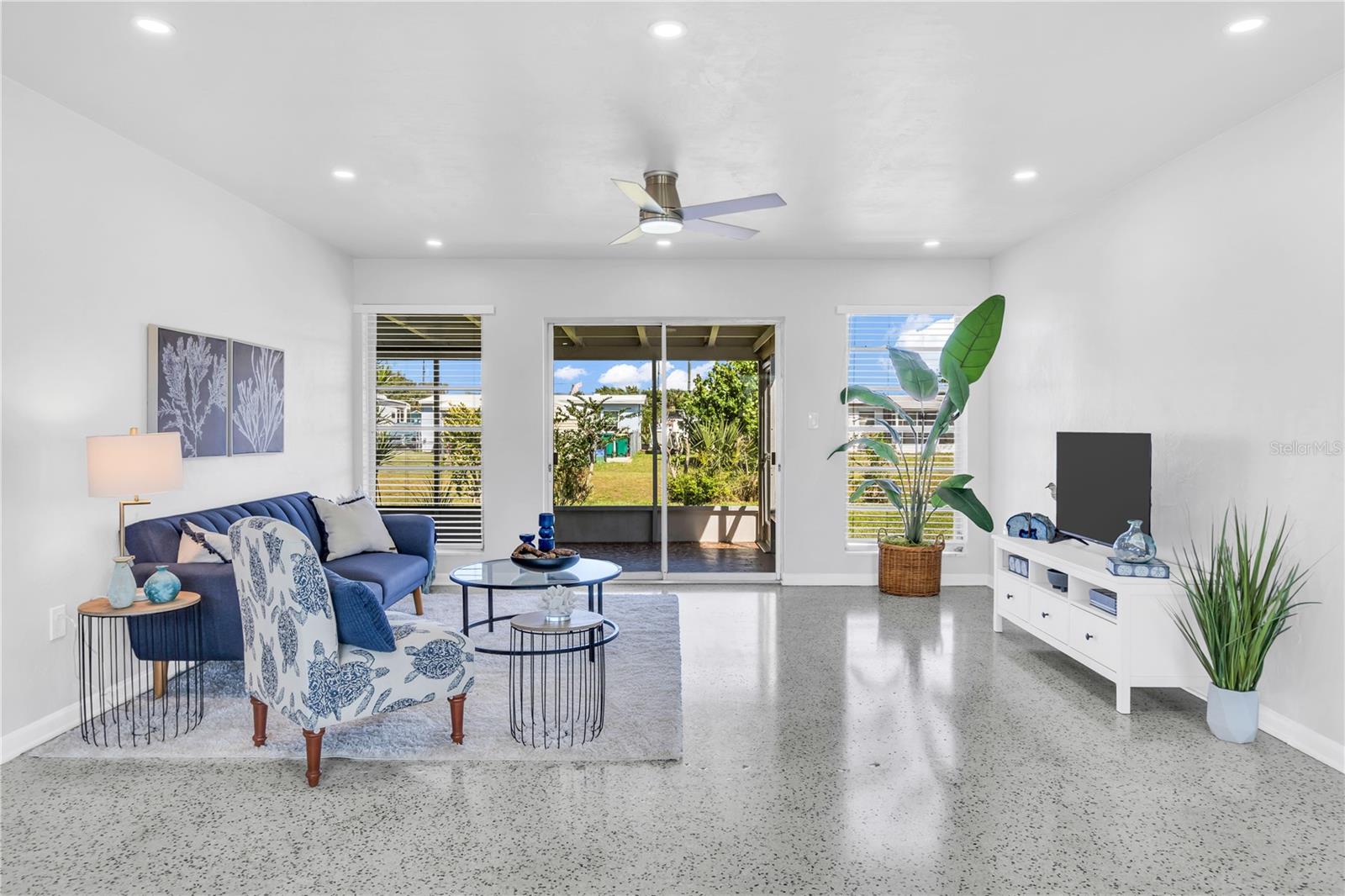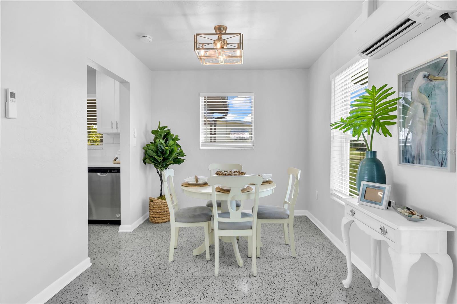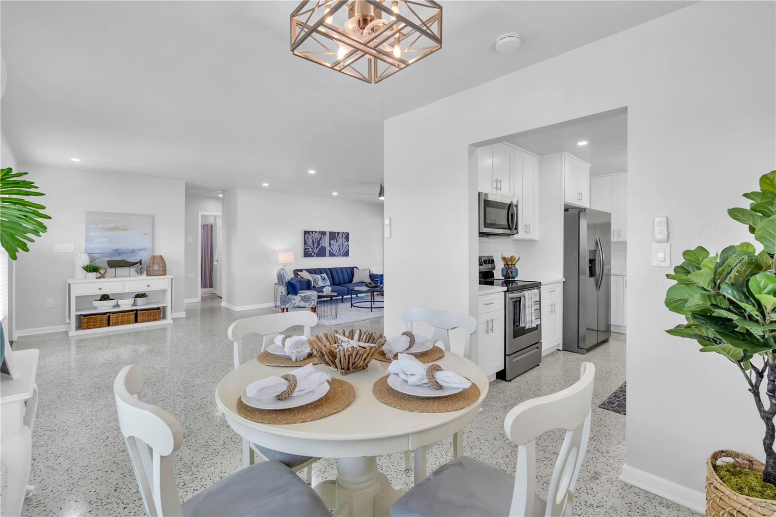 Discover mid-century elegance in this meticulously renovated 2-bed, 1.5-bath Port Charlotte residence. Enjoy the open-concept living space flooded with natural light, showcasing contemporary finishes and refinished Terrazzo floors. The chef-inspired kitchen features stainless steel appliances, quartz countertops, and shaker style cabinetry. Both bedrooms offer tranquility, while the fully renovated bathrooms boast stylish fixtures and pristine Terrazzo flooring. With a carport and storage shed, this home is a perfect blend of style and convenience. Located close to shopping, dining, and Gulf Coast beaches, it's an opportunity not to miss. Schedule your showing today and embrace the Florida lifestyle. Flood insurance not required!!!