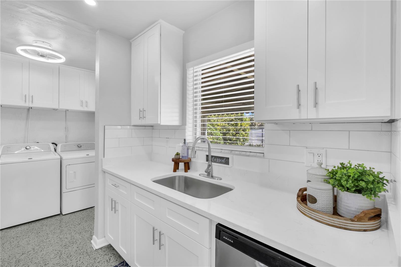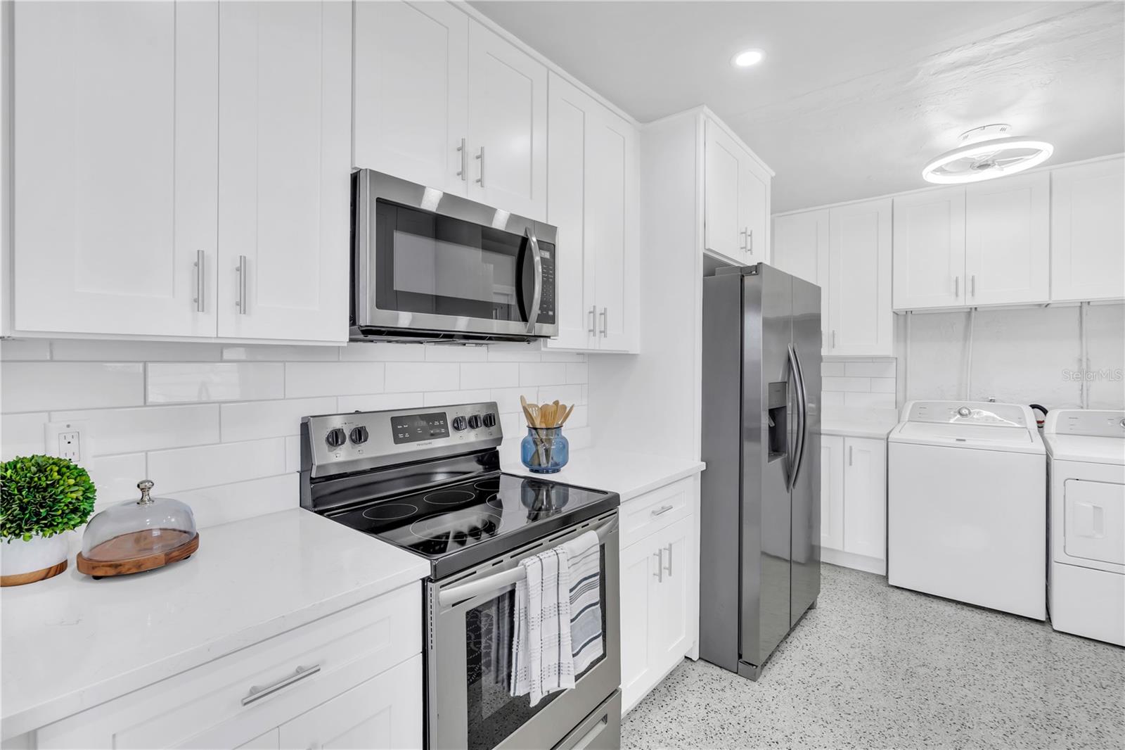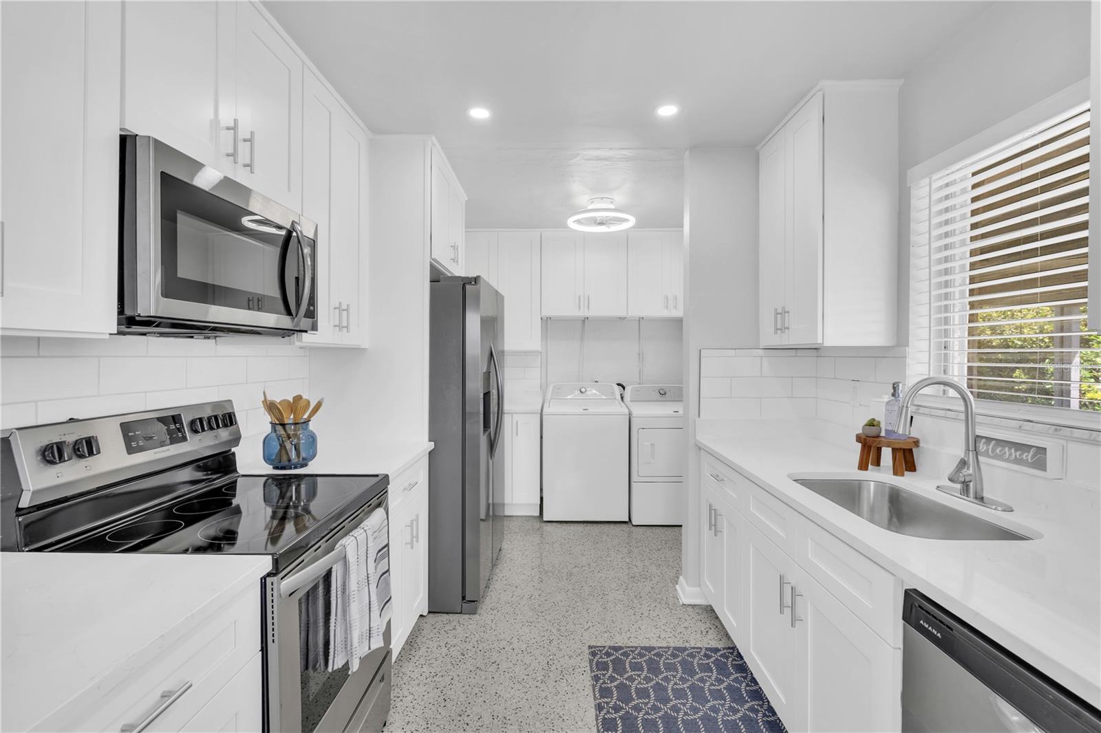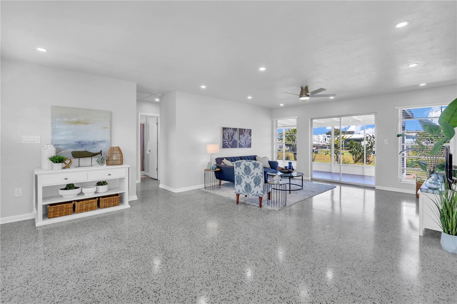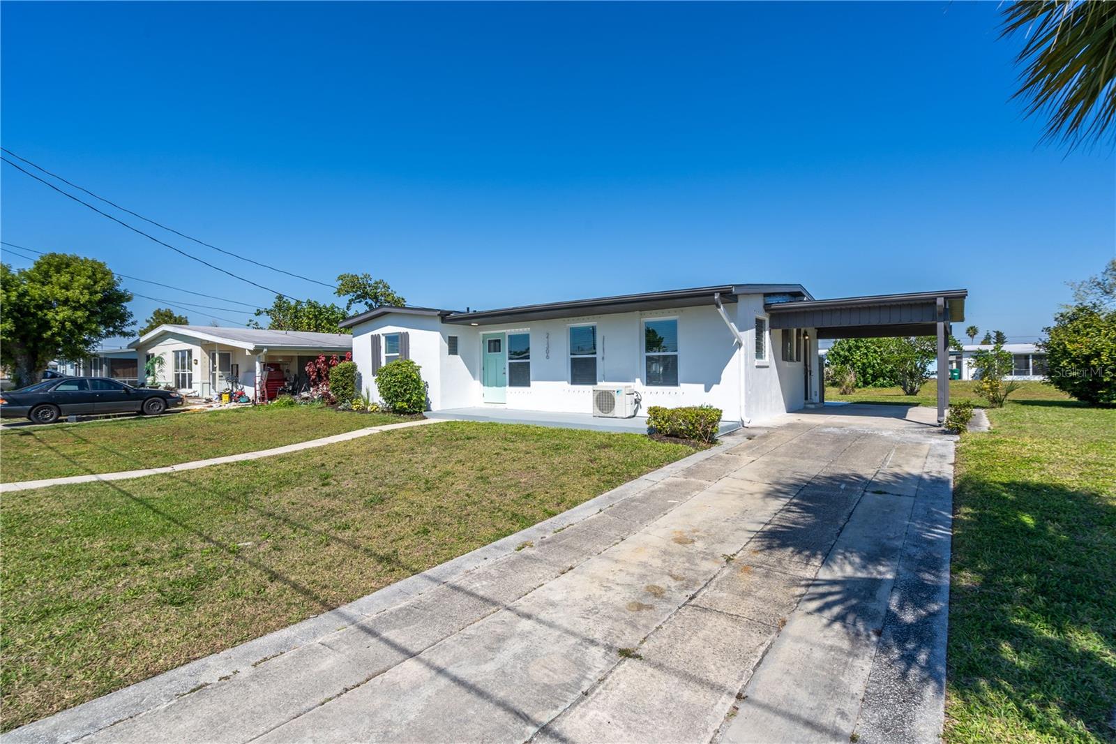 Discover mid-century elegance in this meticulously renovated 2-bed, 1.5-bath Port Charlotte residence. Enjoy the open-concept living space flooded with natural light, showcasing contemporary finishes and refinished Terrazzo floors. The chef-inspired kitchen features stainless steel appliances, quartz countertops, and shaker style cabinetry. Both bedrooms offer tranquility, while the fully renovated bathrooms boast stylish fixtures and pristine Terrazzo flooring. With a carport and storage shed, this home is a perfect blend of style and convenience. Located close to shopping, dining, and Gulf Coast beaches, it's an opportunity not to miss. Schedule your showing today and embrace the Florida lifestyle. Flood insurance not required!!!