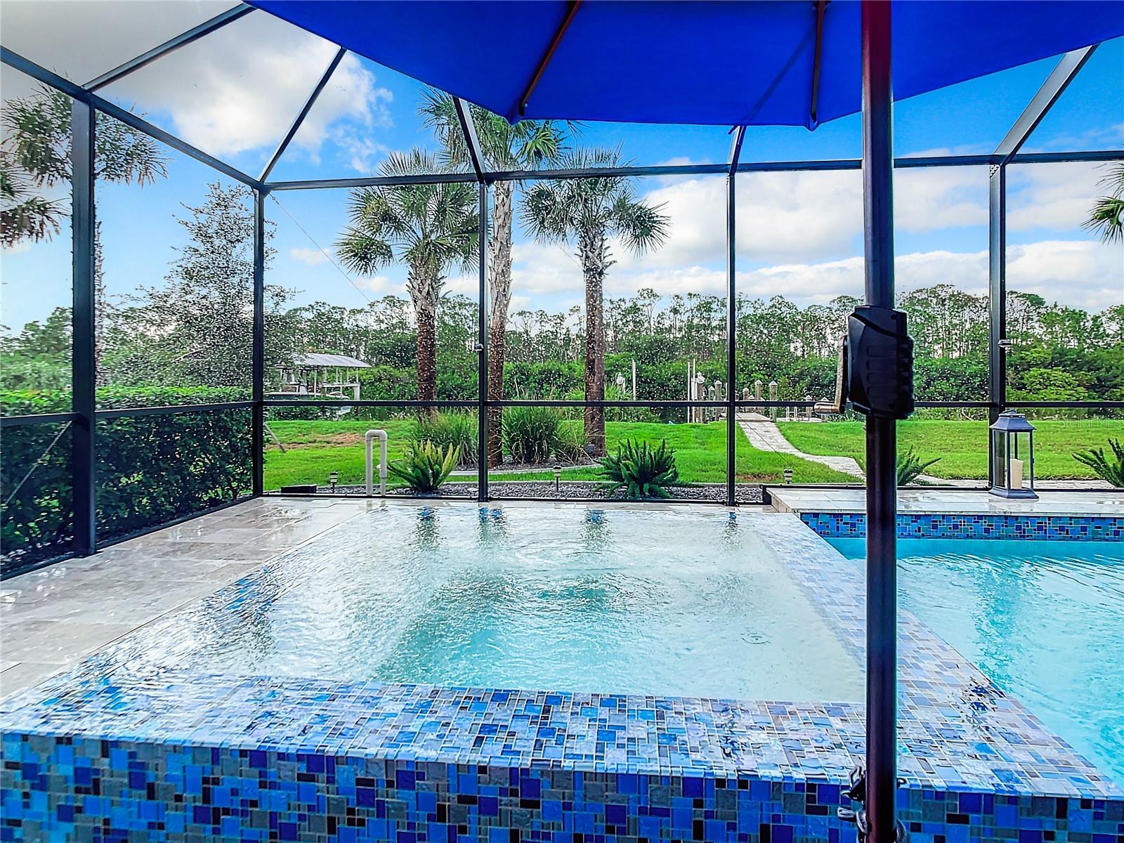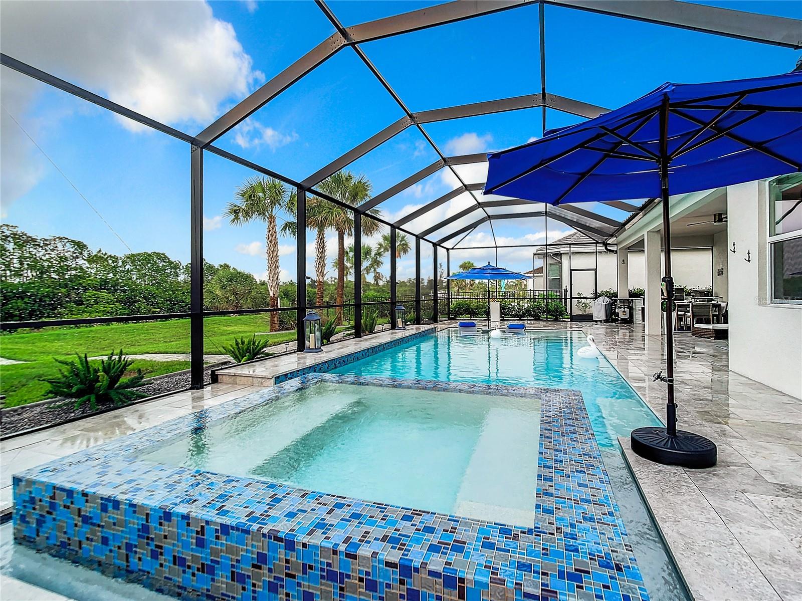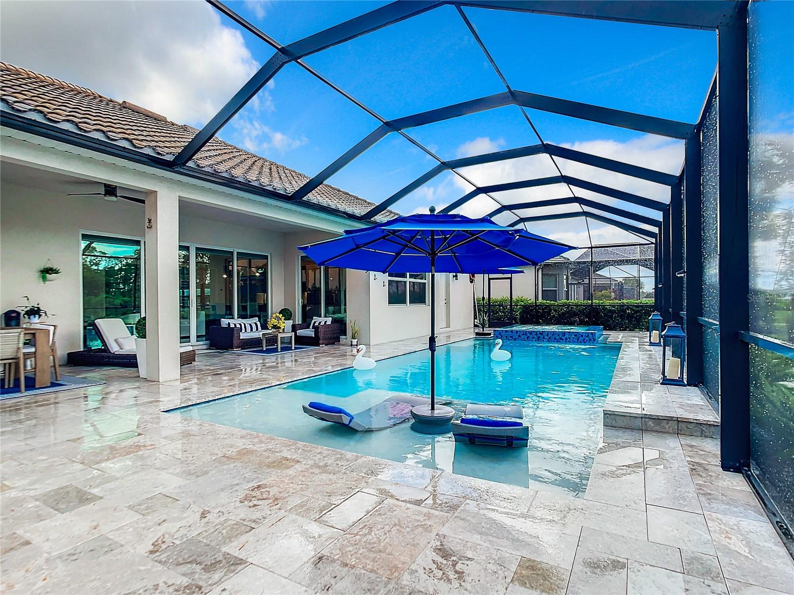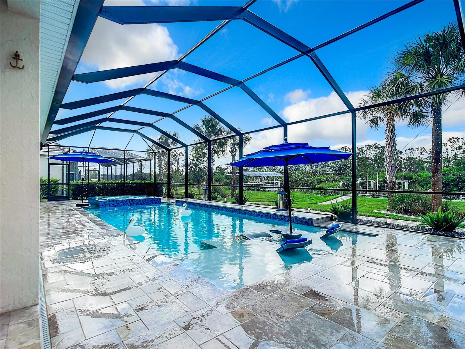 Deck, Gunite, Heated, In Ground, Lighting, Outside Bath Access, Salt Water, Screen Enclosure