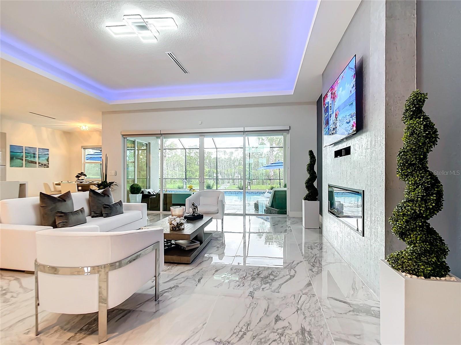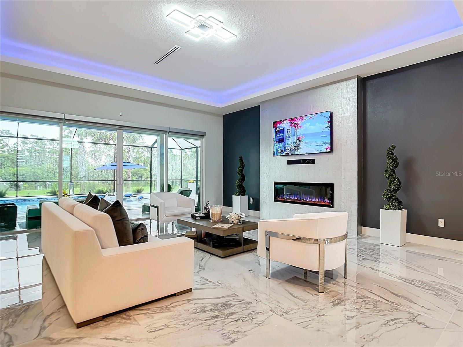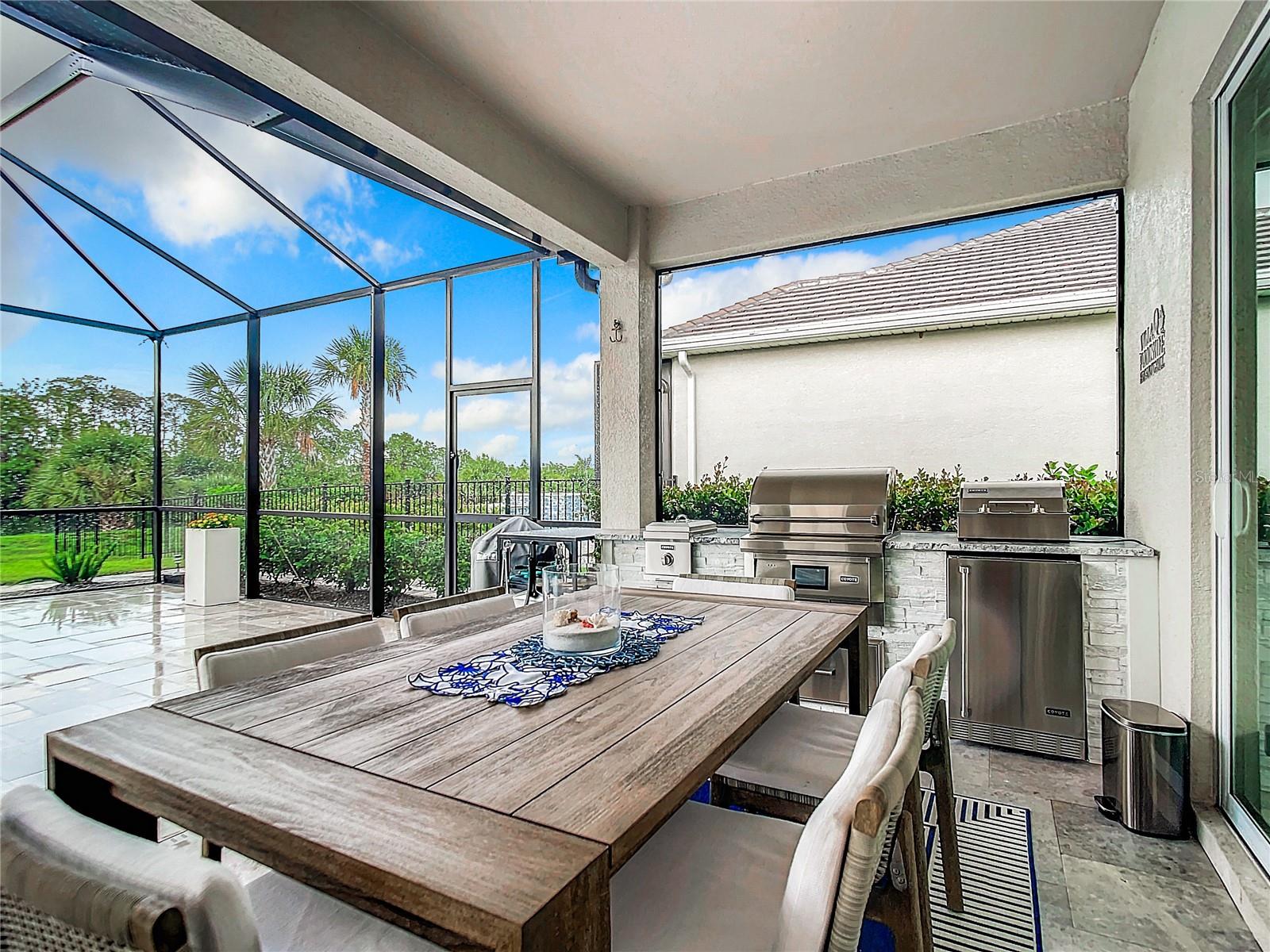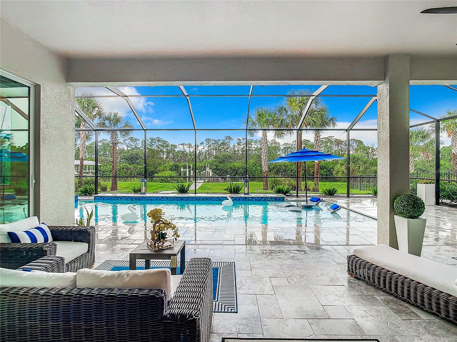Deck, Gunite, Heated, In Ground, Lighting, Outside Bath Access, Salt Water, Screen Enclosure