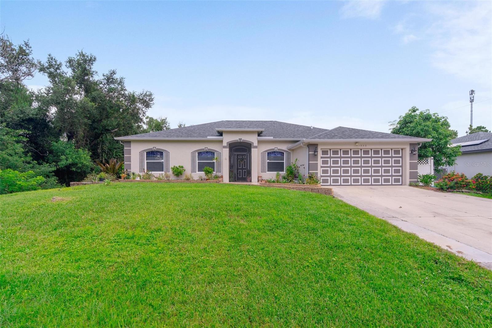 Welcome to 342 Wyler St, a charming 3-bedroom, 2-bath, single-family home nestled in the desirable Port Charlotte Sec 50 community. Built in 2005, this spacious residence offers 2,128 sq. ft. of comfortable living space on a 0.23-acre lot. The home features a 2-car attached garage, making it perfect for those seeking convenience and low-maintenance living. Step inside and be greeted by high ceilings and an open floorplan that seamlessly connects the living and family rooms. Tile throughout most of the home, complemented by solid wood cabinets and ample walk-in closets for added storage. The split-bedroom layout provides privacy for the primary suite, which includes dual sinks, a large tub, and a separate shower stall for a spa-like experience. Also a nice feature is the screened 24x9 lanai which is perfect for enjoying Florida's beautiful weather year-round. This home is equipped with central air and heating. Situated on an 10,001 sqft lot, the property is zoned RSF3.5 and located in a quiet, friendly area. Don't miss the opportunity to own this beautiful home in Port Charlotte! Call us today to see it in person.