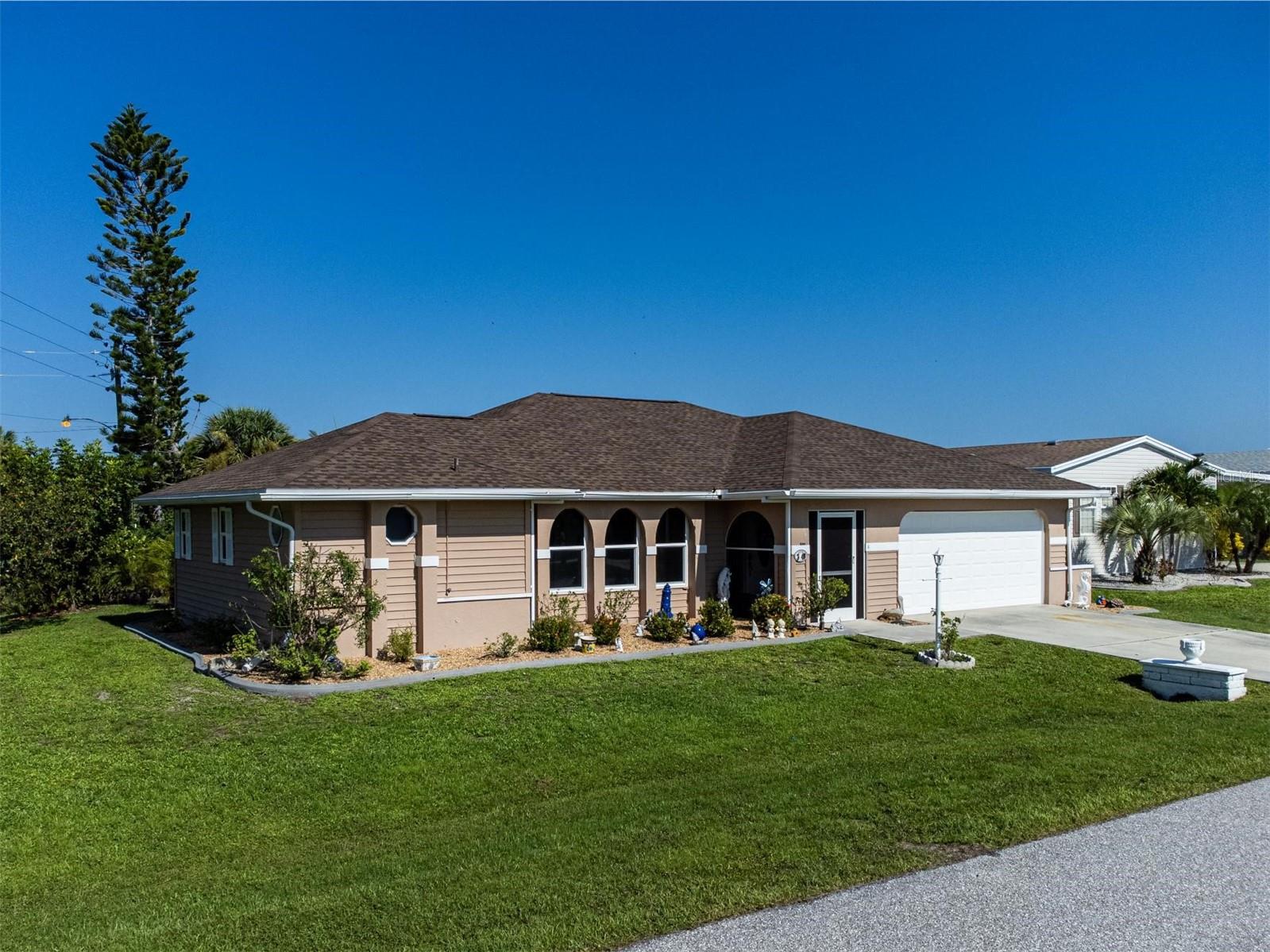 REDUCED PRICE! This single family home on a corner DOUBLE LOT can be YOURS! It is located within the beautiful 55+ community of Vizcaya Lakes. A NEW roof was installed in 2023. The kitchen & both bathrooms have recently been totally updated! It has a LARGE enclosed sunroom overlooking a nice backyard. The community offers a pool, tennis courts, pickleball, lake and nice clubhouse. It is golf cart friendly, too! The surrounding area has year-round activities, such as fishing and boating on the Myakka River, golfing, exploring nature trails, and the Charlotte Sports Park. Enjoy dining, shopping, and the pristine Gulf of Mexico beaches close by in Boca Grande, Englewood, Venice and Sarasota. Experience affordable HOA fees while living with many amenities at your fingertips in beautiful Southwest Florida!