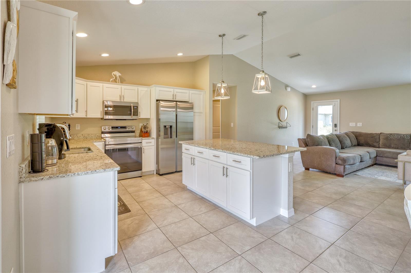 Take a peek at this lovely home up for sale! Situated in a peaceful neighborhood, conveniently located near beaches and all the essentials. Featuring a unique split-floor design with 3 bedrooms, 2 bathrooms, a separate laundry area, an open layout with a spacious kitchen and dining space. French doors lead to the covered lanai, while the grand master suite boasts its own bathroom and shower. Two additional bedrooms are located on the opposite side of the house. Vaulted ceilings add charm to the kitchen, living room, and dining areas, accented by a sunny kitchen window and stylish glass doors. The house is fully furnished and ready for immediate move-in or airbnb use. A 2-car garage, a 5x10 covered entrance, and a sizable 10x17 lanai for outdoor enjoyment. This cozy abode offers a perfect retreat for a small family with all the modern comforts.