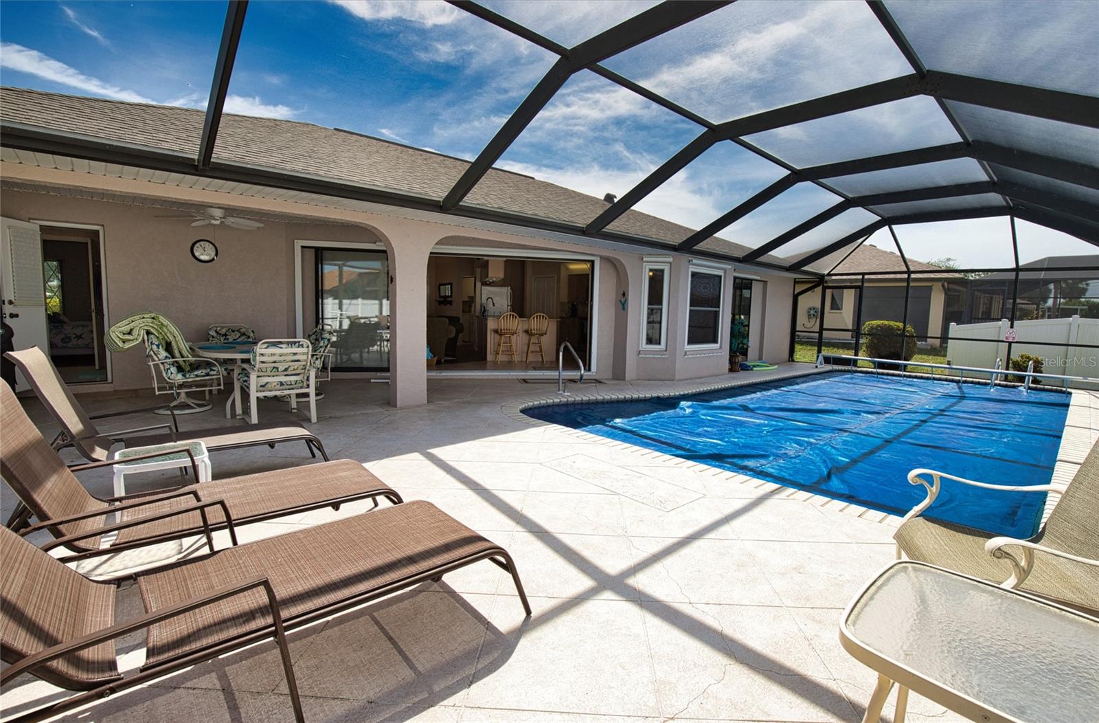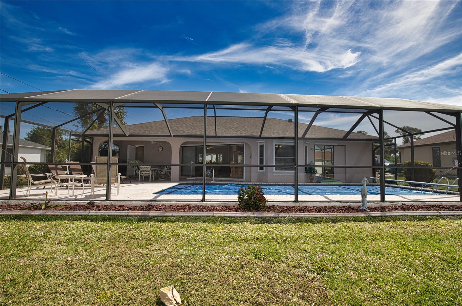 NO FLOODING/DAMAGE FROM HELENE OR MILTON!!! TURN-KEY, AC is 2014, roof is approx 3 yo. Step inside and revel in the charm of this turn-key, furnished home nestled in Port Charlotte, a gem awaiting its new captain! With 3 cozy bedrooms and 2 well-appointed bathrooms, this abode offers comfort styled with convenience. The home is cleverly designed with split bedrooms ensuring privacy, while pocket sliders open up to a generously-sized lanai that faces the tranquil western skies—perfect for indulging in the pink-orange sunsets! A heated pool promises year-round enjoyment and the property comes equipped with a comforting safeguard—it has never flooded. If you love taking to the waters, you're in luck! This home is tantalizingly close to a public boat ramp. Sports enthusiasts will relish proximity to the Charlotte Sports Park, spring training ground for the Tampa Bay Rays. Whether you're lounging indoors or exploring nearby Ollie's Pond Park or Spring Lake Park, this property promises a blend of relaxation and adventure. A fenced yard seals the deal, ensuring privacy and safety for both two-legged and four-legged adventurers. Ready to dive into your new life? This place is more than a home; it's a lifestyle waiting to be embraced!